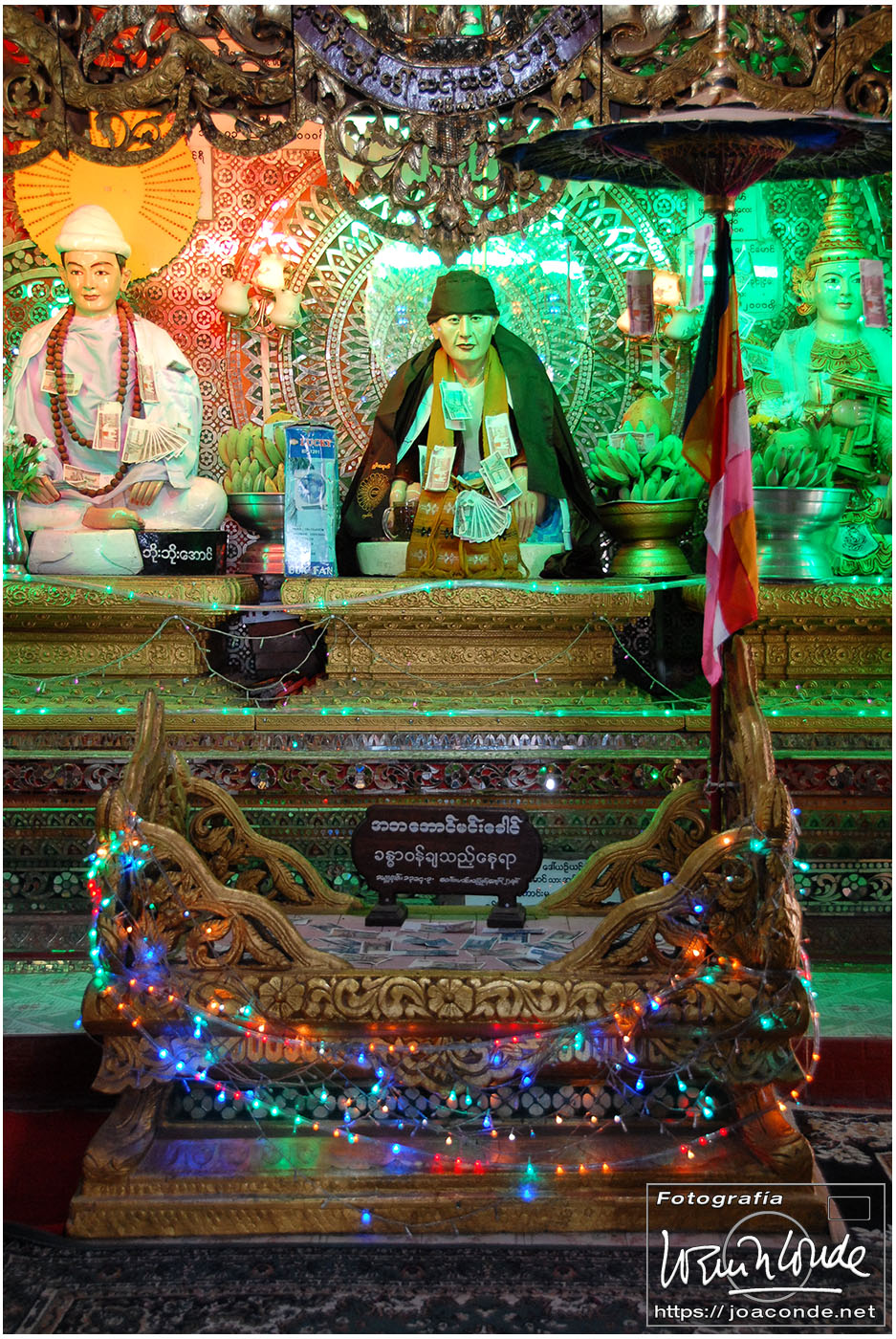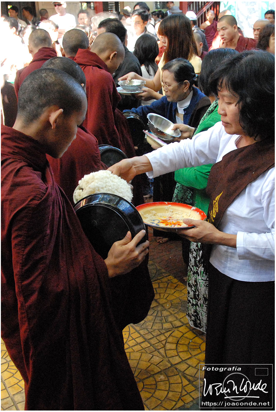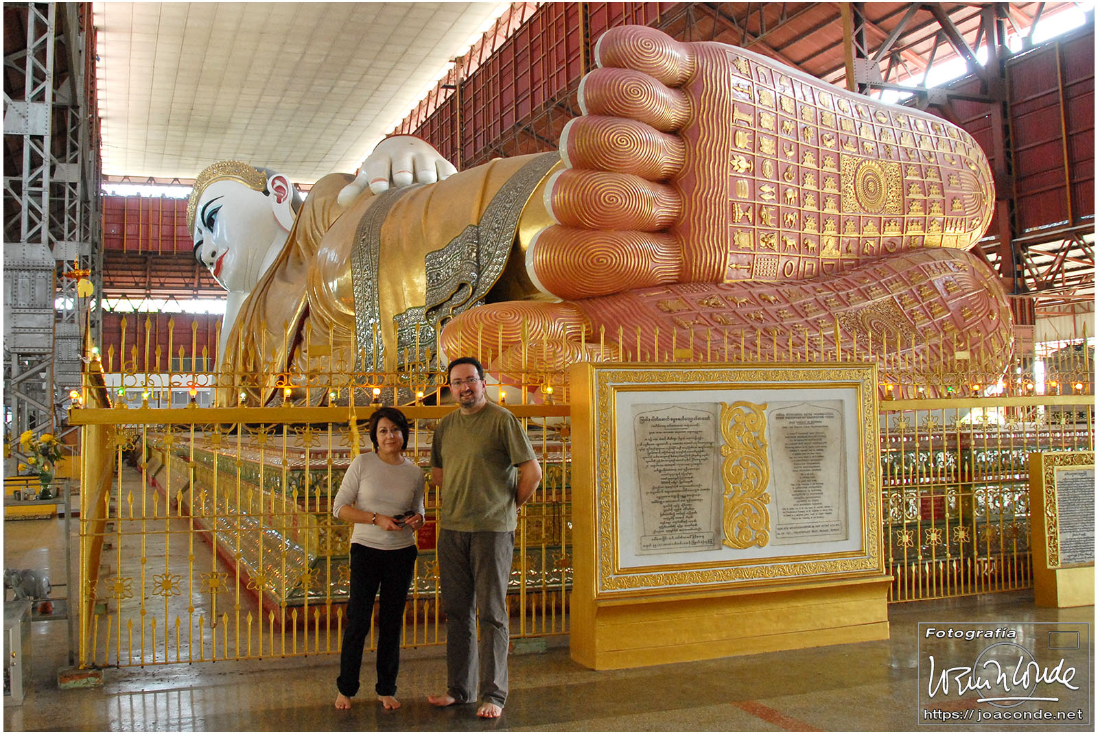 Viajamos a Birmania, llamada oficialmente Myanmar, en las navidades de 2011. Hicimos un circuito privado junto a nuestros amigos sevillanos Mariló y Baltasar, a quienes habíamos conocido en el viaje a Siria. Volamos el martes 27 a mediodía desde Madrid. Después de una corta escala en Bangkok, seguimos hasta Rangún, donde llegamos a media mañana del miércoles. Hicimos los trámites aduaneros y Zaw Zaw —nuestro guía-traductor— nos llevó al hotel, donde llegamos a la hora de comer.