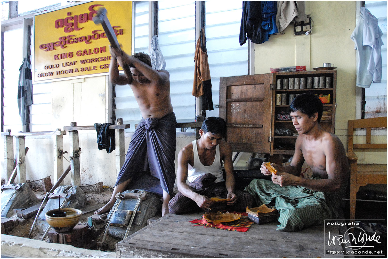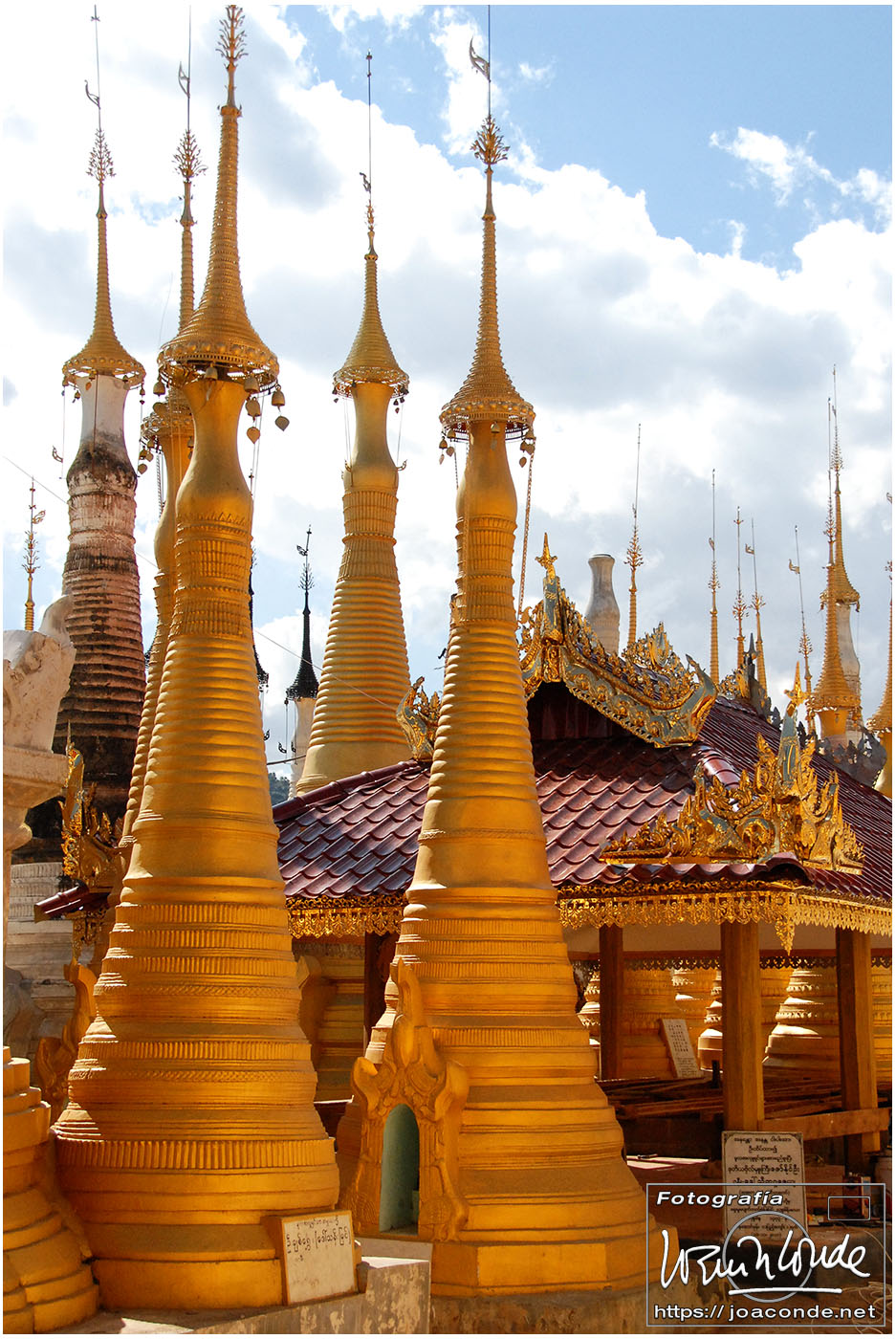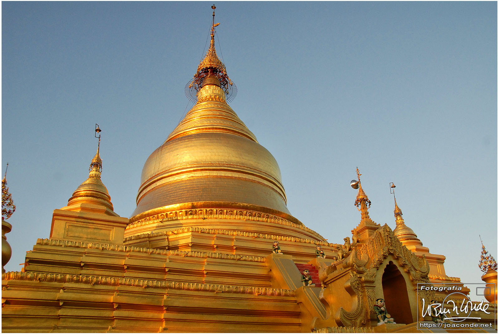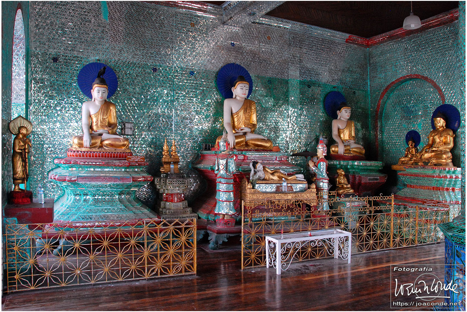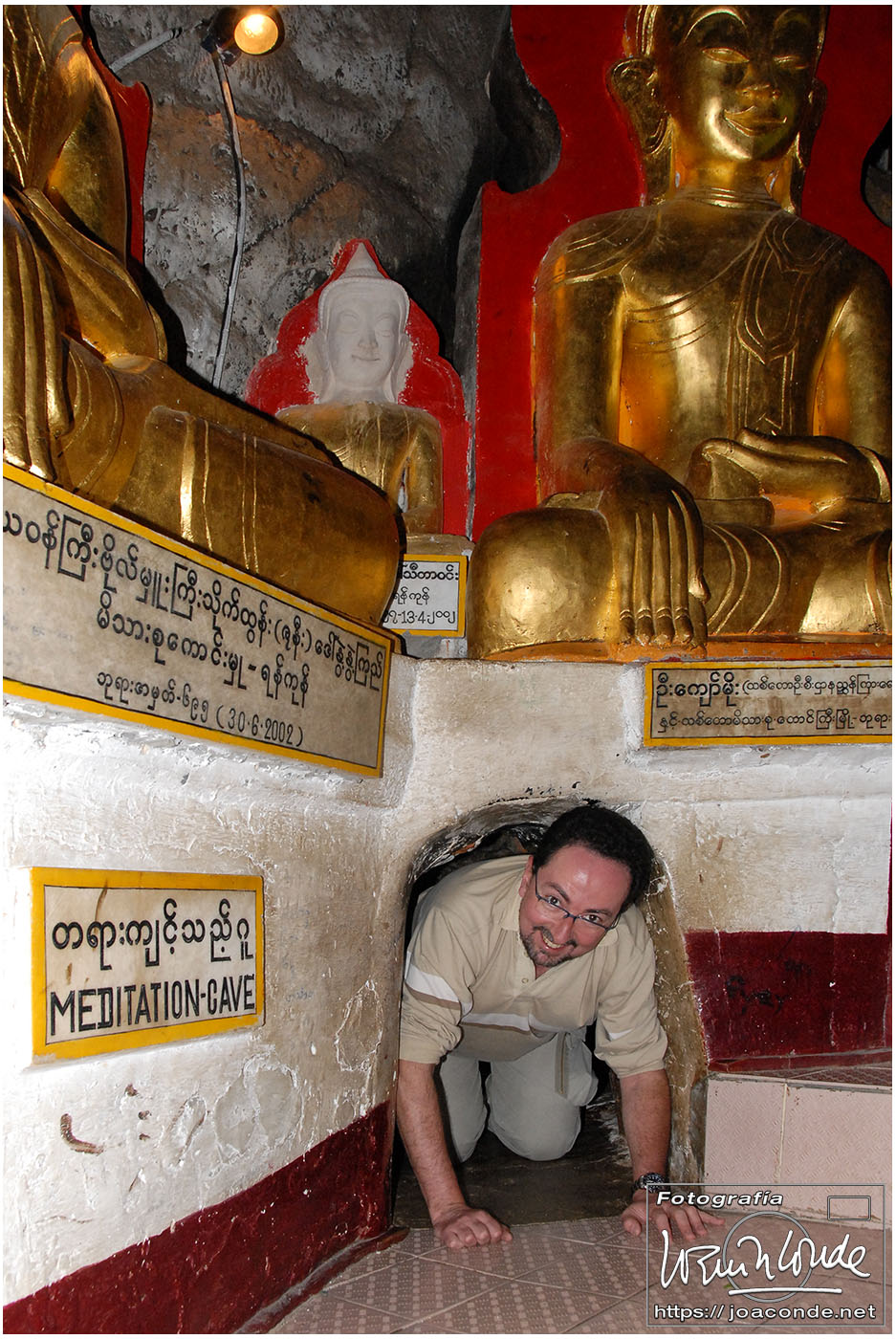 Por la tarde visitamos la Pagoda Mahamuni, que era la más sagrada para los budistas birmanos y por ello estaba siempre abarrotada. Después dimos una vuelta por el barrio de los marmolistas, en el que me puse manos a la obra. También entramos en un taller en el que se hacía y vendía el pan de oro —para colocarlo en las estatuas—. Por último, visitamos Shwenandaw Kyaung un antiguo palacio convertido en monasterio y la Kuthodaw Paya, con un Tripitaka o código budista en 729 losas de mármol, colocada cada una de ellas dentro de una estupa.