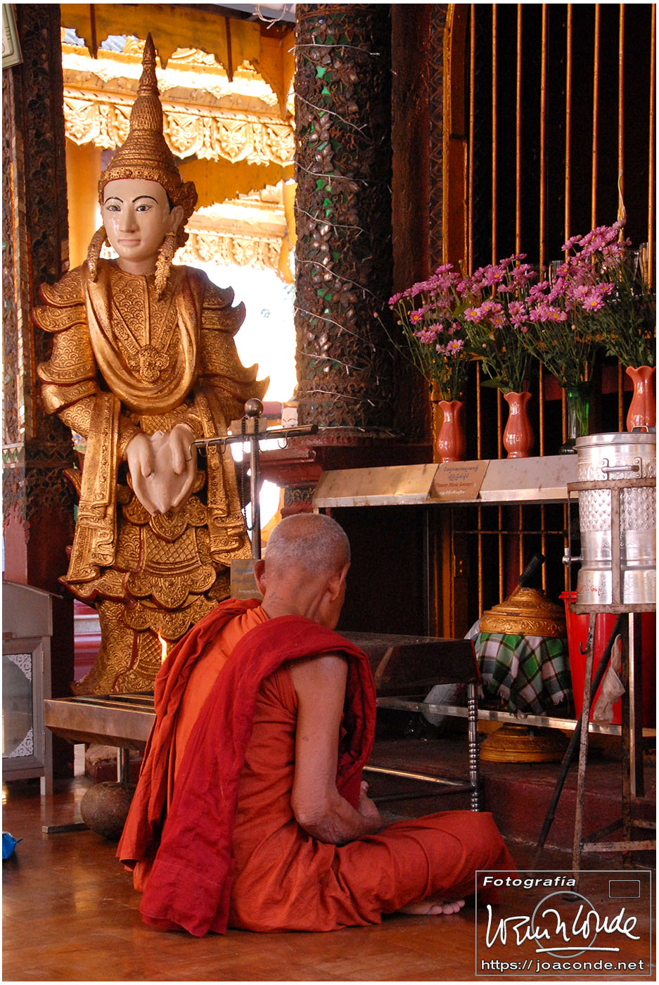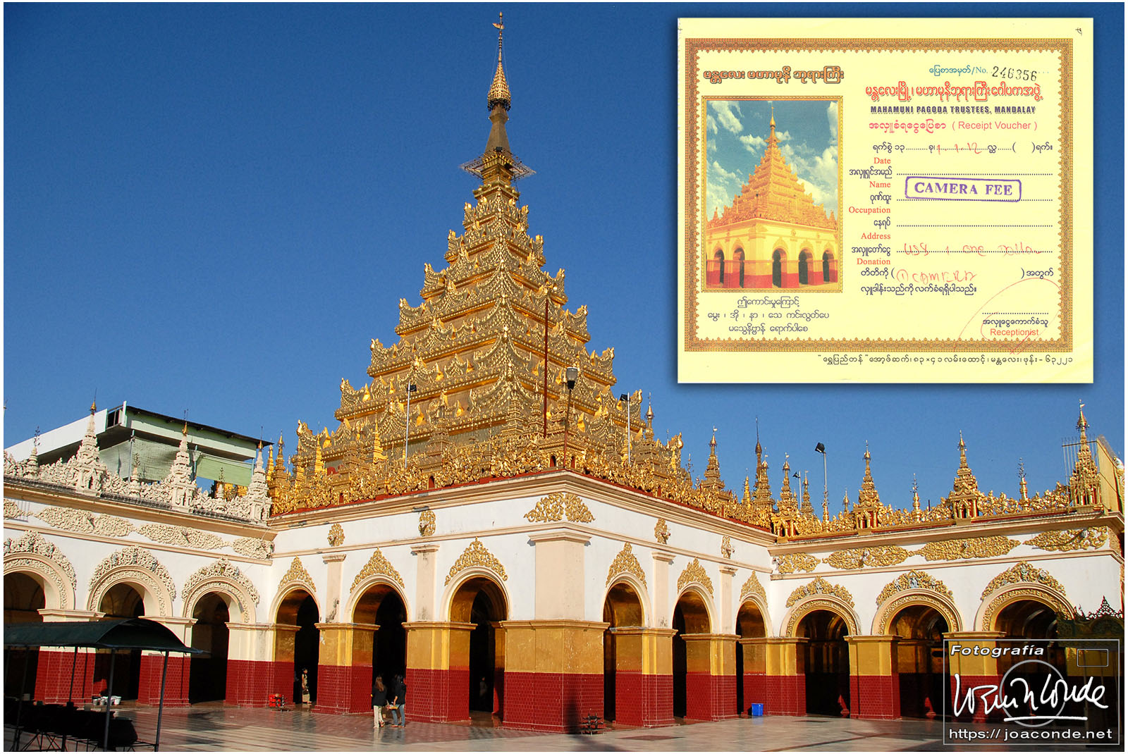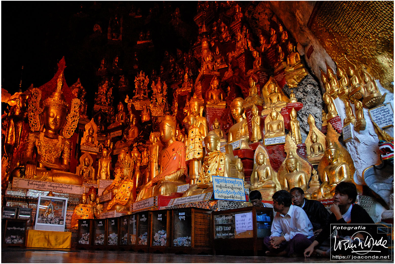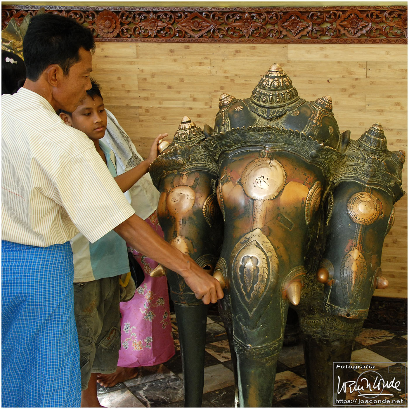 Por la tarde visitamos la Pagoda Mahamuni, que era la más sagrada para los budistas birmanos y por ello estaba siempre abarrotada. Después dimos una vuelta por el barrio de los marmolistas, en el que me puse manos a la obra. También entramos en un taller en el que se hacía y vendía el pan de oro —para colocarlo en las estatuas—. Por último, visitamos Shwenandaw Kyaung un antiguo palacio convertido en monasterio y la Kuthodaw Paya, con un Tripitaka o código budista en 729 losas de mármol, colocada cada una de ellas dentro de una estupa.