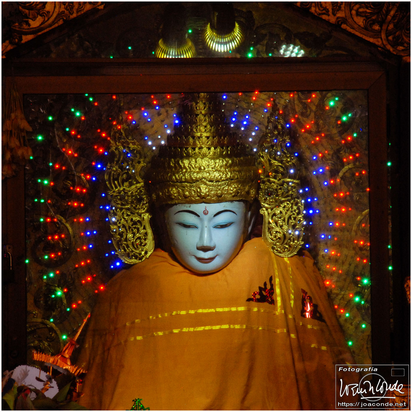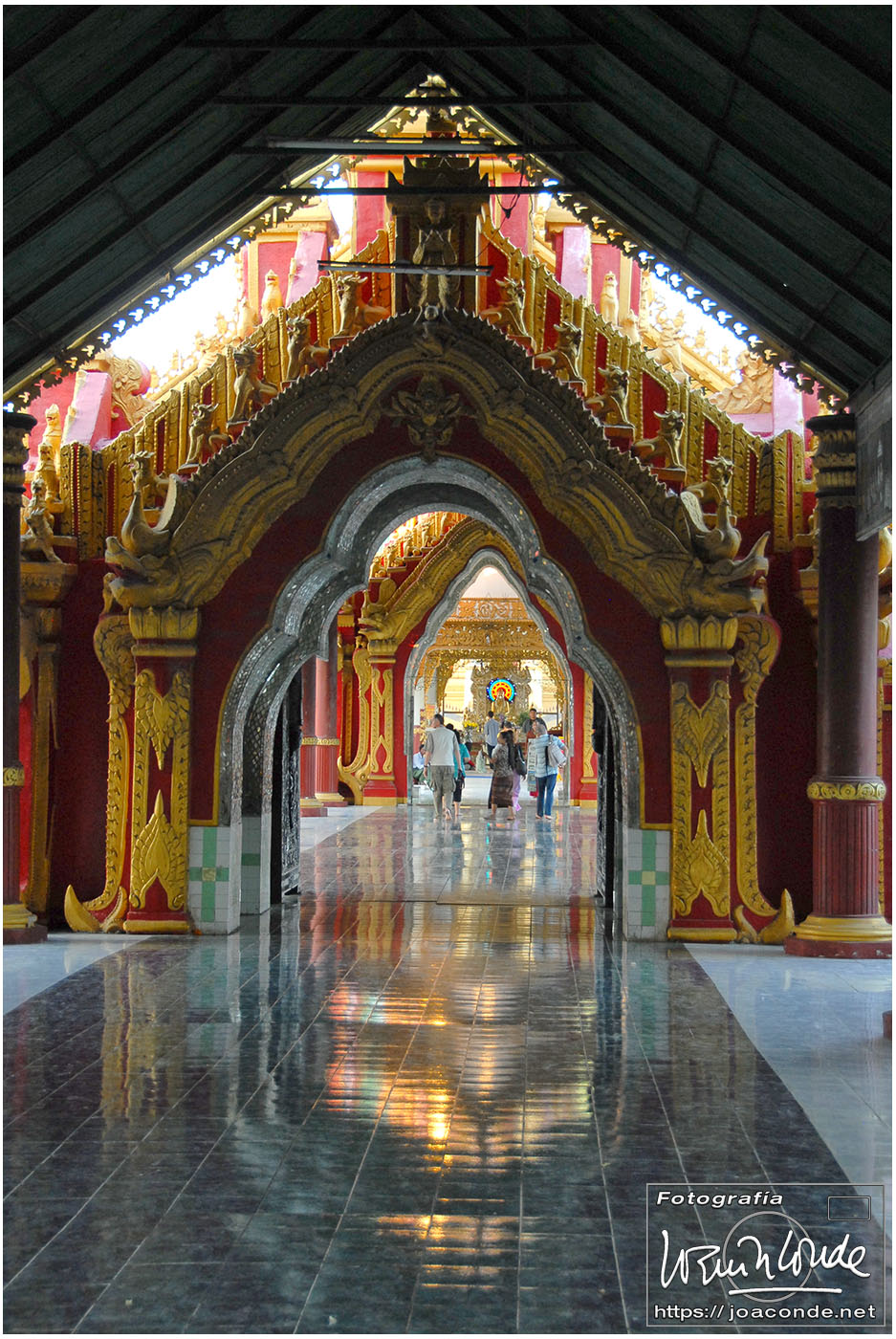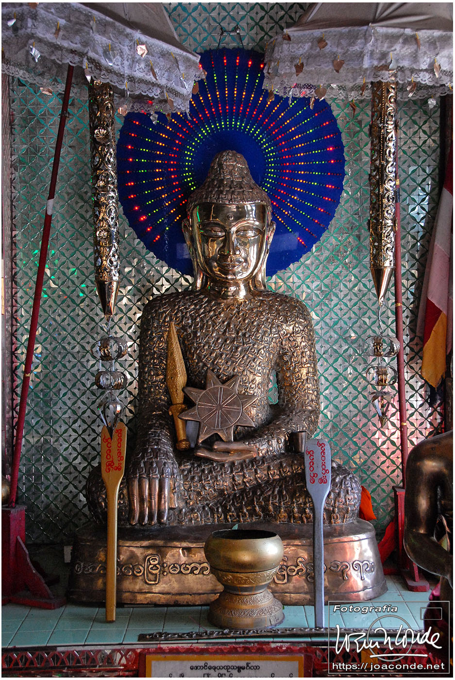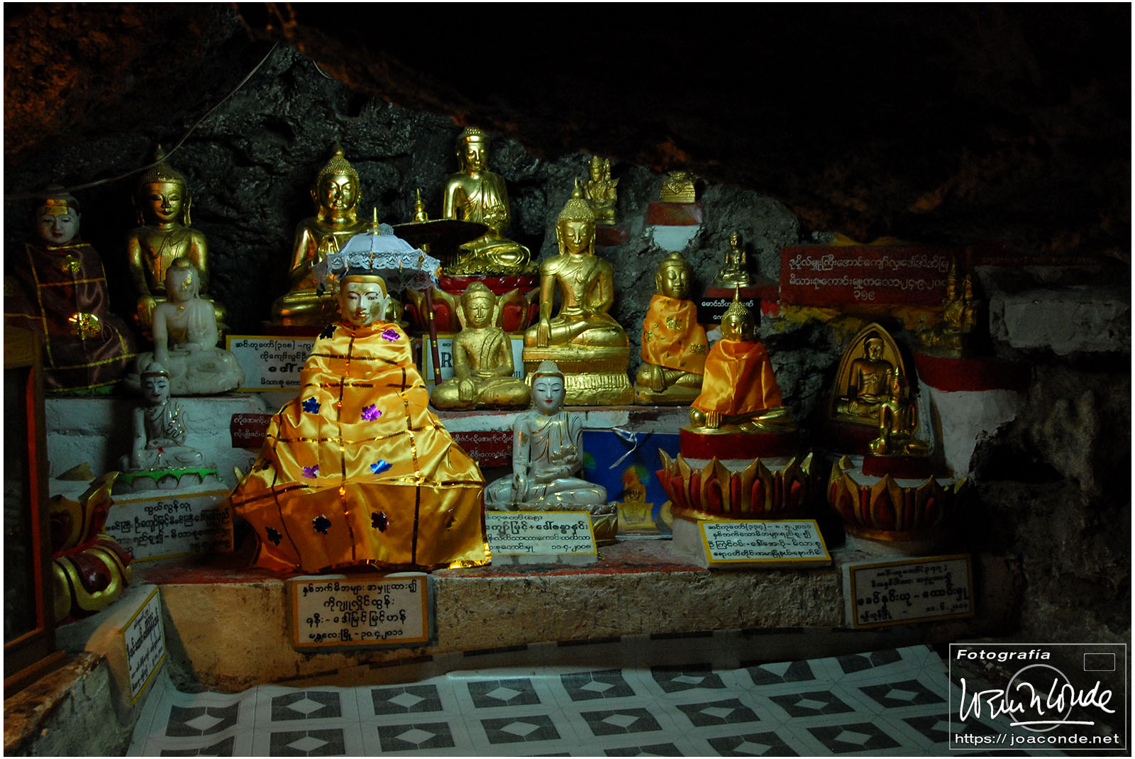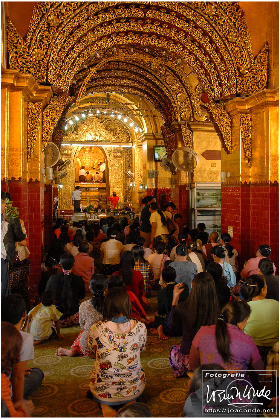 Por la tarde visitamos la Pagoda Mahamuni, que era la más sagrada para los budistas birmanos y por ello estaba siempre abarrotada. Después dimos una vuelta por el barrio de los marmolistas, en el que me puse manos a la obra. También entramos en un taller en el que se hacía y vendía el pan de oro —para colocarlo en las estatuas—. Por último, visitamos Shwenandaw Kyaung un antiguo palacio convertido en monasterio y la Kuthodaw Paya, con un Tripitaka o código budista en 729 losas de mármol, colocada cada una de ellas dentro de una estupa.