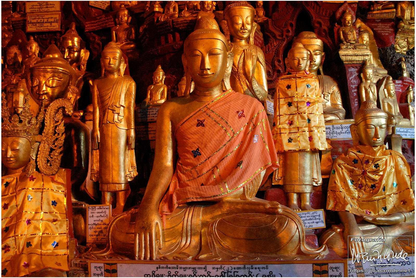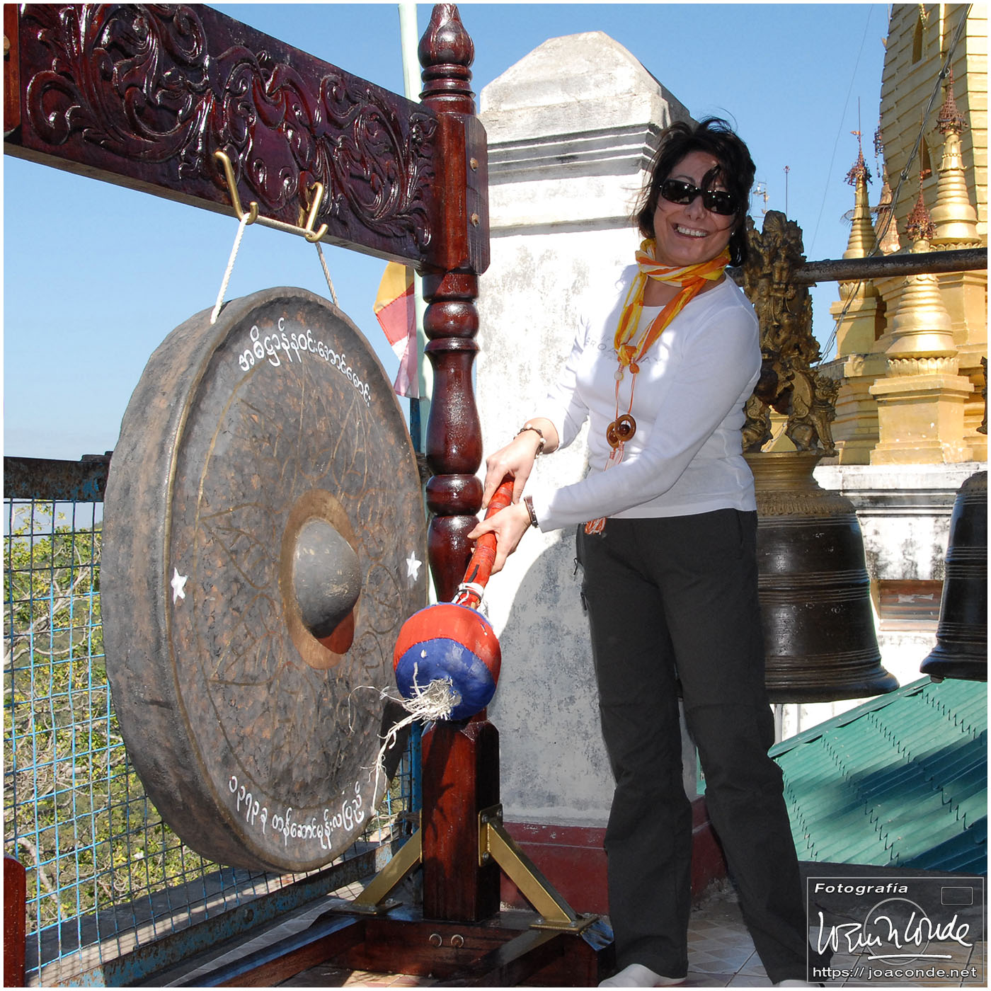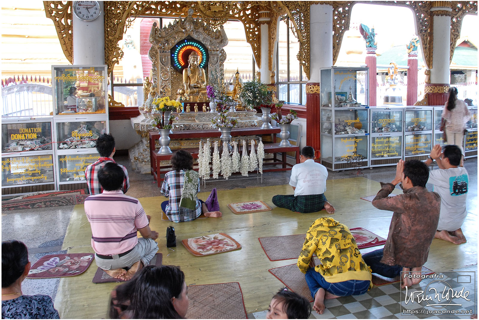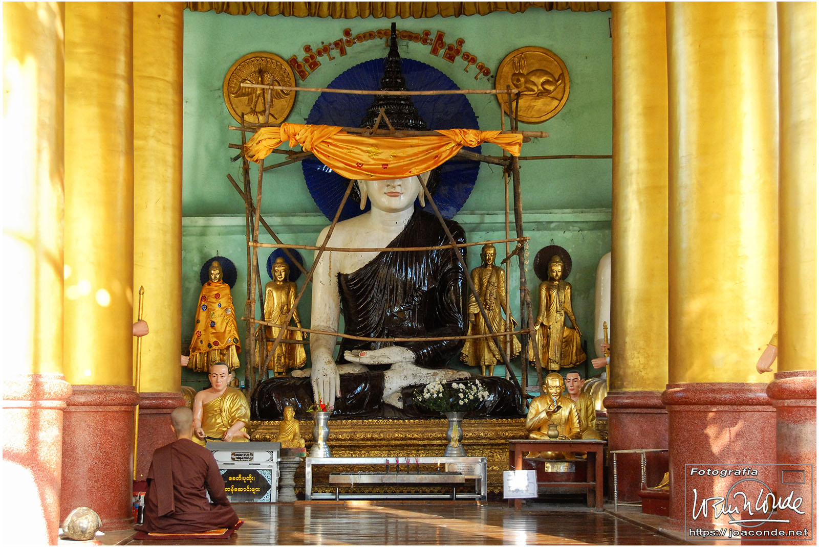 Por la tarde visitamos la Pagoda Mahamuni, que era la más sagrada para los budistas birmanos y por ello estaba siempre abarrotada. Después dimos una vuelta por el barrio de los marmolistas, en el que me puse manos a la obra. También entramos en un taller en el que se hacía y vendía el pan de oro —para colocarlo en las estatuas—. Por último, visitamos Shwenandaw Kyaung un antiguo palacio convertido en monasterio y la Kuthodaw Paya, con un Tripitaka o código budista en 729 losas de mármol, colocada cada una de ellas dentro de una estupa.