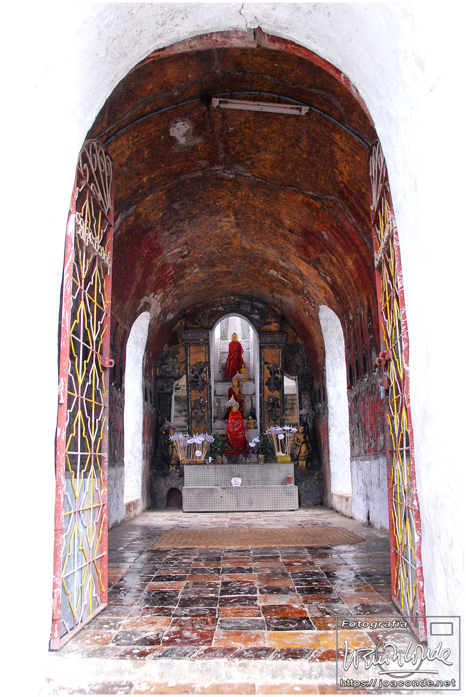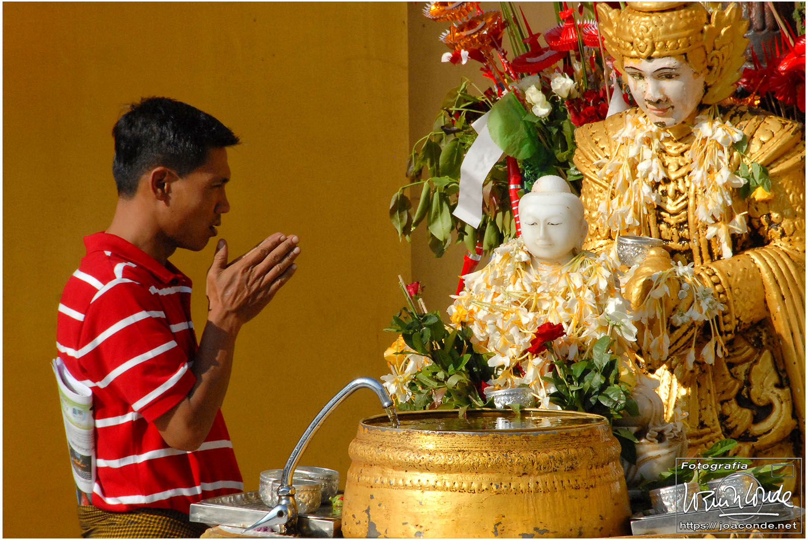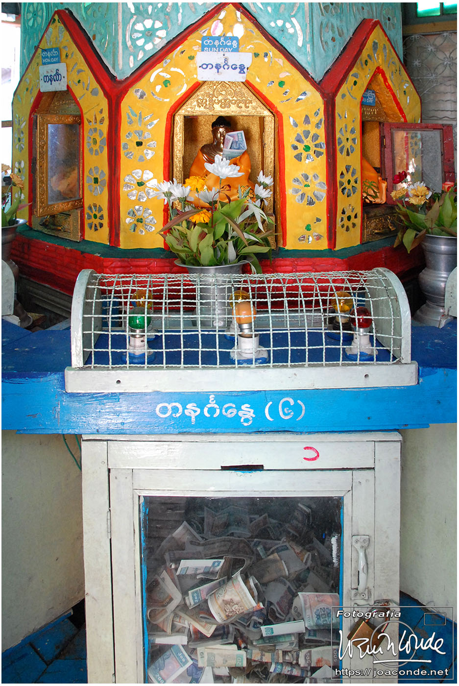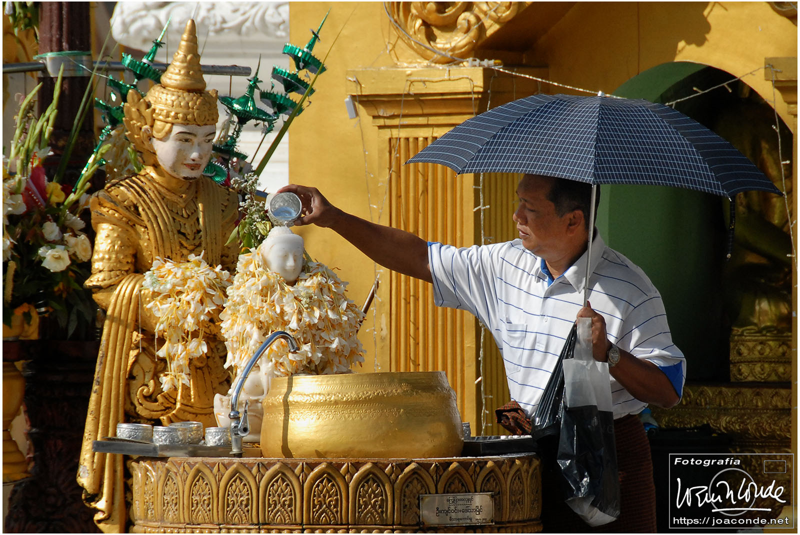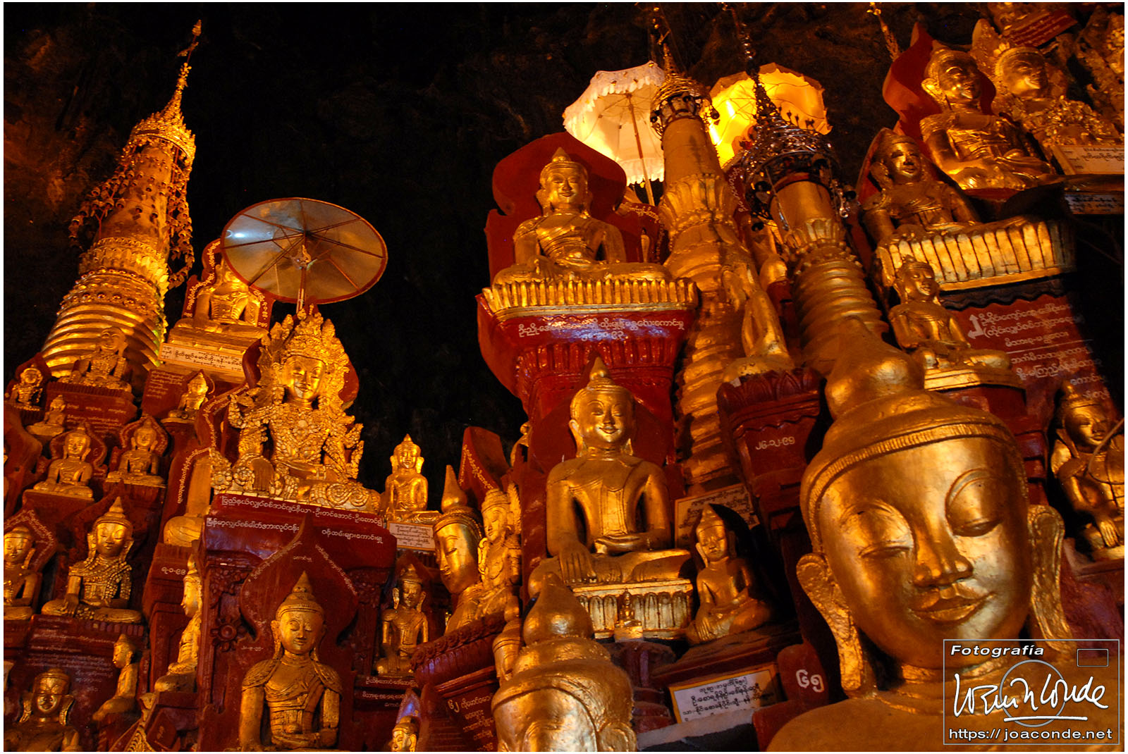 Por la tarde visitamos la Pagoda Mahamuni, que era la más sagrada para los budistas birmanos y por ello estaba siempre abarrotada. Después dimos una vuelta por el barrio de los marmolistas, en el que me puse manos a la obra. También entramos en un taller en el que se hacía y vendía el pan de oro —para colocarlo en las estatuas—. Por último, visitamos Shwenandaw Kyaung un antiguo palacio convertido en monasterio y la Kuthodaw Paya, con un Tripitaka o código budista en 729 losas de mármol, colocada cada una de ellas dentro de una estupa.