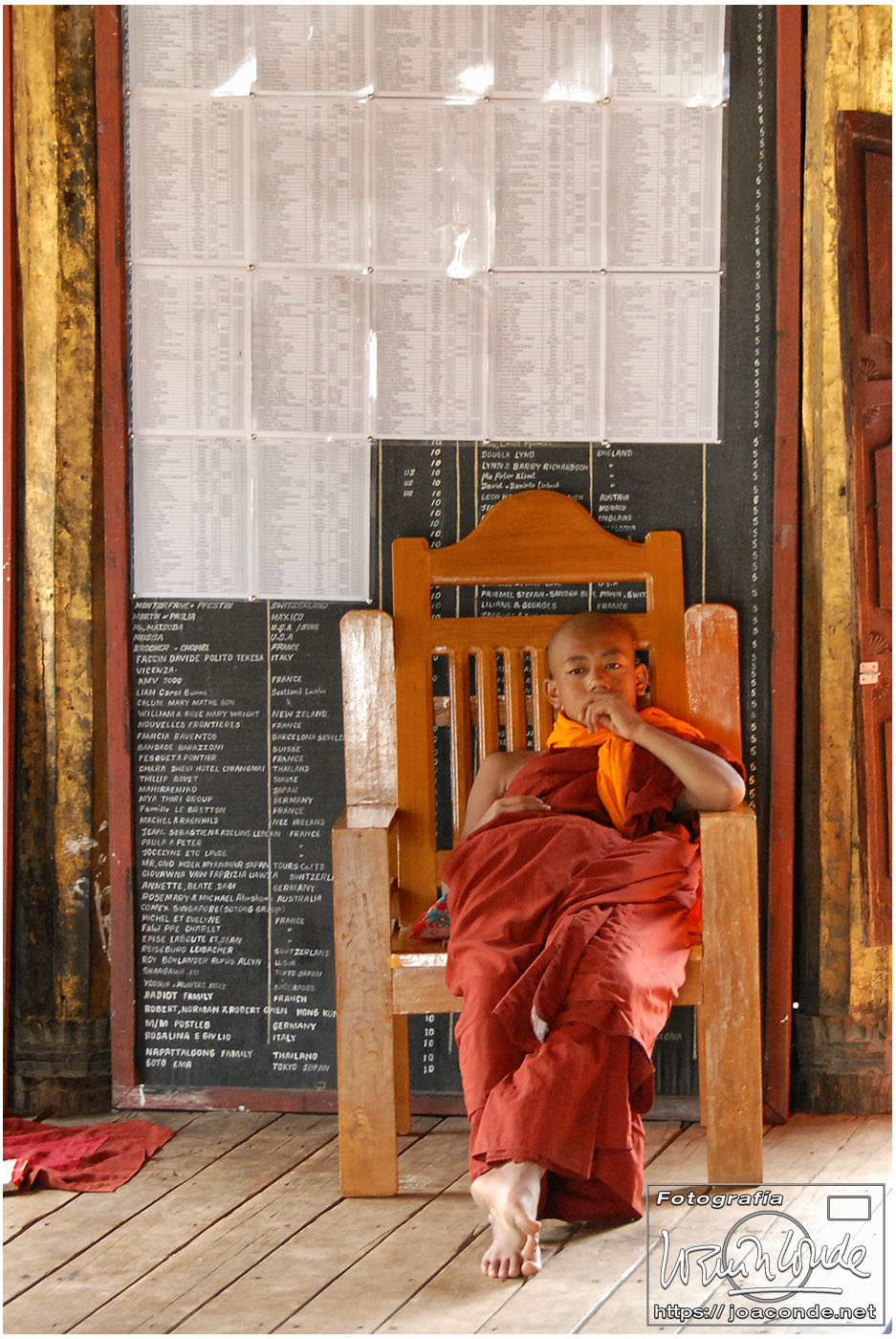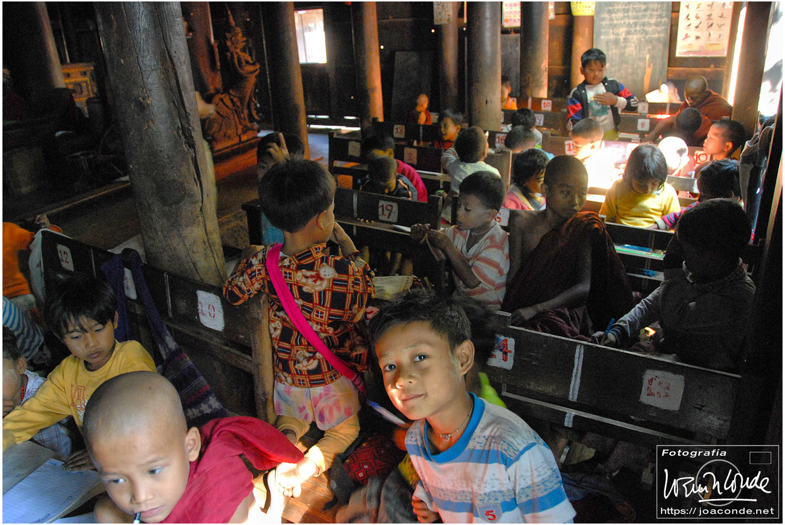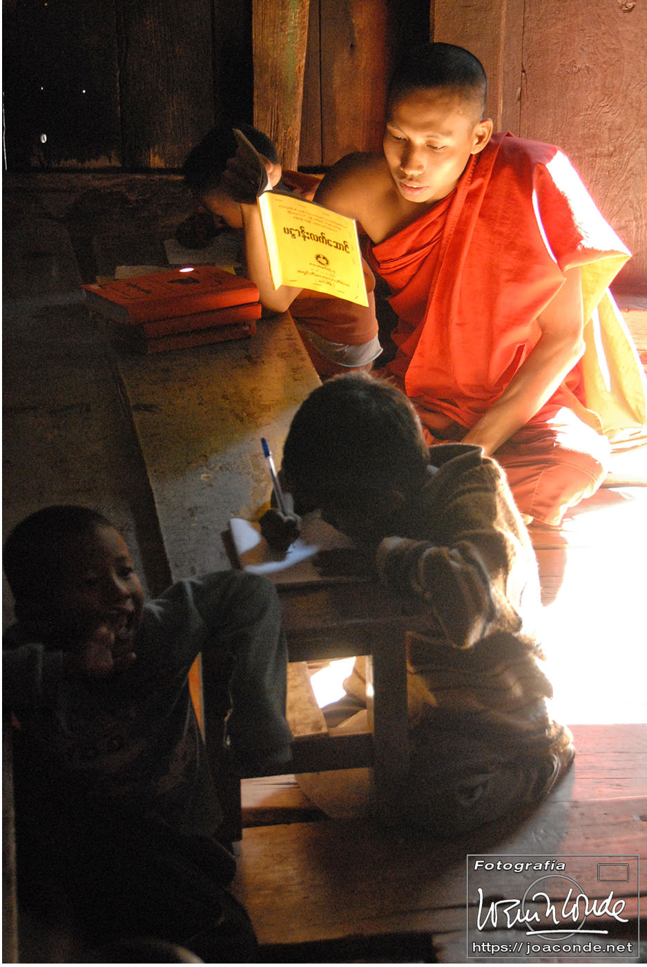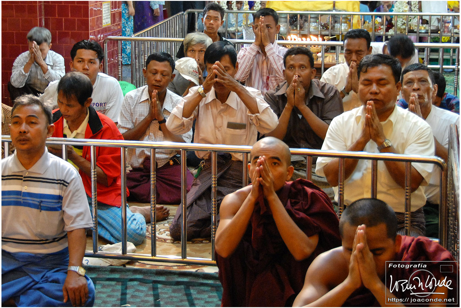De vuelta al hotel, Zaw Zaw nos llevó a un monasterio al que no iban turistas. Al anochecer, unos cincuenta monjes empezaron a salir de todos los rincones e iniciaron una procesión. Sus cantos monótonos, la precisión con que se descalzaron y avanzaron hacia la sala de oración fue un espectáculo sobrecogedor. Solo rompía la armonía el titilar de las bombillitas del Buda que me hipnotizaron.