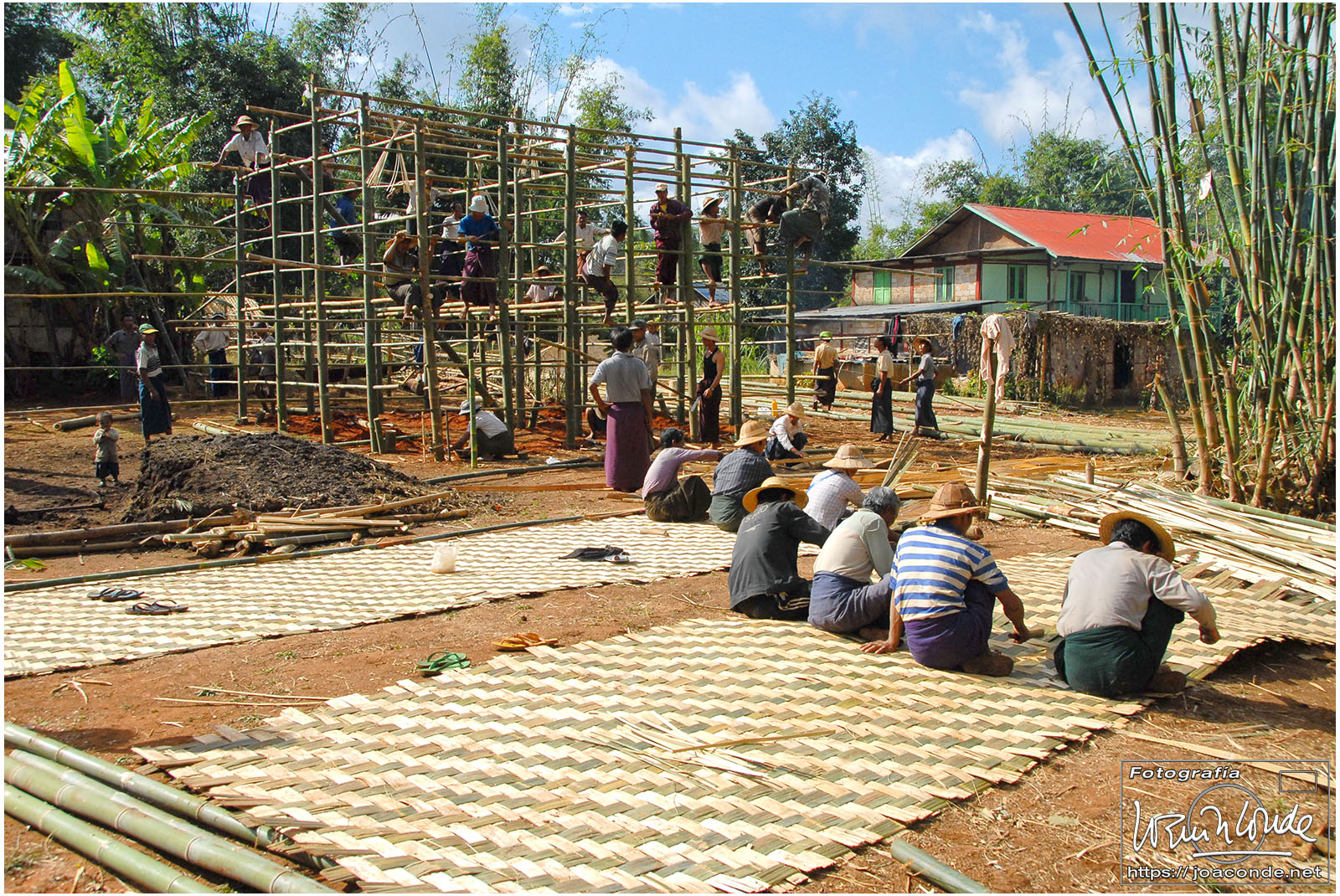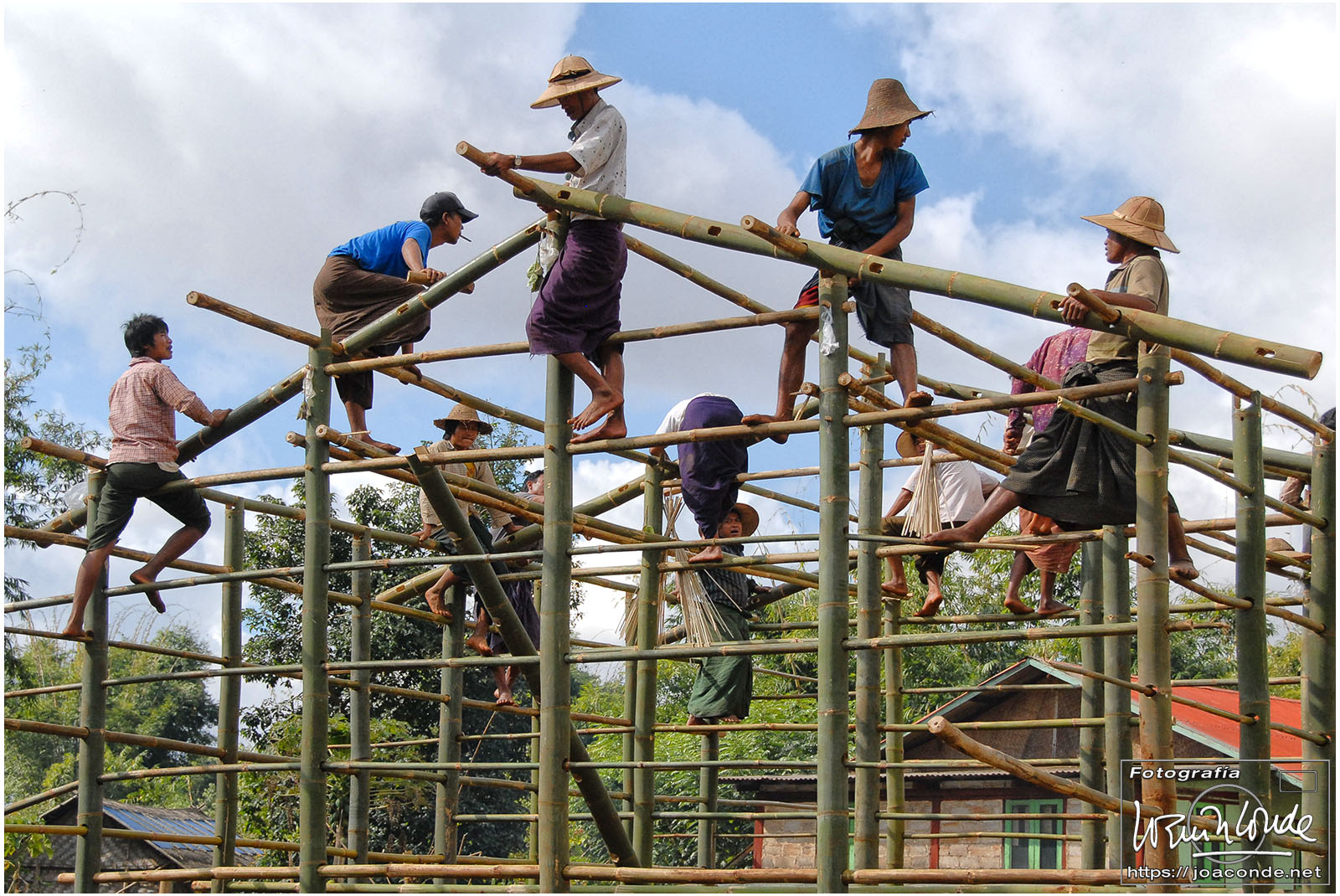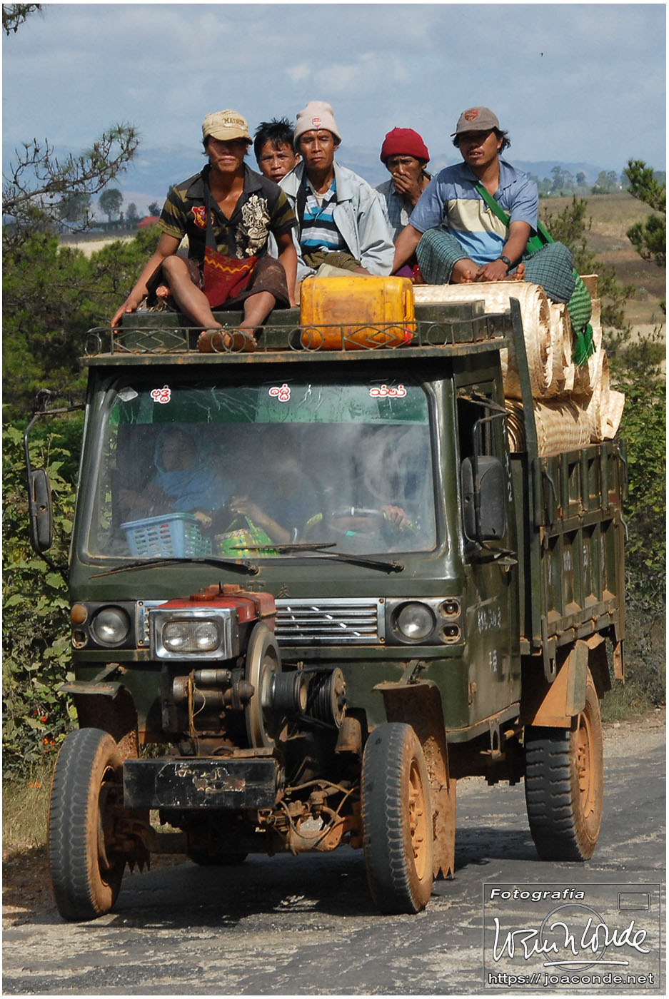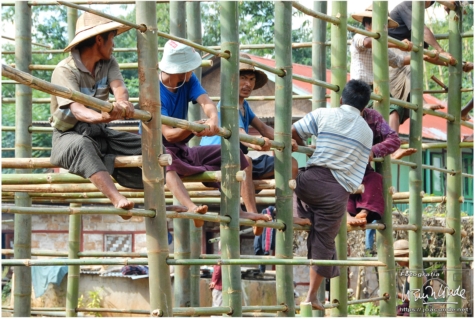 Descansados y con ambiente fresco, después de desayunar, salimos rumbo al lago Inle. La primera parada fue en el mercado de Kalaw, muy animado y pintoresco. Después vimos camionetas atestadas, talleres mecánicos, peculiares gasolineras y paramos en la construcción comunitaria de una vivienda tradicional. Cerca ya del lago, visitamos el monasterio Shwe Yan Pyay; los monjes novicios descansaban o jugaban con las cometas bajo un cielo que amenazaba tormenta. Nada más llegar al lago, en el momento de embarcar para el hotel, nos cayó un enorme chaparrón, que hizo que tuviéramos que cambiarnos de arriba abajo antes de comer.