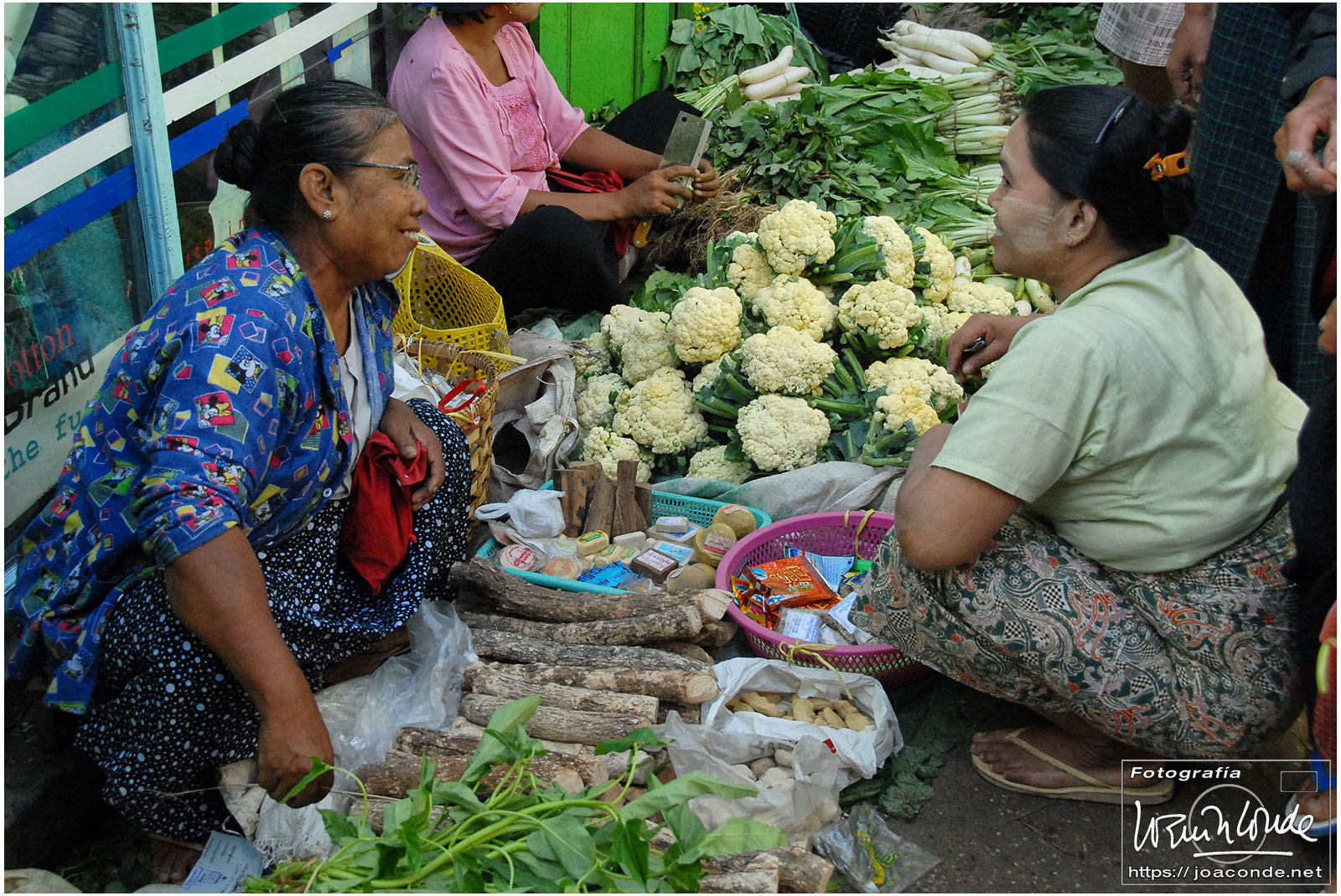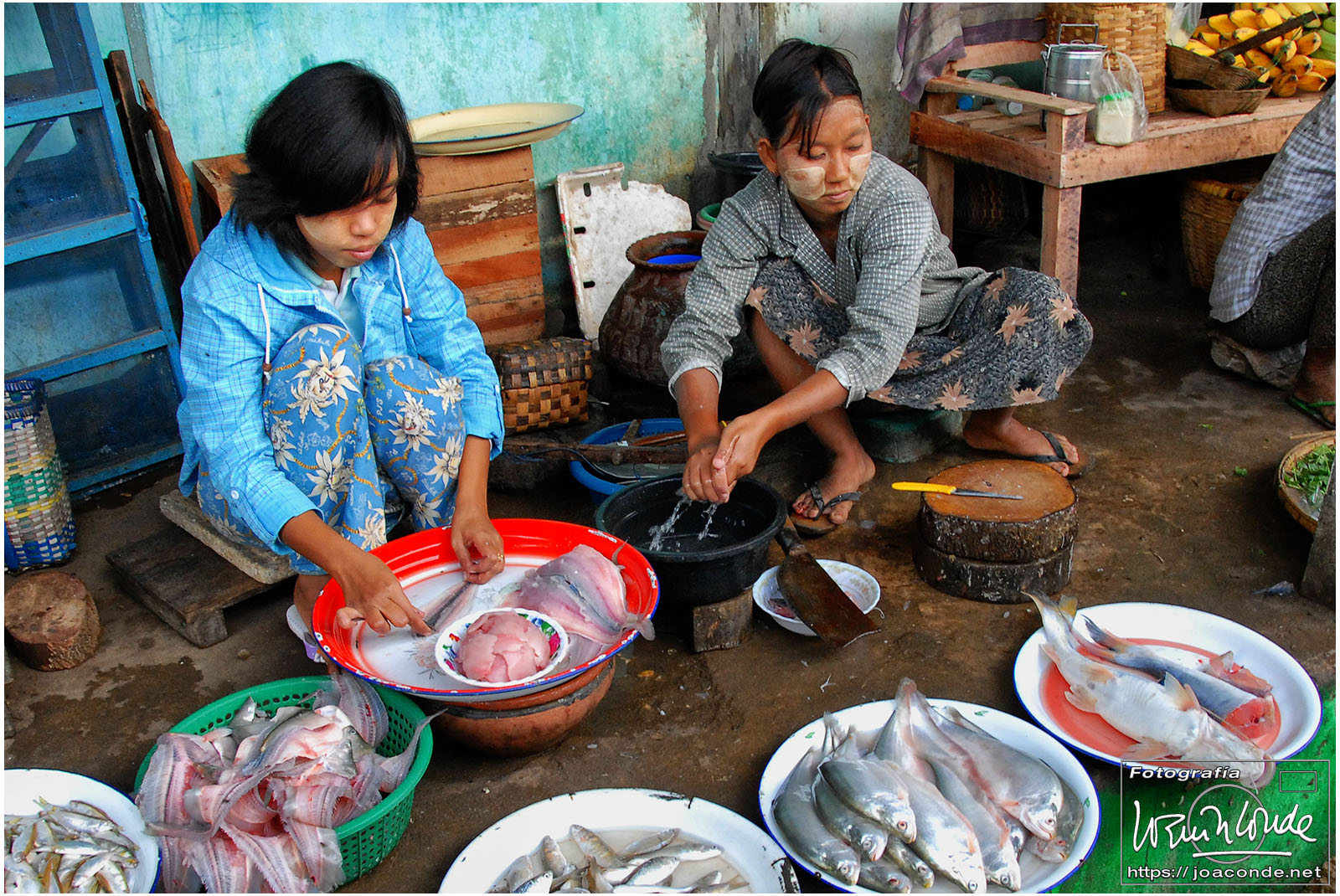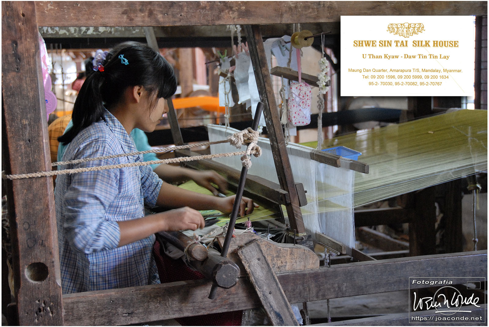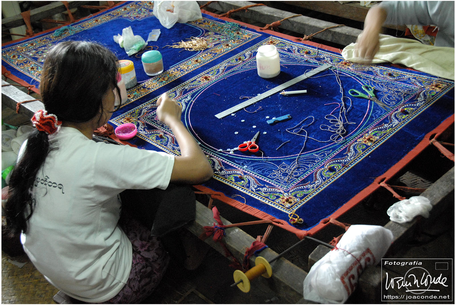 Amaneció un día precioso; era la fiesta nacional. Después del desayuno volvimos a navegar, esta vez hacia la orilla este del lago. Vimos a los pescadores con sus nasas y su particular forma de remar. Cruzamos un mercado, animadísimo, y fuimos a otra tienda —muy especial— de artesanía. Este era el territorio de las padaung o mujeres jirafa de la etnia karen. Sus pesados collares de latón les hundían desde niñas clavículas y costillas, para parecer más atractivas. Los militares quisieron erradicar esta costumbre y muchas huyeron a la cercana Tailandia para exhibirse a los turistas. Aquí se dedicaban sin complejos a la artesanía.