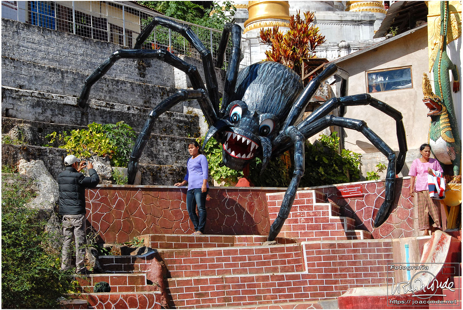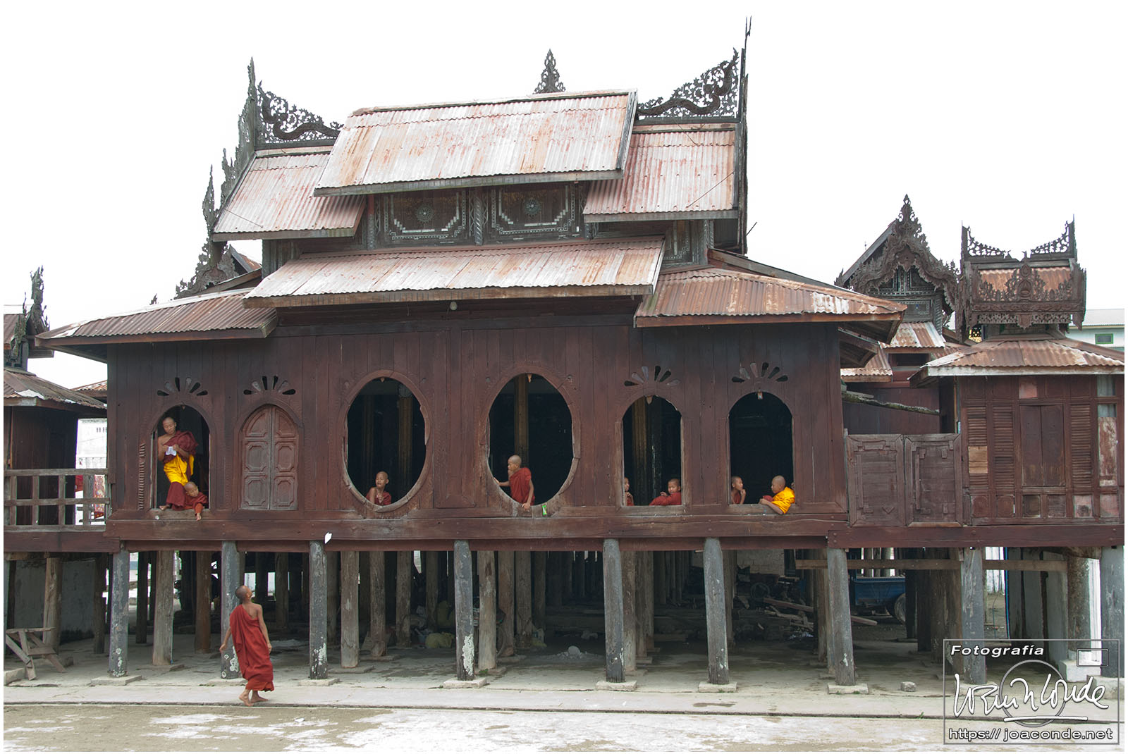 Más tarde visitamos el Monasterio Shwe Indein, con cientos de pagodas y un taller de seda de loto. Después comimos en un restaurante «flotante» y estuvimos comprando seda. A última hora, entramos en el Nga Phe Chaung, un monasterio en el que los monjes se entretenían amaestrando gatos.