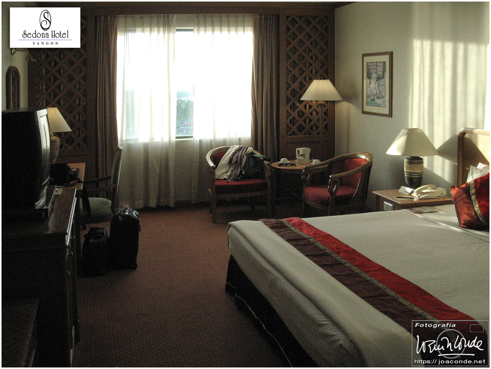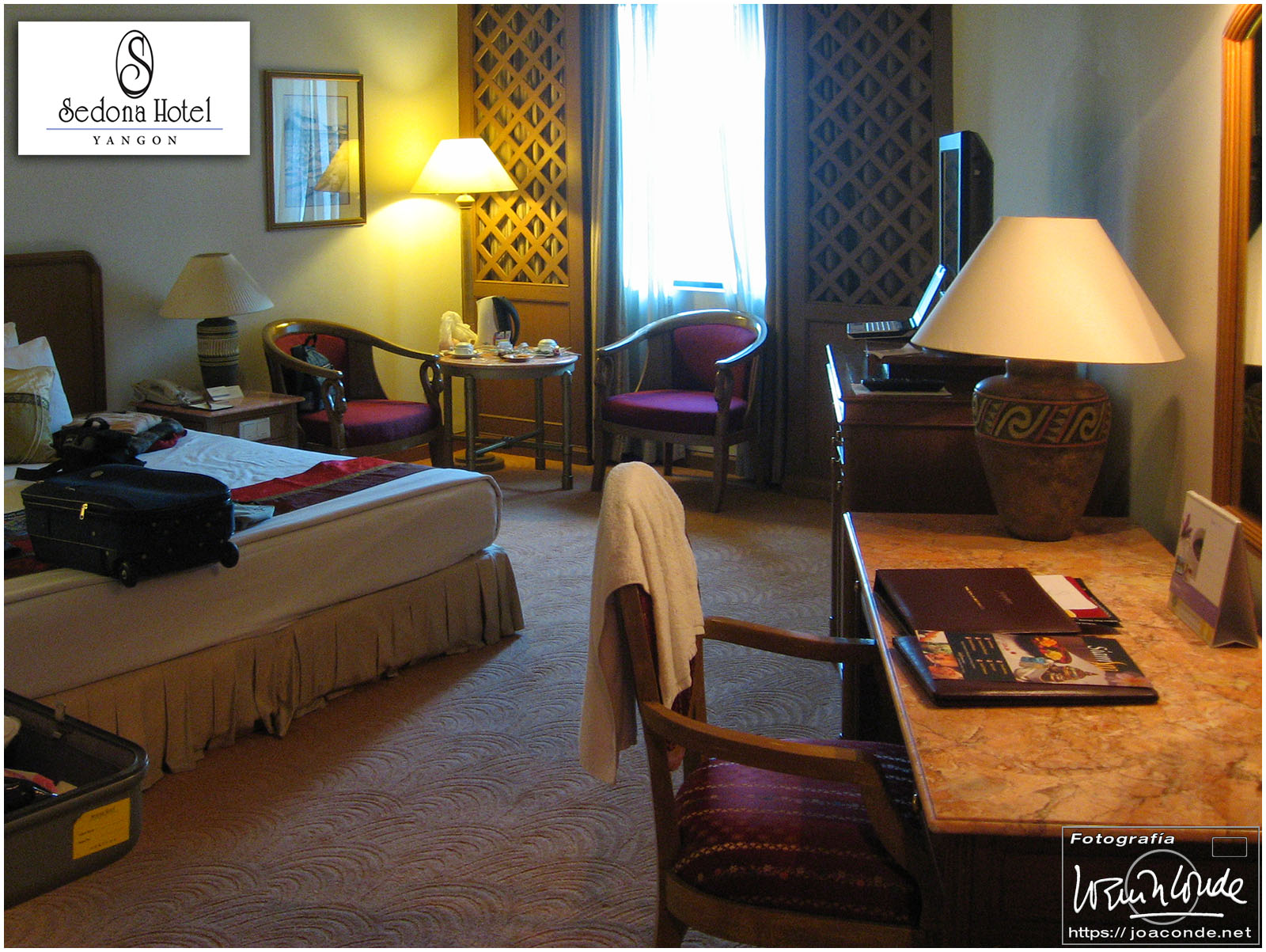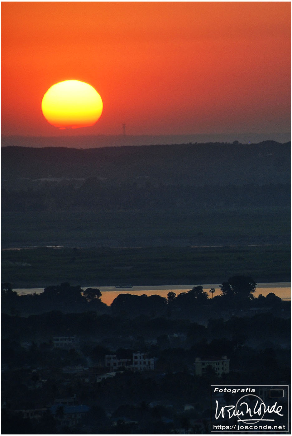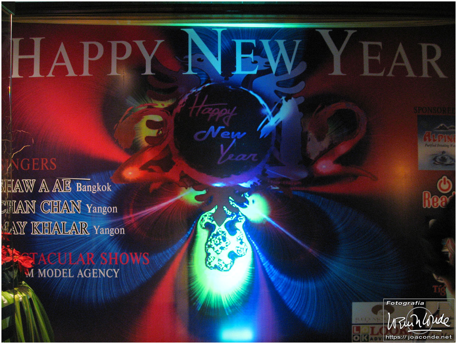 Después de comer, compramos un buda tallado y regresamos al hotel, el Mandalay Hill. A la caída de la tarde subimos a la colina, para ver la última puesta de sol del año. Aquella noche en el hotel hubo cena especial y una gran fiesta; después tomamos las uvas enlatadas y nos recogimos. En España eran seis horas y media menos.