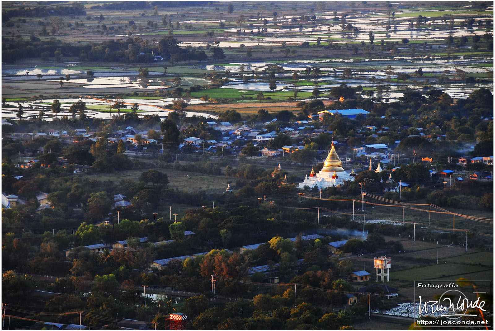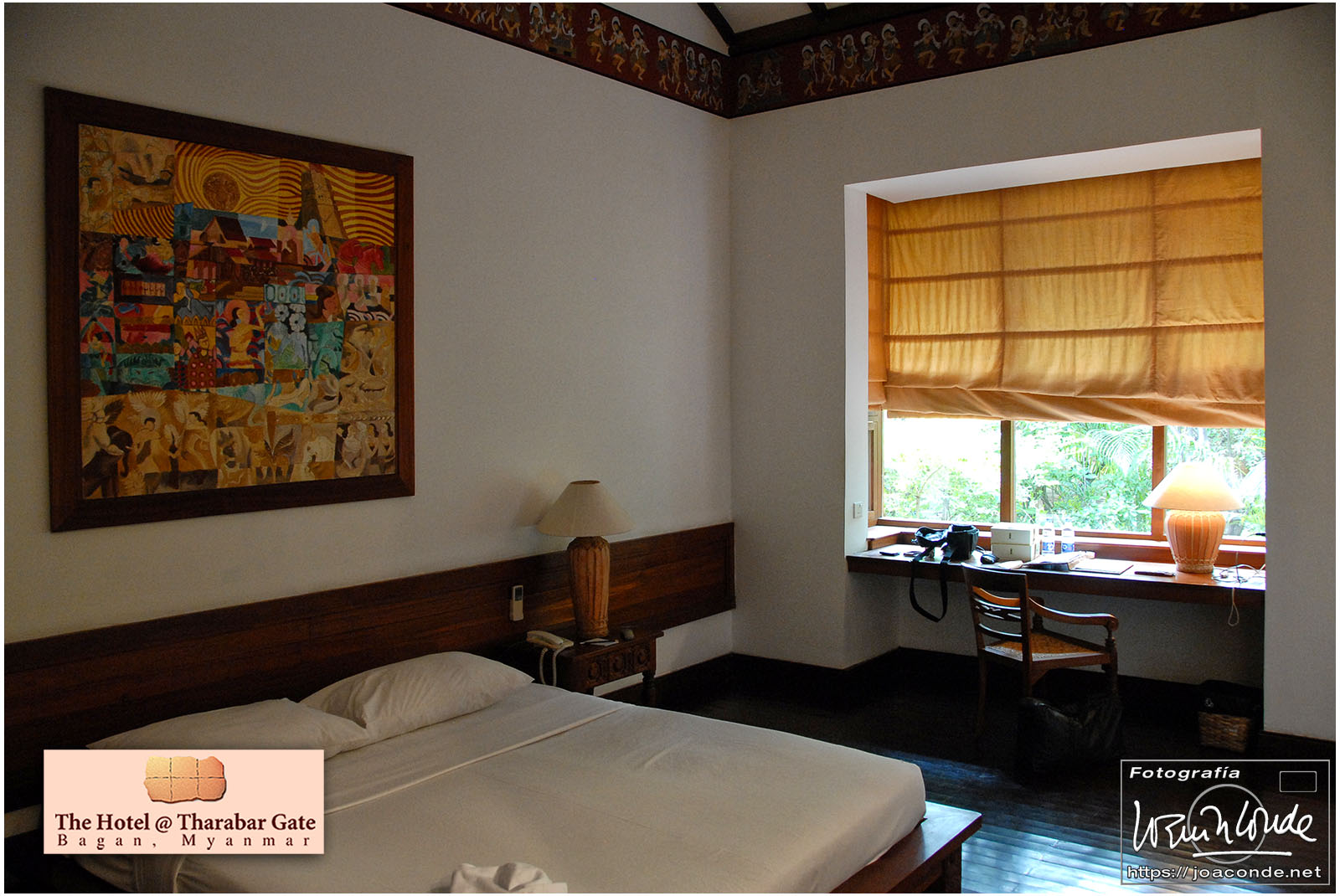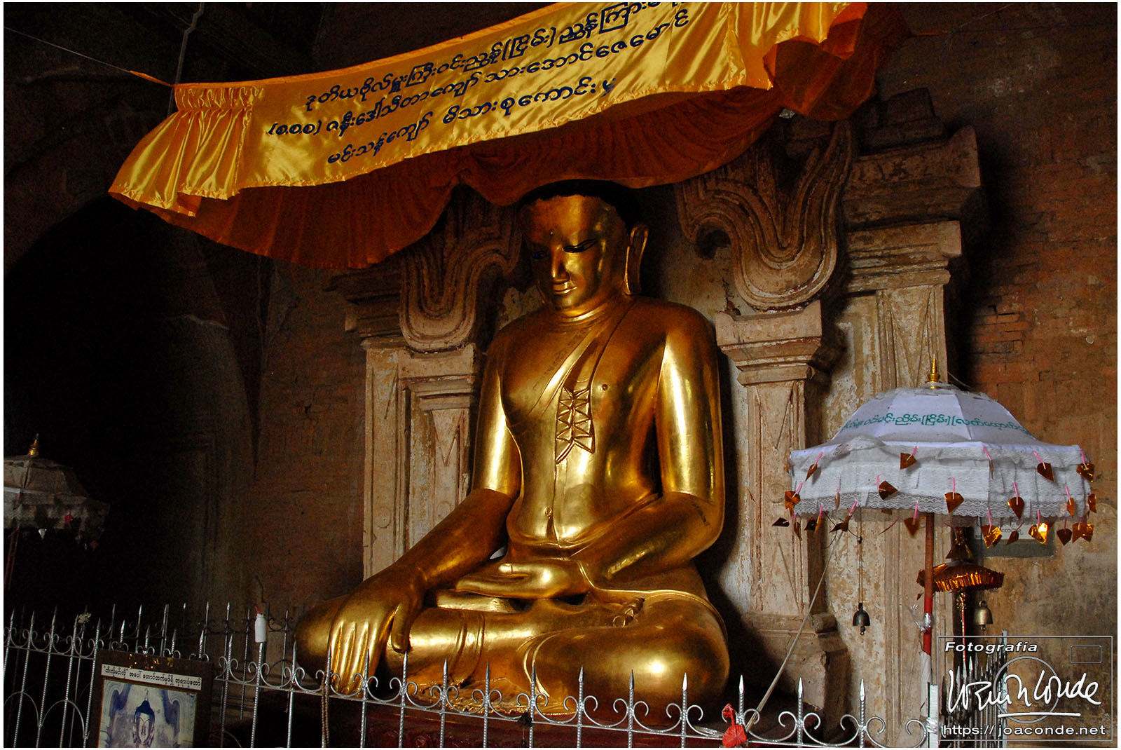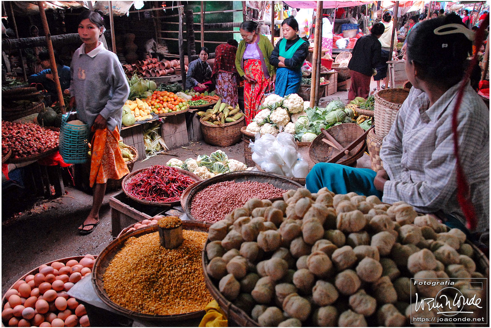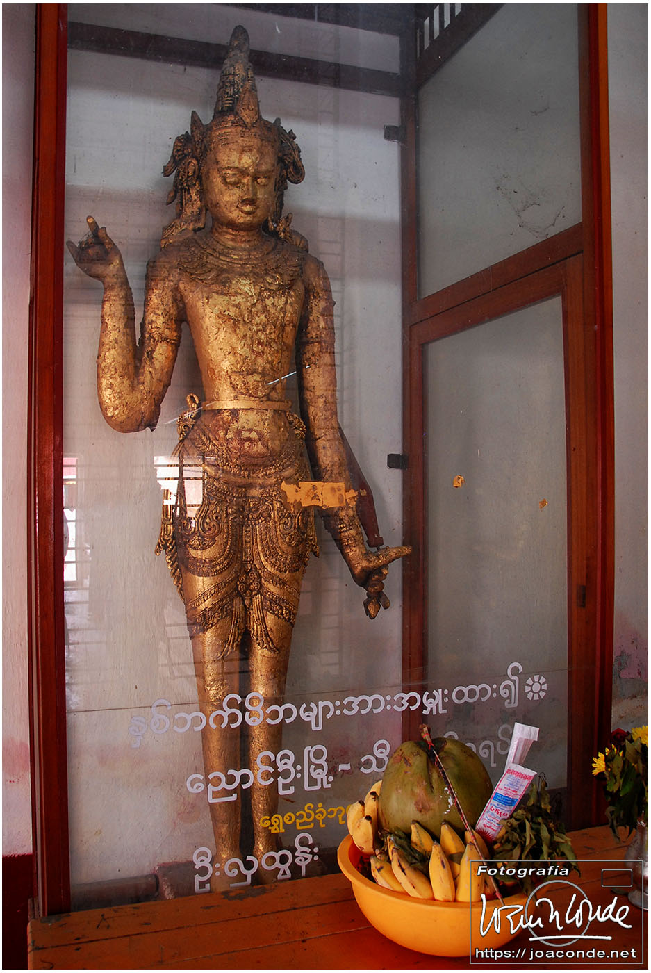 El vuelo 909 a Bagán salía a las 6:15, antes del amanecer. En la antigua capital visitamos en primer lugar el mercado de Niaung-U; allí tiré fotos a diestro y siniestro. Después fuimos a la pagoda de Shwezigon; dentro estaban las imágenes de los 37 nat, espíritus invisibles de los árboles o los de los ríos. Seguimos la ruta visitando el templo de Ananda, primo de Buda, en el que era costumbre pegar láminas de pan de oro a las figuras sagradas. También estuvimos en un taller de lacado y por último, fuimos al hotel Tharabar Gate, donde comimos y descansamos un rato.