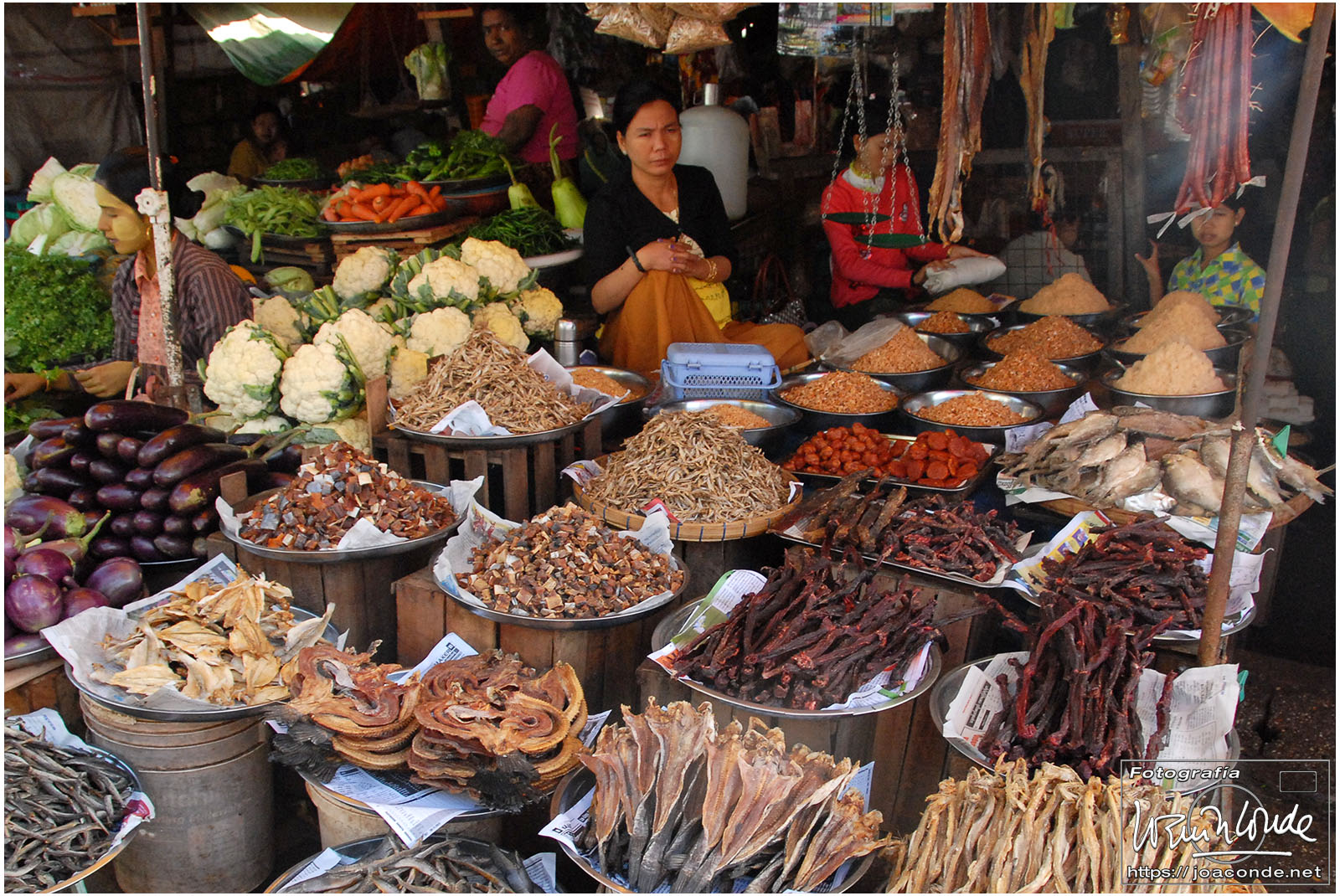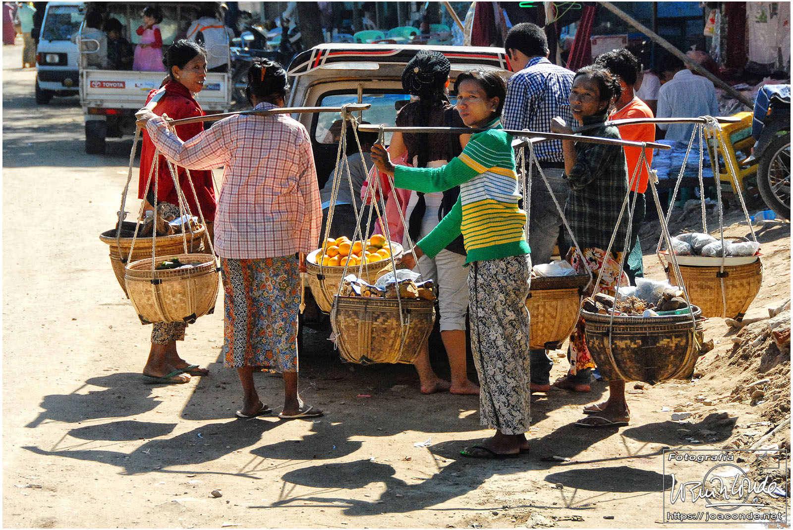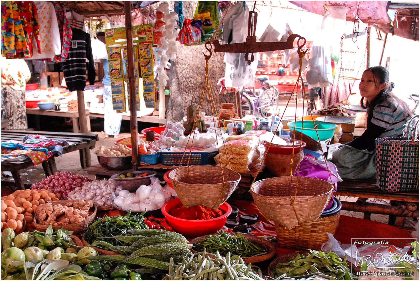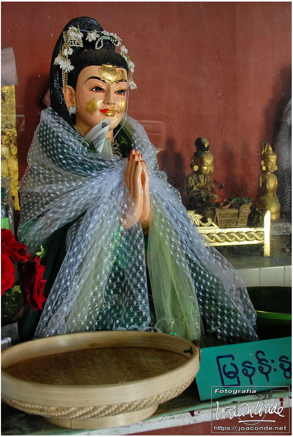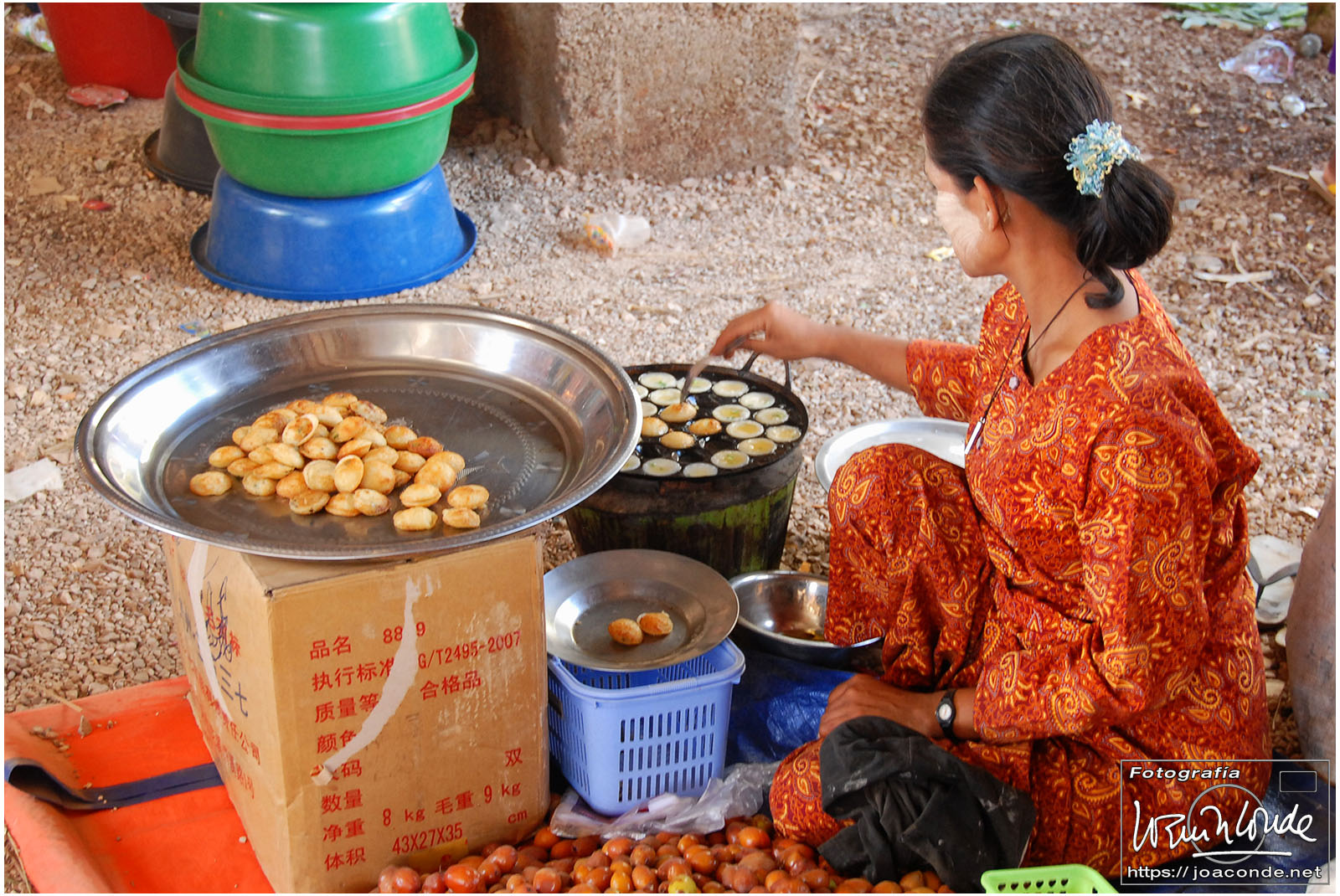 El vuelo 909 a Bagán salía a las 6:15, antes del amanecer. En la antigua capital visitamos en primer lugar el mercado de Niaung-U; allí tiré fotos a diestro y siniestro. Después fuimos a la pagoda de Shwezigon; dentro estaban las imágenes de los 37 nat, espíritus invisibles de los árboles o los de los ríos. Seguimos la ruta visitando el templo de Ananda, primo de Buda, en el que era costumbre pegar láminas de pan de oro a las figuras sagradas. También estuvimos en un taller de lacado y por último, fuimos al hotel Tharabar Gate, donde comimos y descansamos un rato.