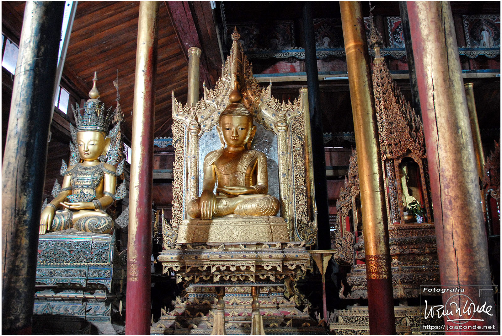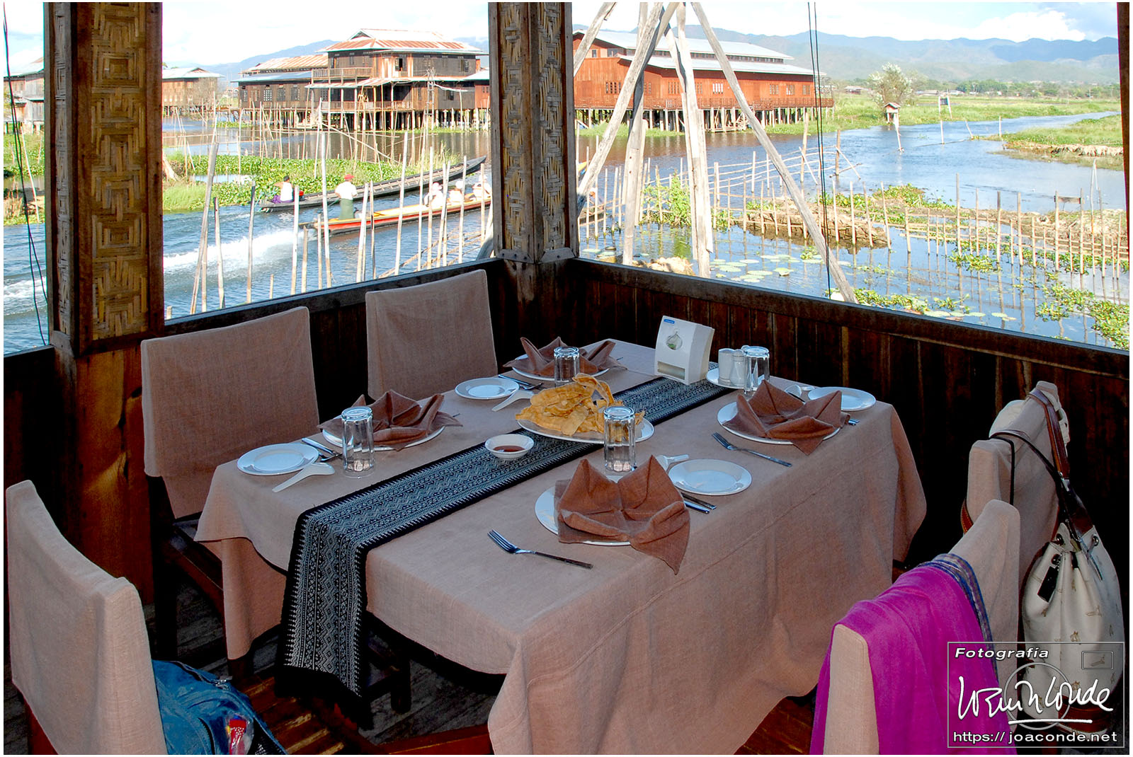 Por la tarde navegamos por el lago. Era muy curioso ver como los pescadores remaban con un pie, dejando así las manos libres para otras faenas. Atracamos en la Pagoda Phaung Daw U, y rezamos ante sus cinco budas, tan recubiertos de pan de oro, que eran irreconocibles. También vimos una de las barcazas de la procesión acuática que se celebraba anualmente. De vuelta al complejo, disfrutamos del lujo asiático, con los mejores deseos de los empleados.