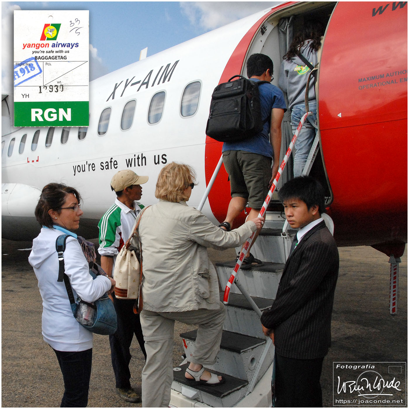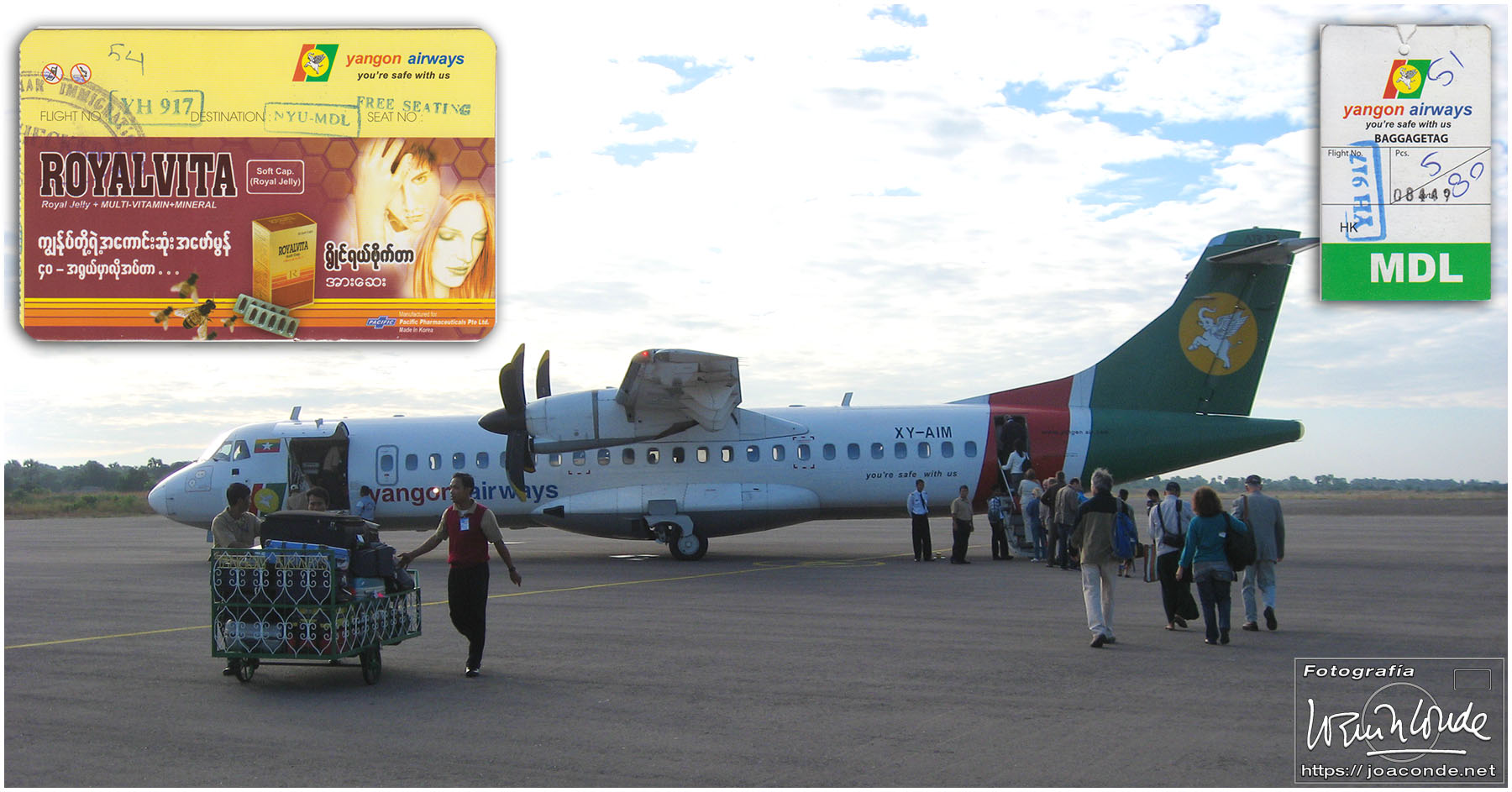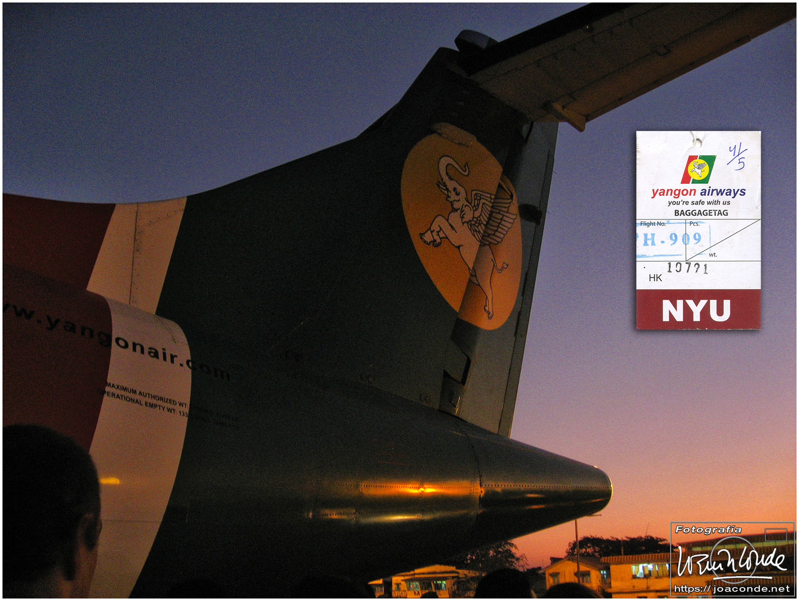 Unas chicas-mariposa nos despidieron al dejar el hotel aquella brumosa mañana. En barca y después en furgoneta fuimos hasta el aeropuerto de Heho. Nuestro vuelo a Rangún despegó a las 9:35.