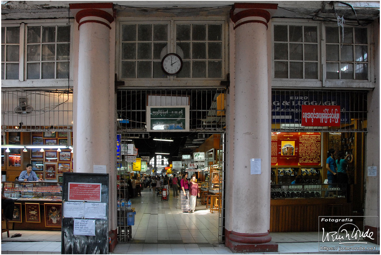 Otra vez en Rangún, la antigua capital de Birmania, visitamos el mercado Bogyoke, que nada tenía que ver con los mercados tradicionales. Después paseamos por el centro. Lugares como el hotel Strand recordaban el periodo británico. Había muchos edificios faltos de mantenimiento. En numerosos puestos se vendían sin recato carteles de Aung San Suu Kyi —Nobel de la Paz en 1991—. Regresamos temprano al Sedona; esa noche nos recogían para cenar en Le Planteur, un exclusivo restaurante francés. La cena fue memorable y los traslados se hicieron en un Morris Oxford del 54, más vistoso que confortable.