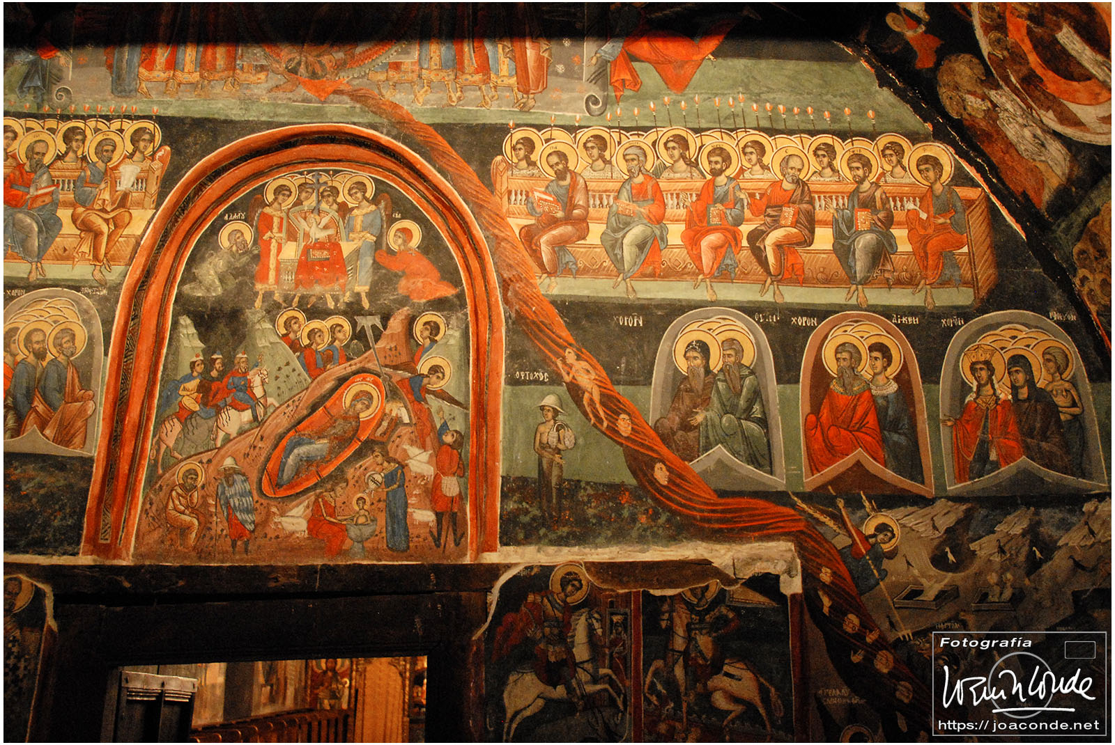 A continuación fuimos a Arbanasi, a 10 km de Veliko Tarnovo. Entre las iglesias de este pueblo, destacaba la de la Natividad, del siglo XVII, sin campanario para no ofender a los ocupantes otomanos. Su interior estaba completamente decorado con frescos del s XVII y era Patrimonio de la Humanidad. La rueda de la vida, era un recorrido gráfico muy didáctico sobre las edades del hombre. Después entramos en el Monasterio de San Nicolás. Era el día de la Virgen y se celebraban muchos bautizos; tal vez por eso, y por un buen donativo que le di a una sacristana, me dejaron hacer algunas fotos. Por último, visitamos la de la casa de los Konstanzaliev y comimos estupendamente en el Luliaka.