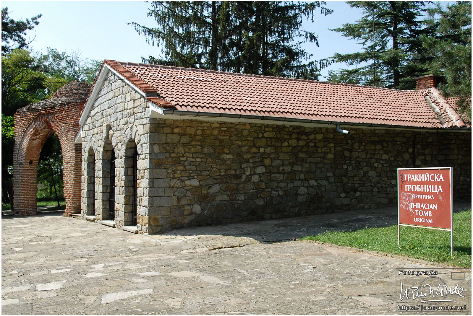Ya estábamos en el Valle de las Rosas, también llamado Valle de los Reyes Tracios, y proliferaban montículos artificiales que escondían y protegían los túmulos tracios. Golyamata Kosmatka, la tumba de Seutes III, era uno de los más grandes. Cerca de allí comimos en Kransko Hanche y después visitamos el túmulo de Kazanlak, uno de los más importantes monumentos de la extraordinaria cultura tracia que floreció en estas tierras. Fue descubierto en 1944 y era Patrimonio de la Humanidad. Entrar el túmulo «por dos minutos» costaba carísimo y estaba prohibido hacer fotos, así que visitamos una réplica cercana, ¡qué remedio!