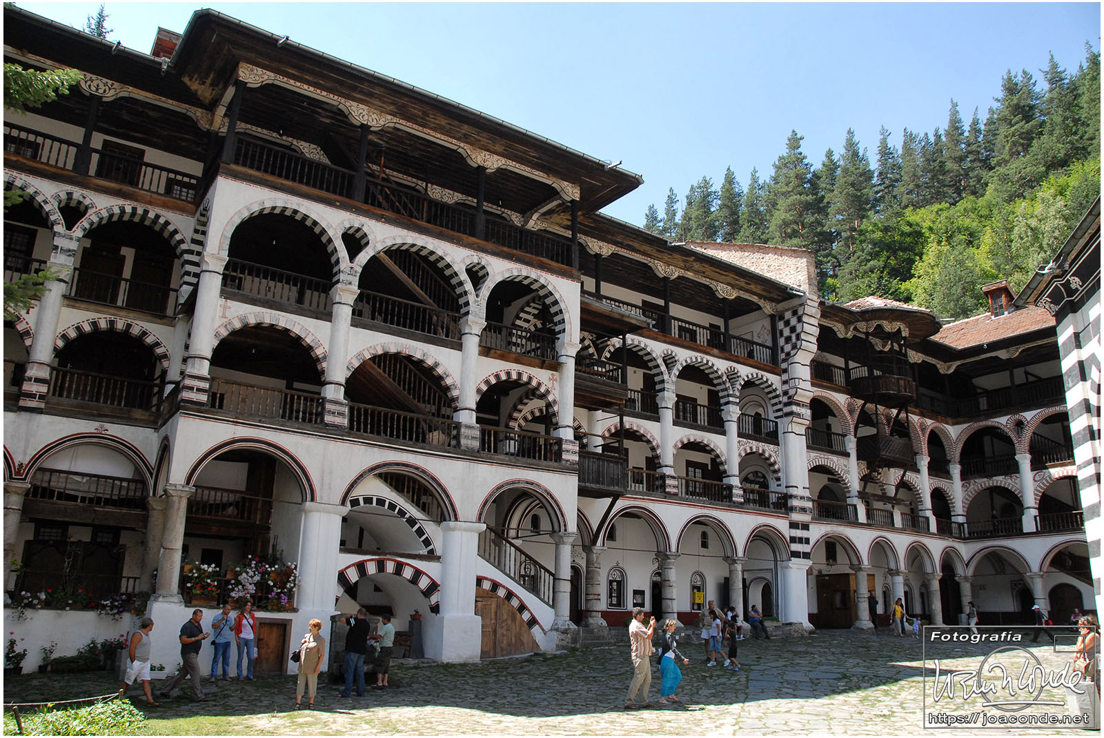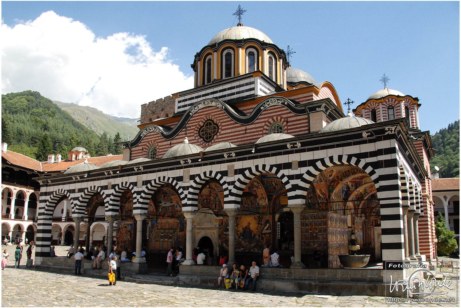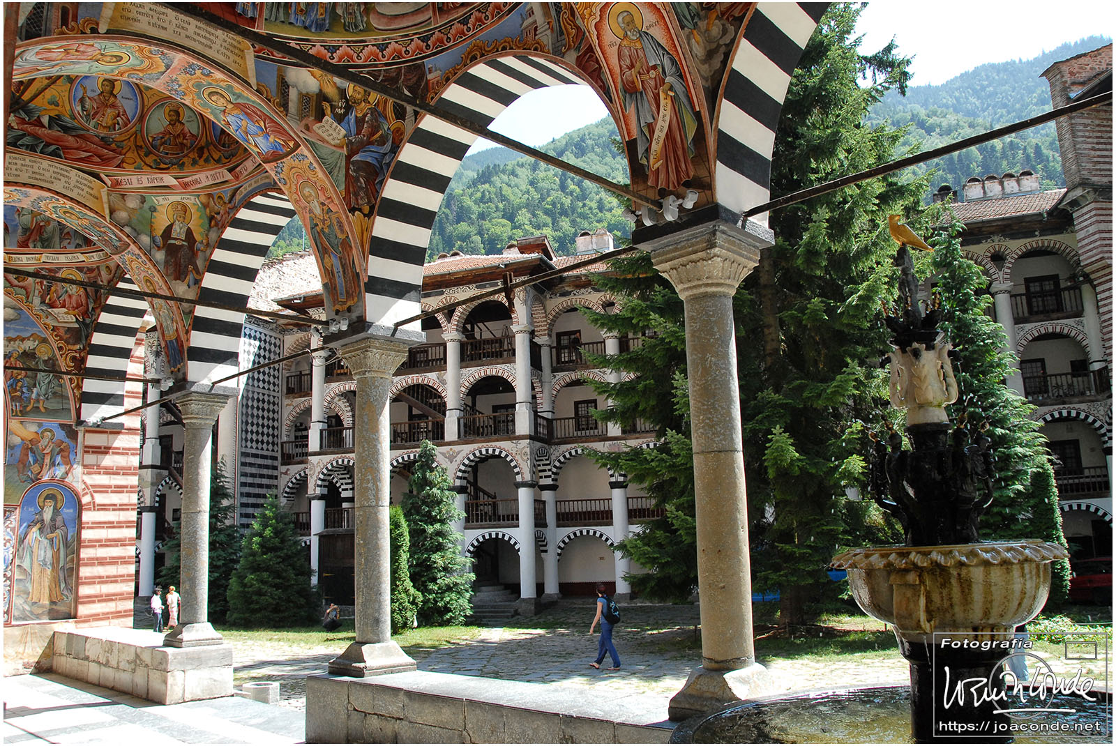 El Monasterio de Rila (Patrimonio de la Humanidad) fue fundado en el siglo X por San Juan de Rila, un cortesano búlgaro —después ermitaño— canonizado por la Iglesia Ortodoxa. Iván Rilski se retiró a estas montañas en la parte occidental de Bulgaria, a unos 120 kilómetros de Sofía. Allí vivió santamente en el hueco de un árbol tallado en forma de ataúd. Pronto se extendió su fama de santidad y acudieron en su compañía otras personas que querían seguir su ejemplo. Al final de su vida fundó el monasterio para albergar a todos estos monjes ermitaños. Como en todos los monasterios, solo pude hacer fotos de los exteriores.