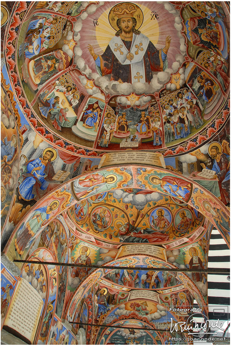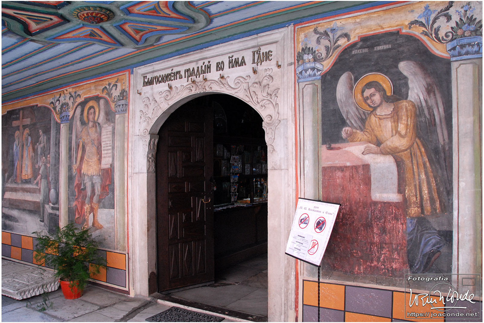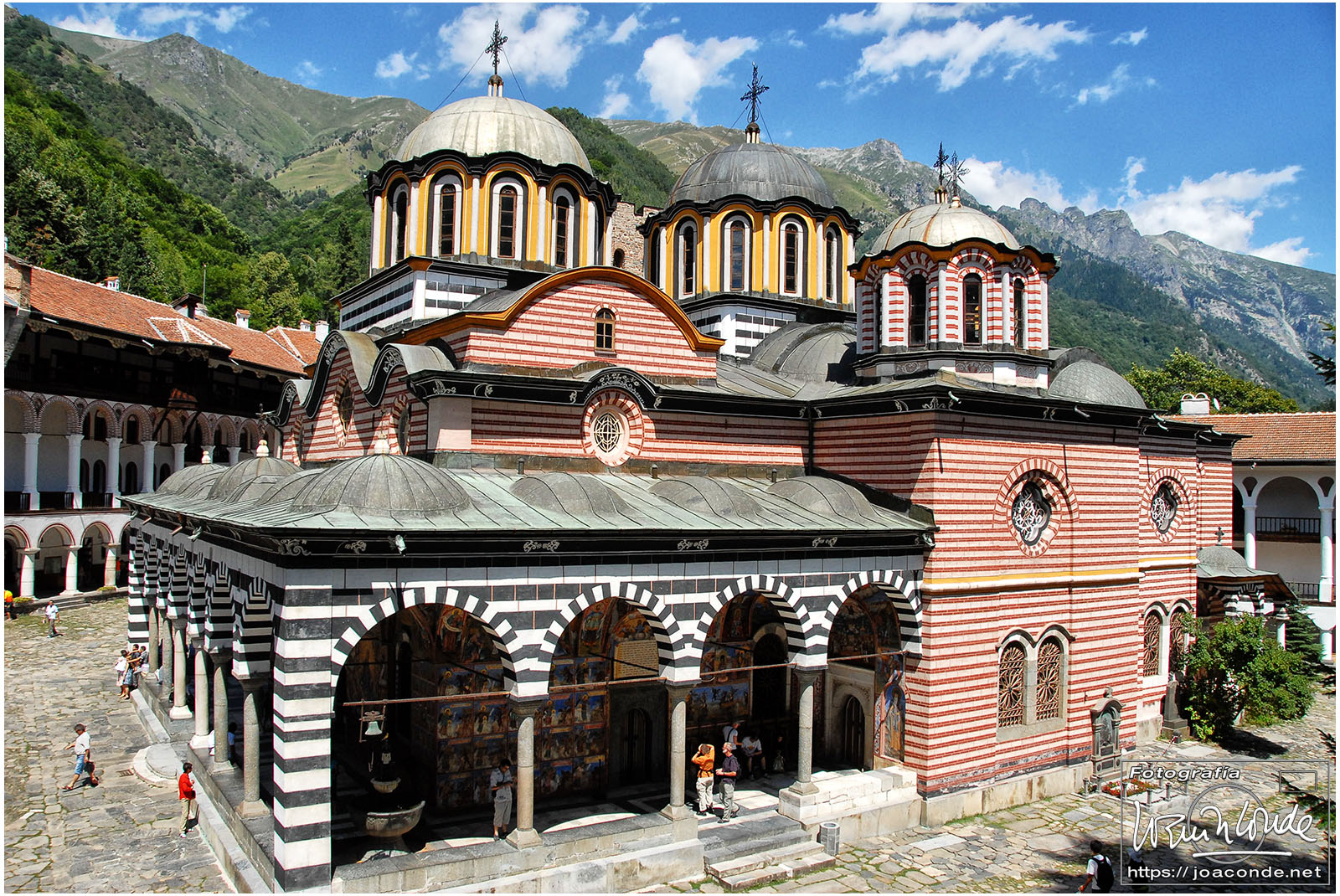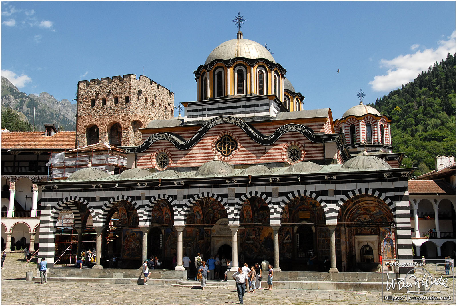 El Monasterio de Rila (Patrimonio de la Humanidad) fue fundado en el siglo X por San Juan de Rila, un cortesano búlgaro —después ermitaño— canonizado por la Iglesia Ortodoxa. Iván Rilski se retiró a estas montañas en la parte occidental de Bulgaria, a unos 120 kilómetros de Sofía. Allí vivió santamente en el hueco de un árbol tallado en forma de ataúd. Pronto se extendió su fama de santidad y acudieron en su compañía otras personas que querían seguir su ejemplo. Al final de su vida fundó el monasterio para albergar a todos estos monjes ermitaños. Como en todos los monasterios, solo pude hacer fotos de los exteriores.