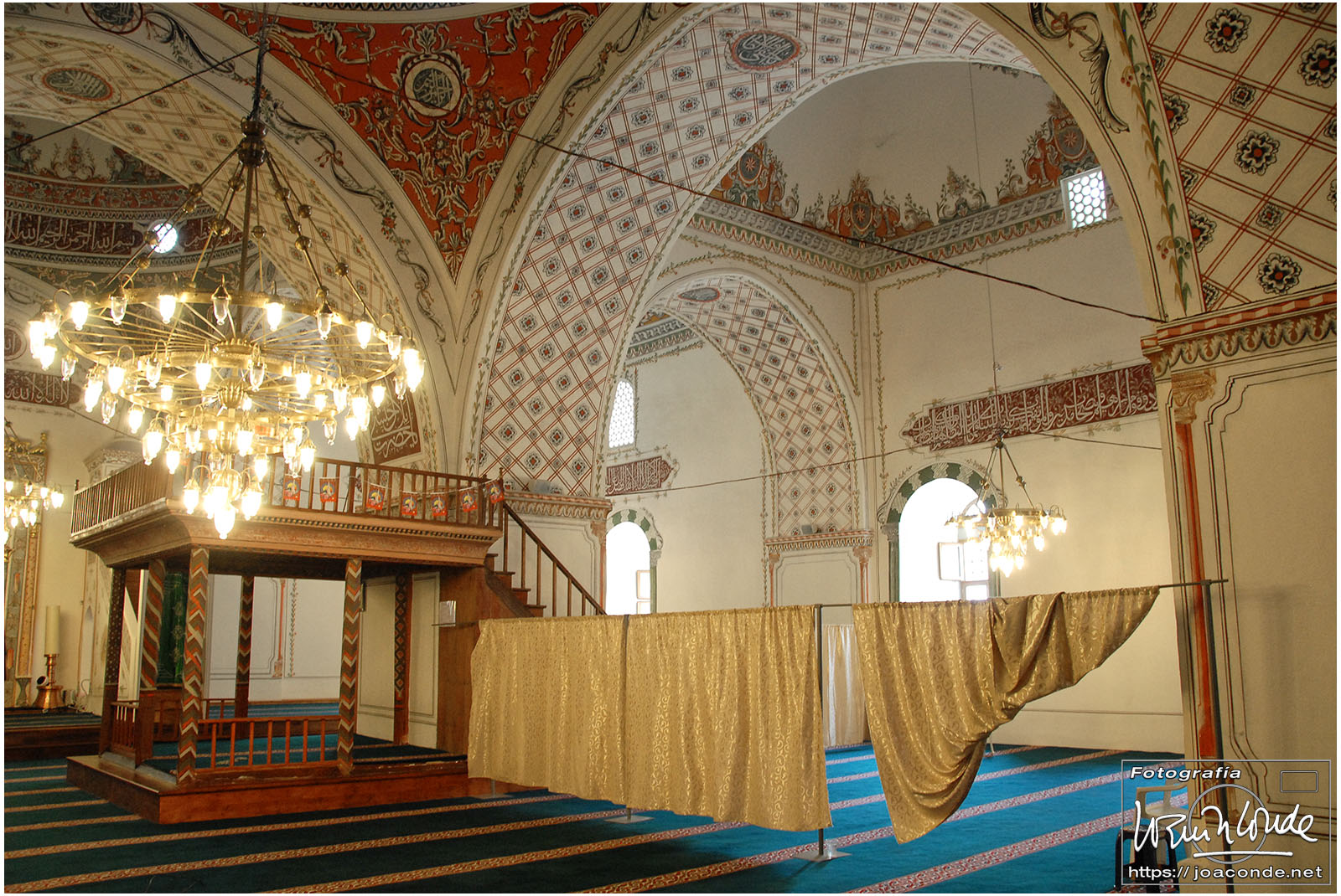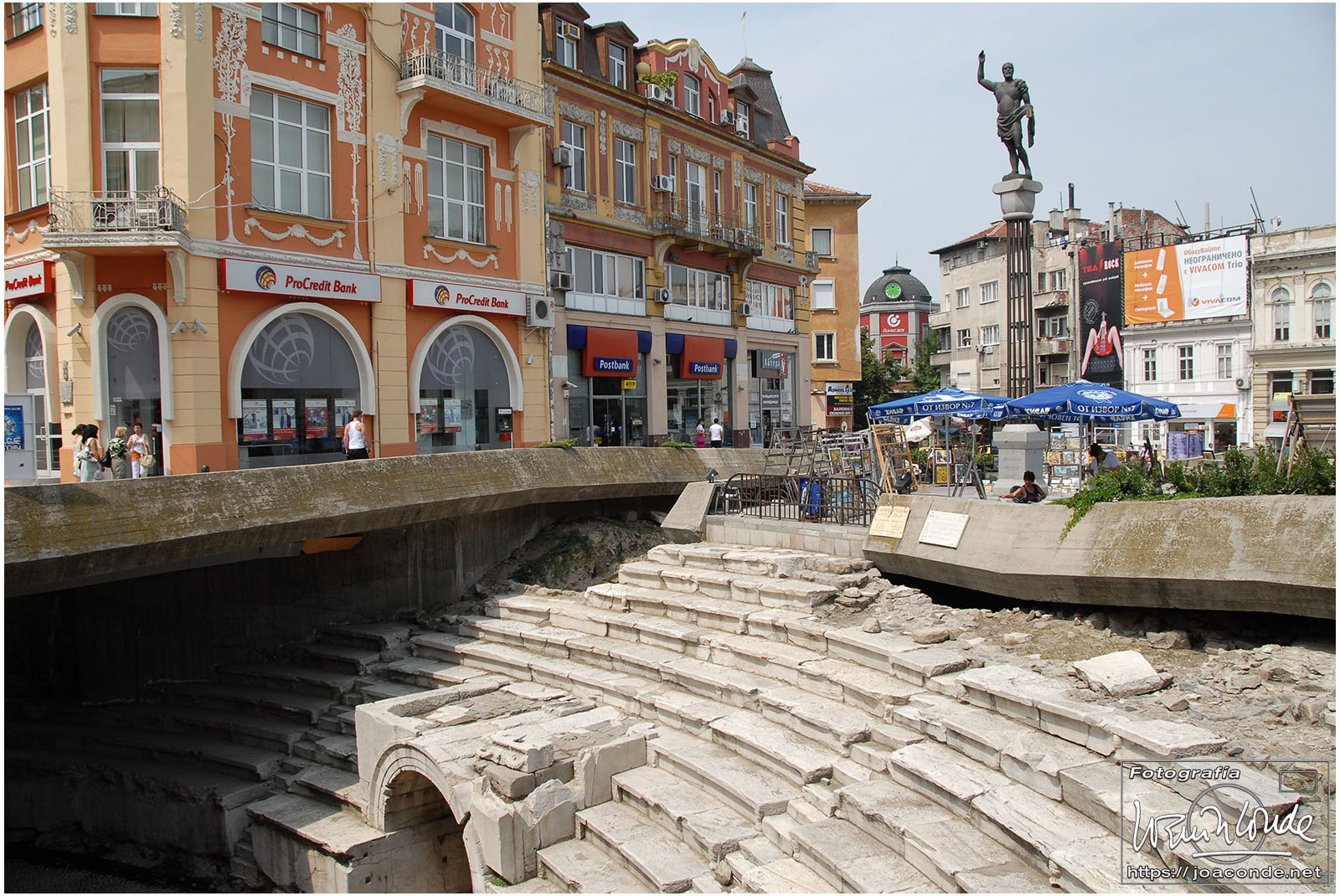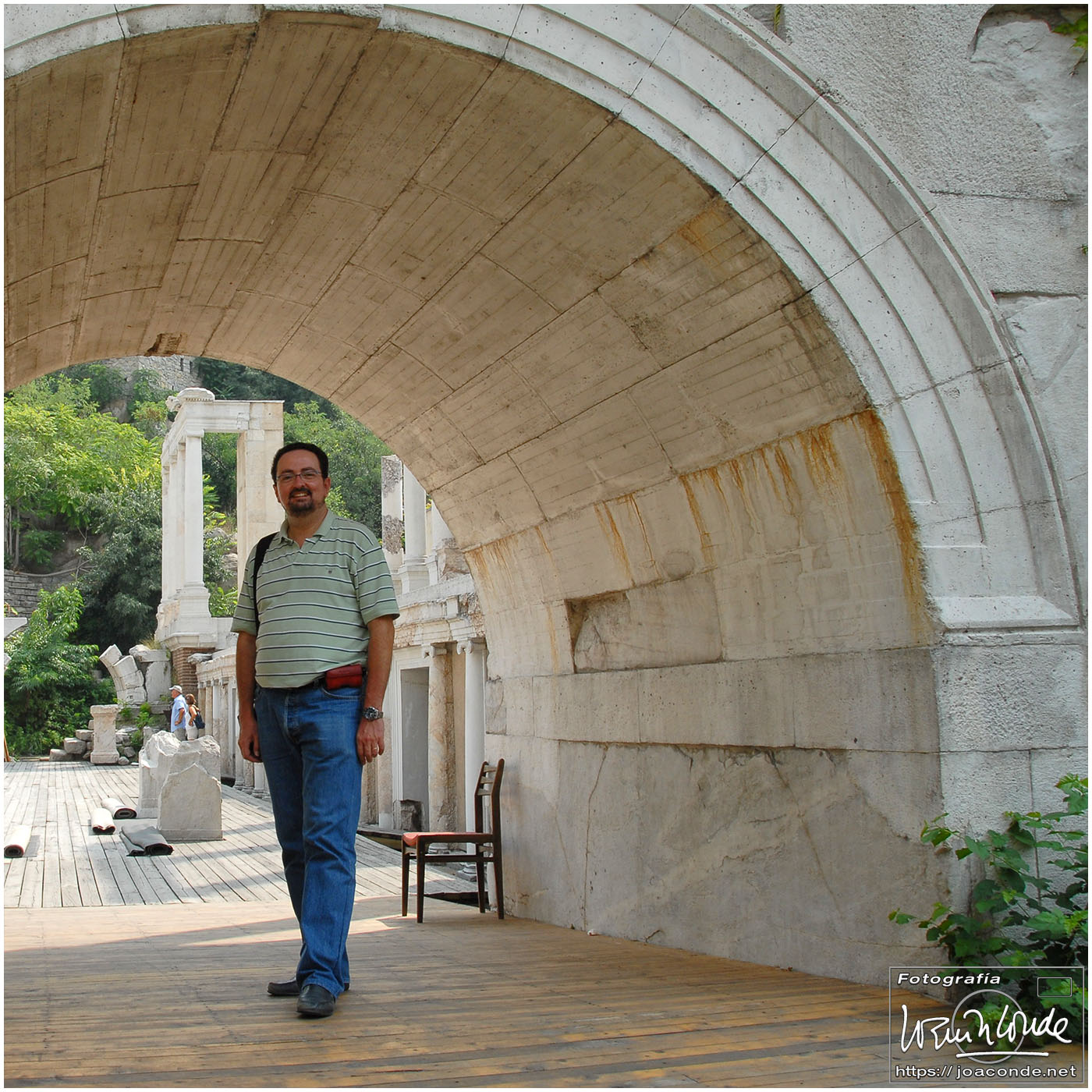 Completamos la mañana en la Iglesia de los Santos Constantino y Elena, la más antigua de la ciudad, que tenía unos frescos impresionantes. También fuimos al teatro romano, descubierto en 1972, que conservaba perfectamente 14 de sus 28 gradas. Y en la Mezquita Djumaya (la Mezquita del Viernes) se había vivido hacía cuatro días una trifulca entre dos facciones islámicas; el edificio estaba rodeado por varios furgones policiales. A pesar de ello, nos permitieron entrar a hacer fotos y hasta nos encendieron las luces.