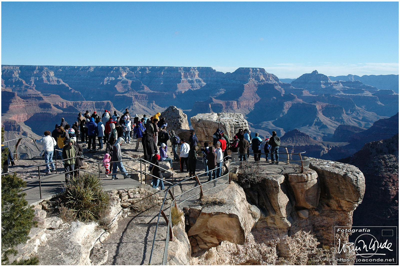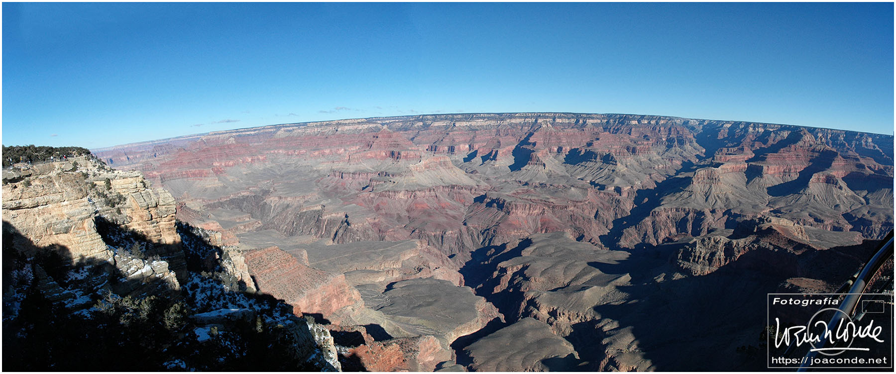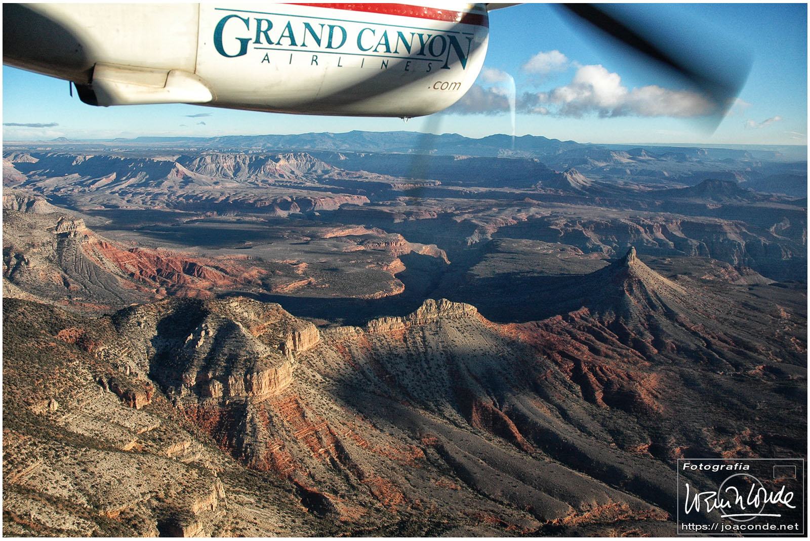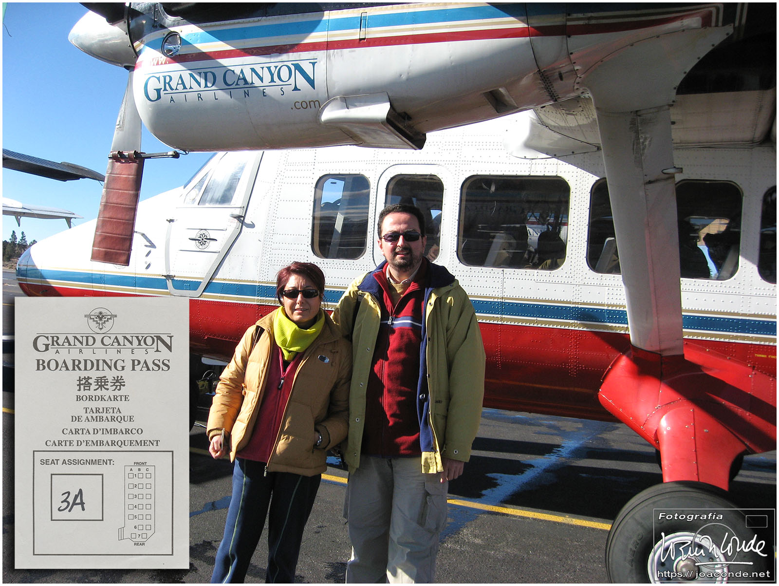 Antes del amanecer, alrededor de las seis, ya estábamos en el aeródromo de Scenic Airlines para ir al Gran Cañón del Colorado. Durante el vuelo a Arizona, el paisaje y sus tonalidades iban cambiando rápidamente. Cuando llegamos, nos pusieron una película en el Imax y después nos asomamos a uno de los miradores. Hacía un frío impresionante y pronto nos metimos en un refugio. Cuando tomamos algo caliente, volvimos al mirador, hice algunas fotos más y regresamos a Las Vegas. En ese vuelo pasamos por encima del skywalk, una atracción para valientes.