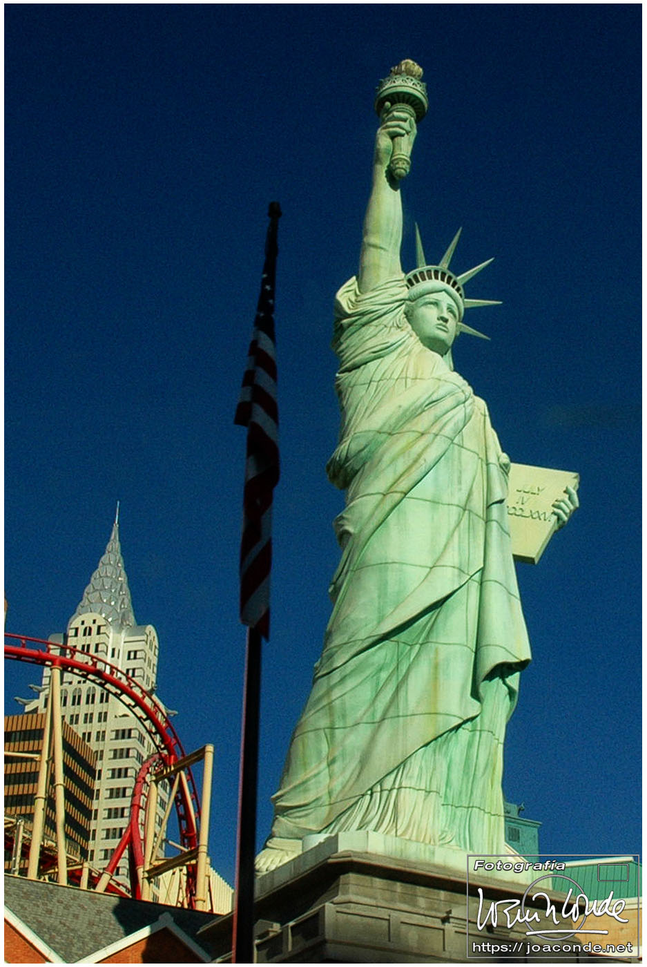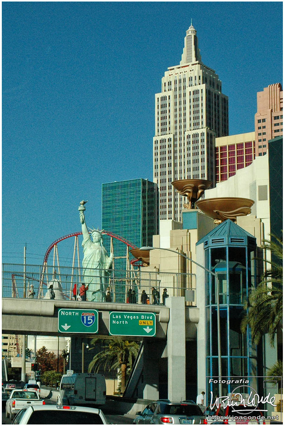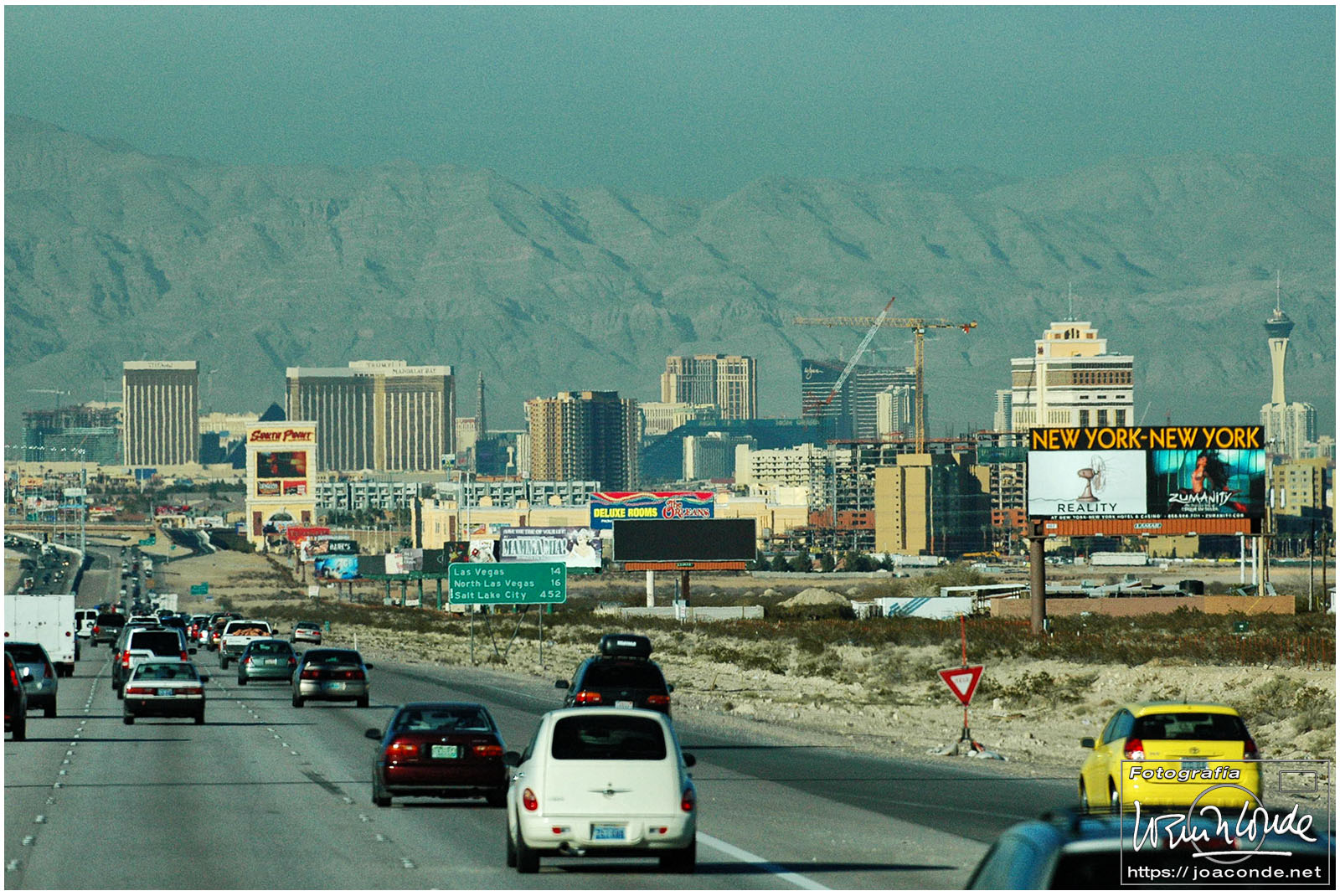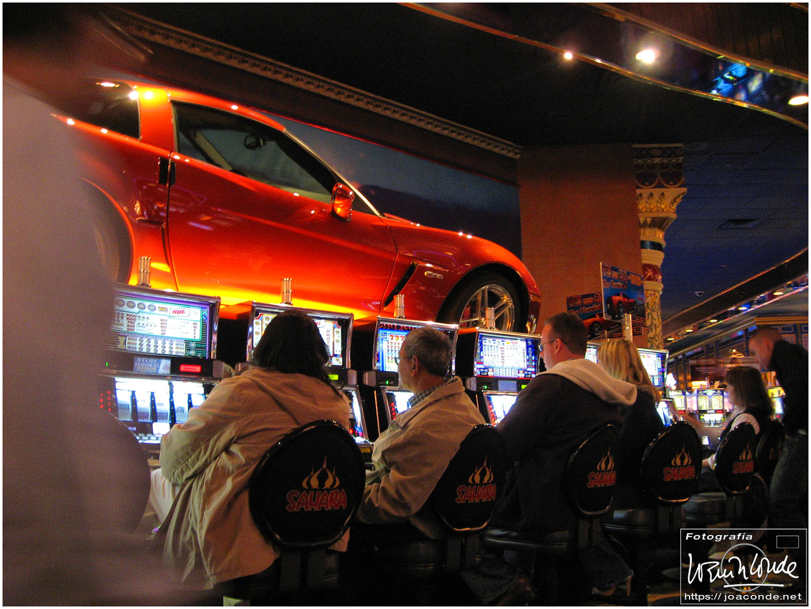 Atravesamos el Desierto de Mojave en el que solo los Joshua tree rompían la monotonía. Nada más cruzar la frontera entre California y Nevada estaba Primm, una agregación de casinos para impacientes o ludópatas que no podían aguantarse las ganas de jugar. Unas millas más allá —44 millas, equivalentes a 71 km— Las Vegas. Nos alojamos ya de noche en el Sahara, un hotelazo en el extremo este del Strip, con 1700 habitaciones y un enorme casino.