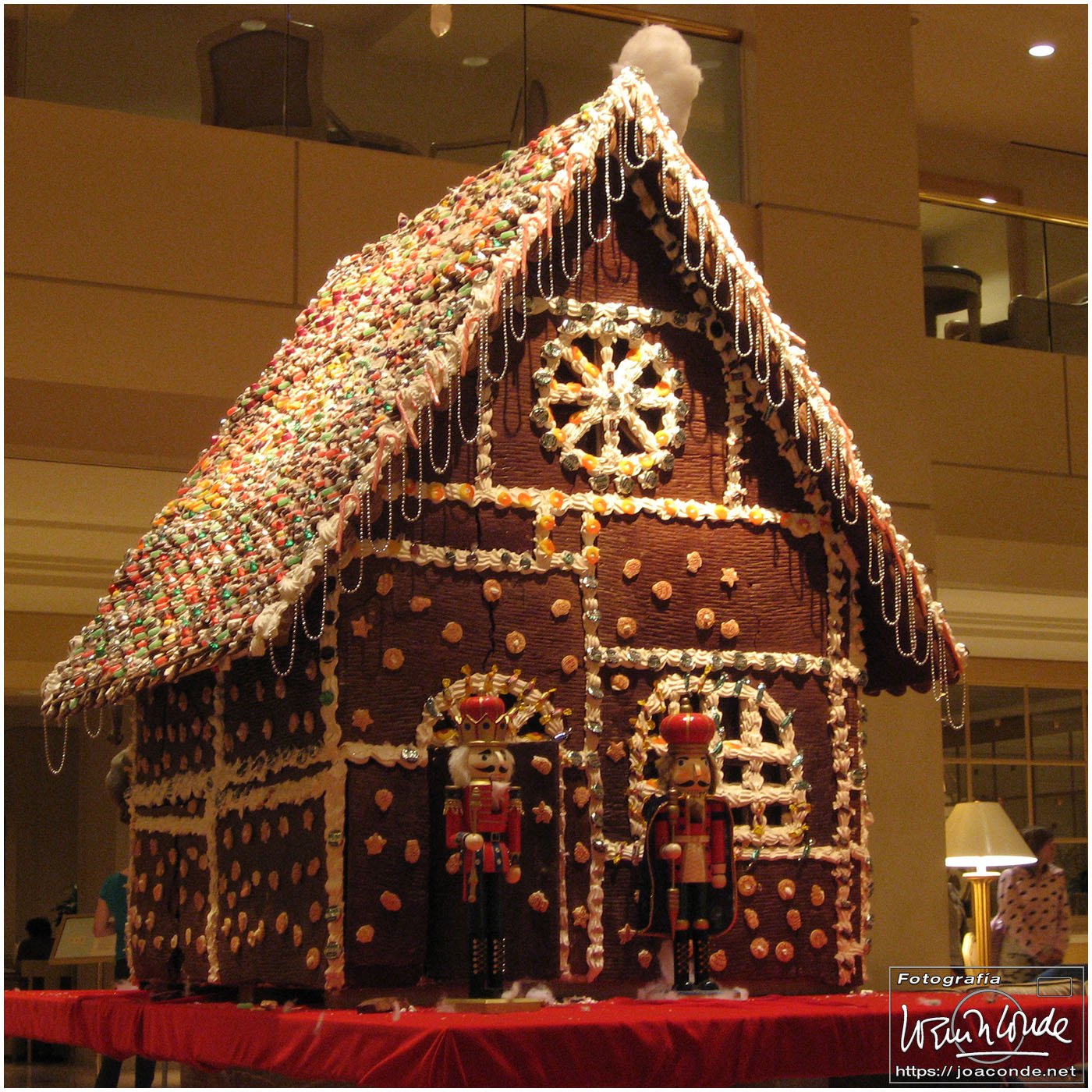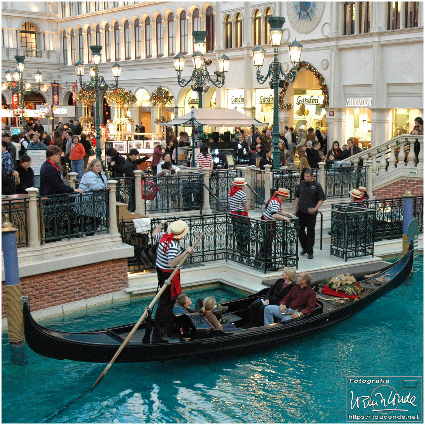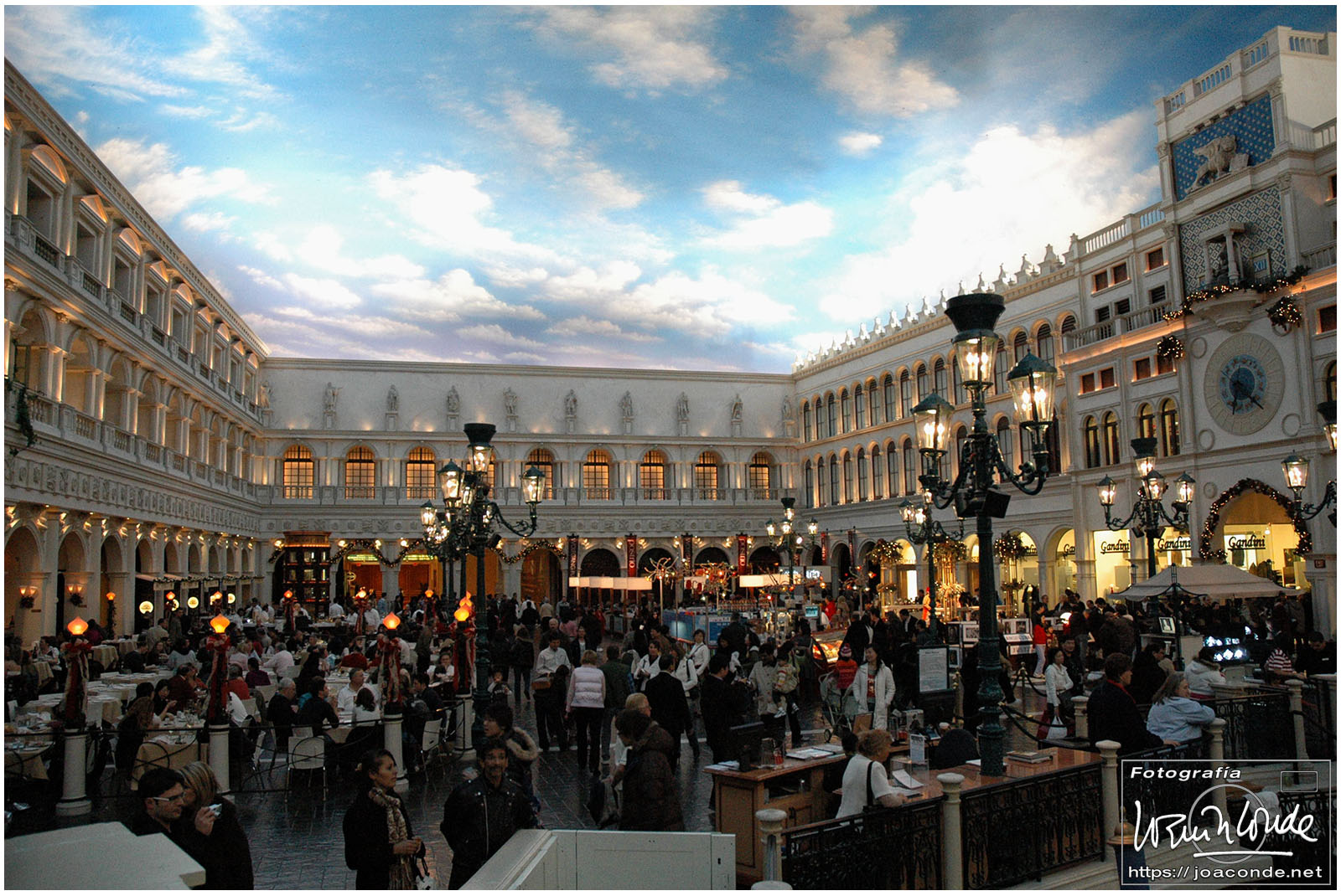 Por la noche estuvimos en el Venetian, un hotel impresionante; su interior era una réplica de la plaza de San Marcos, pero la calefacción revelaba que no estábamos al aire libre… ¡ni en Venecia! De allí fuimos al Caesars Palace —un pelín hortera— y al lago del hotel Bellagio. En pleno desierto, el espectáculo de agua, luces y Celine Dion cantando My Heart Will Go On, estuvo genial. En el interior del hotel (con casi 4000 habitaciones) había toda clase de lujos, entre ellos un jardín estacional con motivos navideños y todo el techo del lobby de cristal de Murano.
