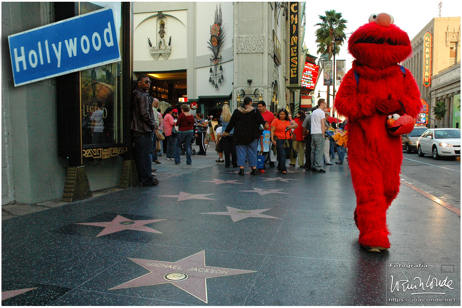 Las distancias allí eran de vértigo; la calle más larga del mundo, Sepulveda Boulevard, tenía en 2006 alrededor de 42,8 millas (68,9 km) de longitud. Llegamos a mediodía a Beverly Hills, un distrito muy exclusivo. Curioseamos en las tiendas de Rodeo Drive, las más célebres y caras del mundo y nos asomamos al Beverly Wilshire, el hotel en el que se rodó Pretty Woman. A media hora de allí en autobús estaba Hollywood; entramos en el teatro chino (Kodak Theatre) donde se entregaban los Oscar y recorrimos un trecho del Paseo de la Fama.