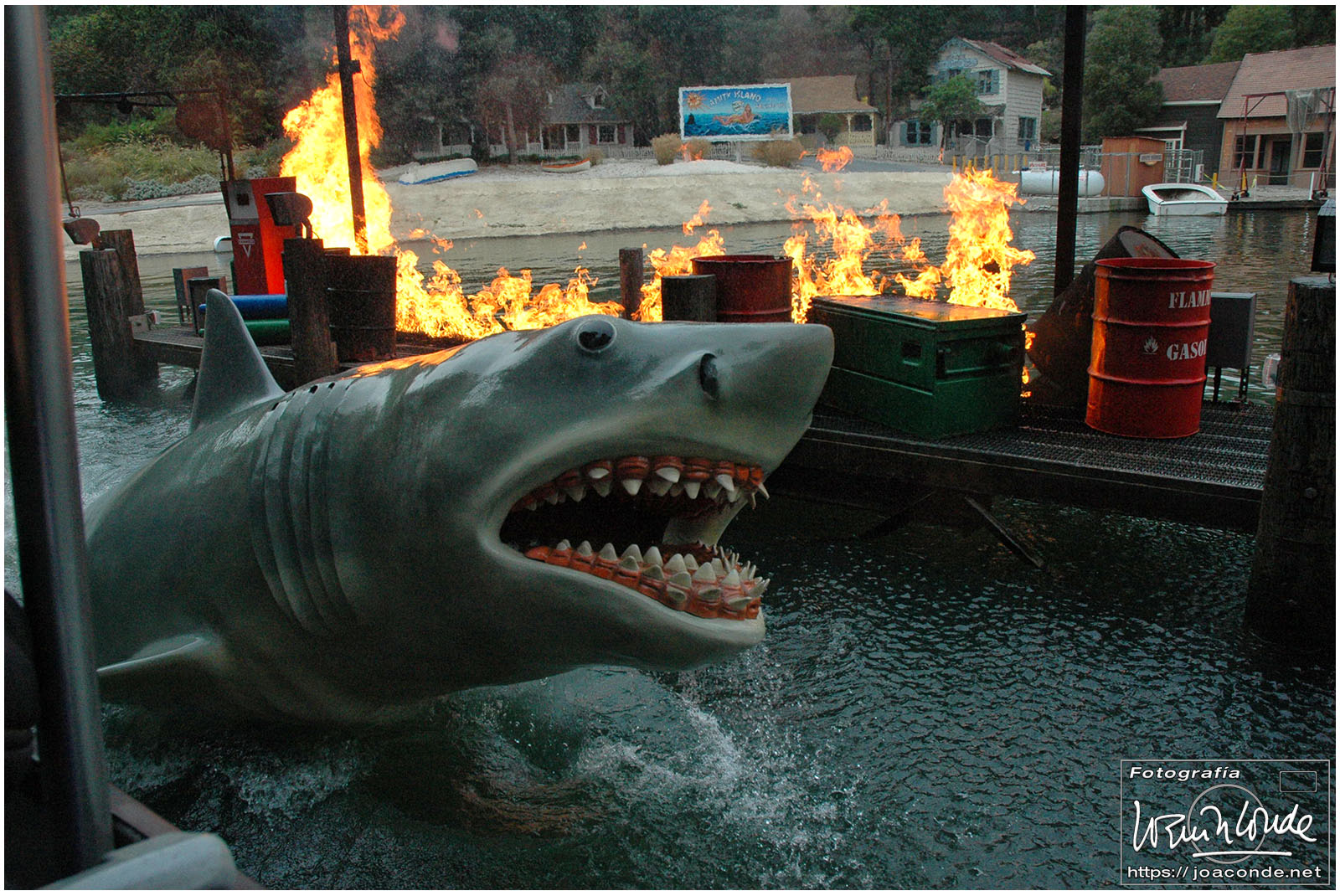 Para rematar el viaje habíamos añadido dos días extra al circuito. El jueves, John nos llevó en su deportivo «europeo» al valle de San Fernando, donde estaban los Estudios Universal. Recorrimos escenarios y sets de rodaje de películas y series, nos movimos también en un trenecillo que nos acercaba a efectos especiales de todo tipo… Comimos como los Picapiedra y nos hicimos muchas fotos. Fue una visita muy interesante a la trastienda del séptimo arte.