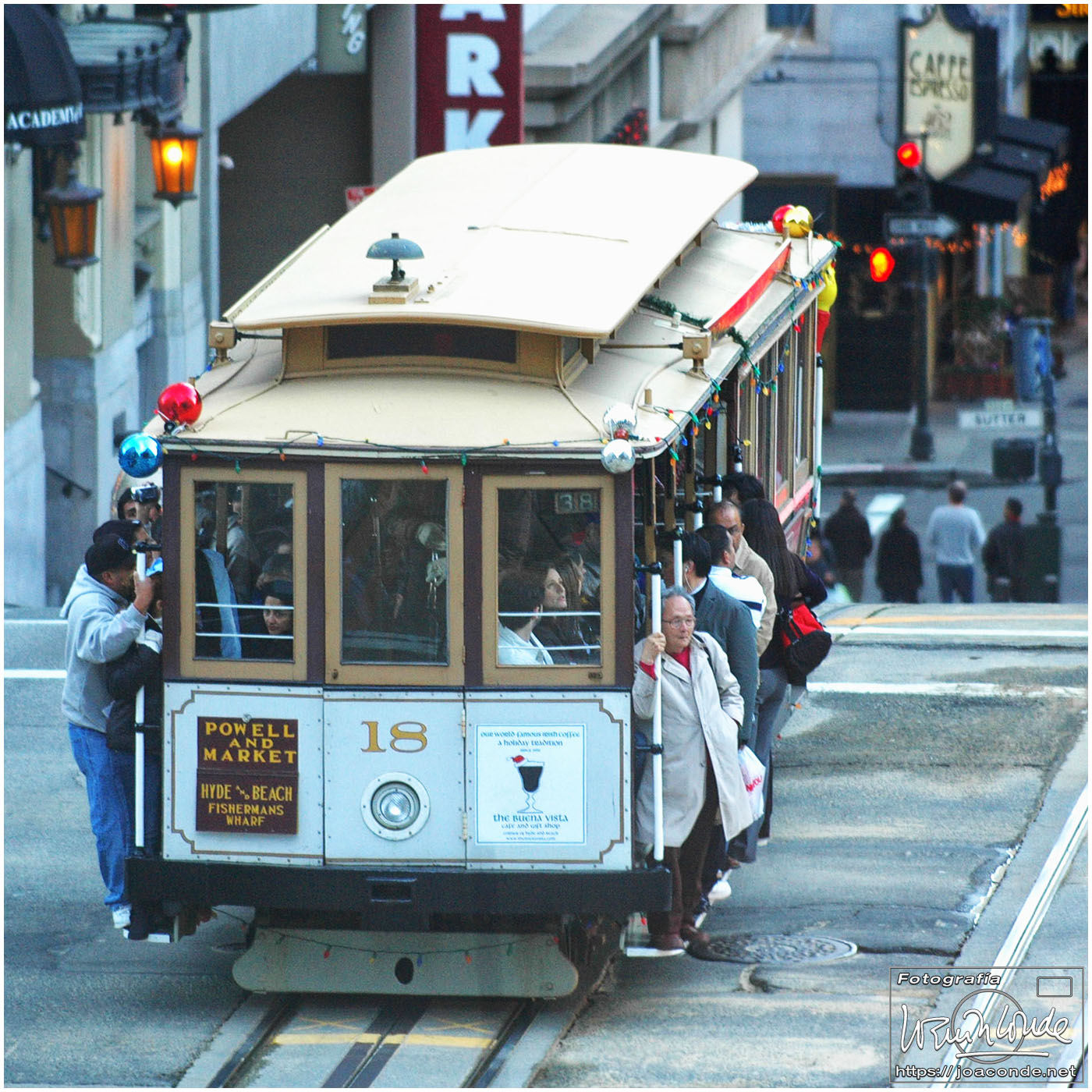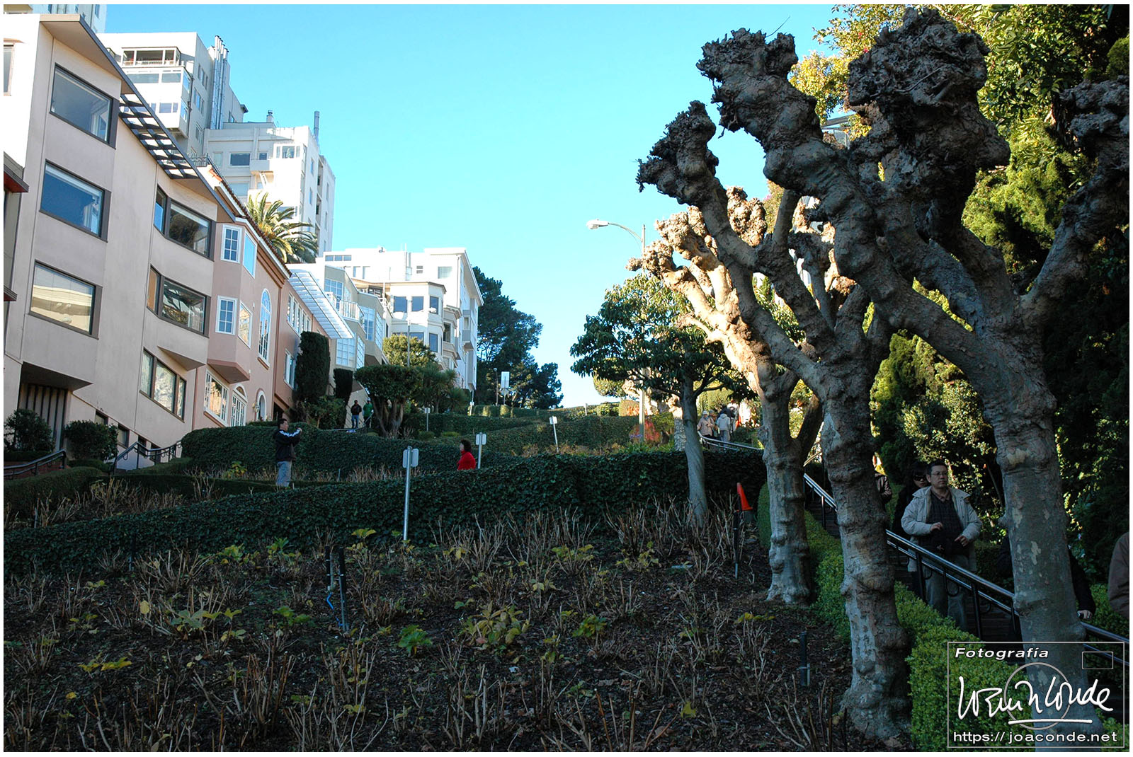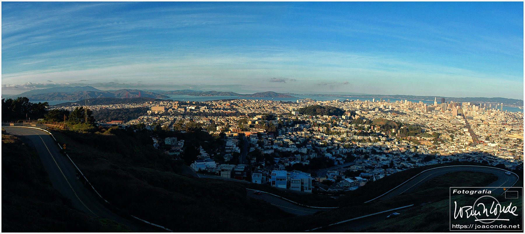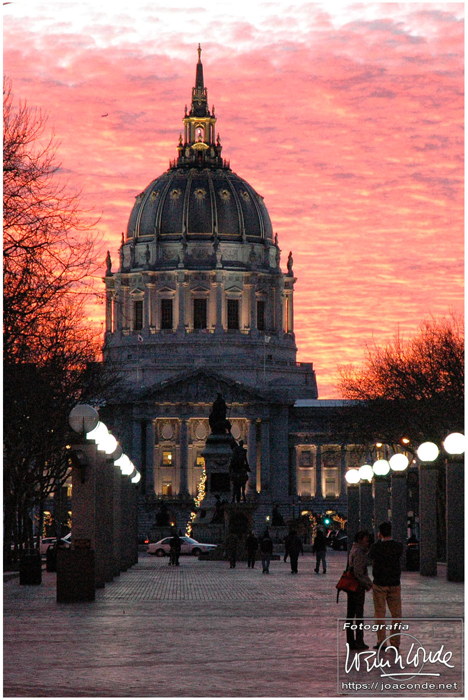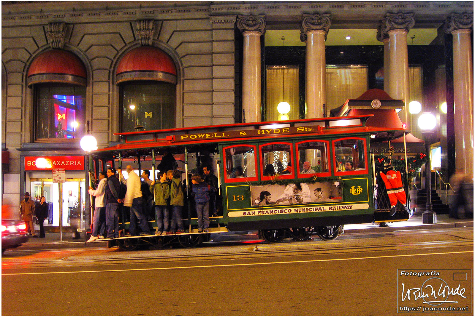 No hay palabras para definir el Golden Gate Bridge: cien mil vehículos diarios, casi tres kilómetros de largo y treinta metros de anchura… Más tarde hicimos un recorrido en bus por el ayuntamiento, la pagoda de la Paz, Santa María de la Asunción (obra de Moneo), The Upper Haight (con sus casas victorianas), calle Castro, Twin Peaks (con unas vistas espectaculares) y Lands End, donde fotografié el puente con las últimas luces. Para terminar, dimos un paseo por el centro con los alumbrados navideños.