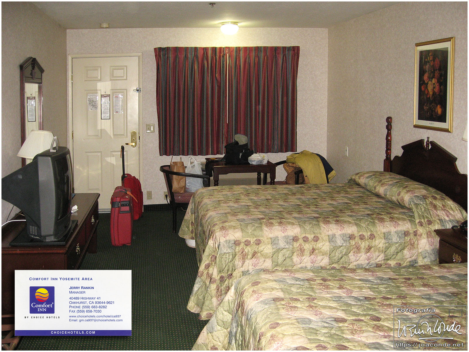 Salimos temprano del hotel; a pesar de la hora, había gente en el casino. Tomé las últimas fotos en Las Vegas, al Hard Rock y al New York, New York. Pasamos aquel el día en la carretera, desde Las Vegas hasta Yosemite, había unos 800 Km. Hicimos varias paradas técnicas, la más interesante en Barstow Station, un antiguo nudo de carreteras de la histórica ruta 66, en la que compramos algunos recuerdos. Era ya de noche cuando llegamos a Oakhurst, en el área de Yosemite.