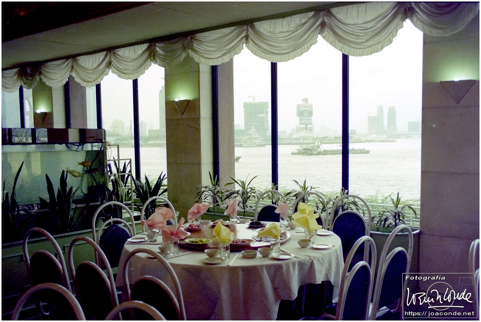 En Shanghái hacía mucho calor y llovía. Nada más llegar nos llevaron al Templo del Buda de Jade; antes de entrar compramos un paraguas por un dólar 😯. Después fuimos al hotel Radisson SAS Lansheng, una mole de 24 pisos. A la caída de la tarde, muertos de cansancio por el jet lag, asistimos a un espectáculo de acrobacia; resistí al sueño porque estaba entusiasmado haciendo fotos de aquellas piruetas imposibles.