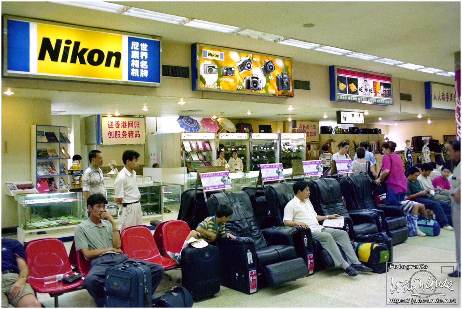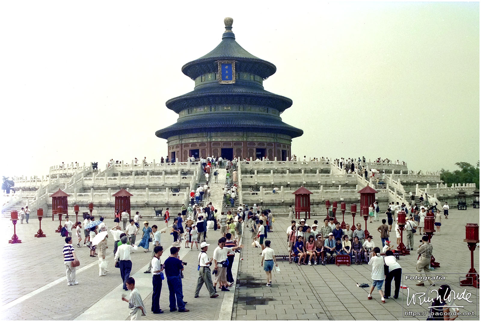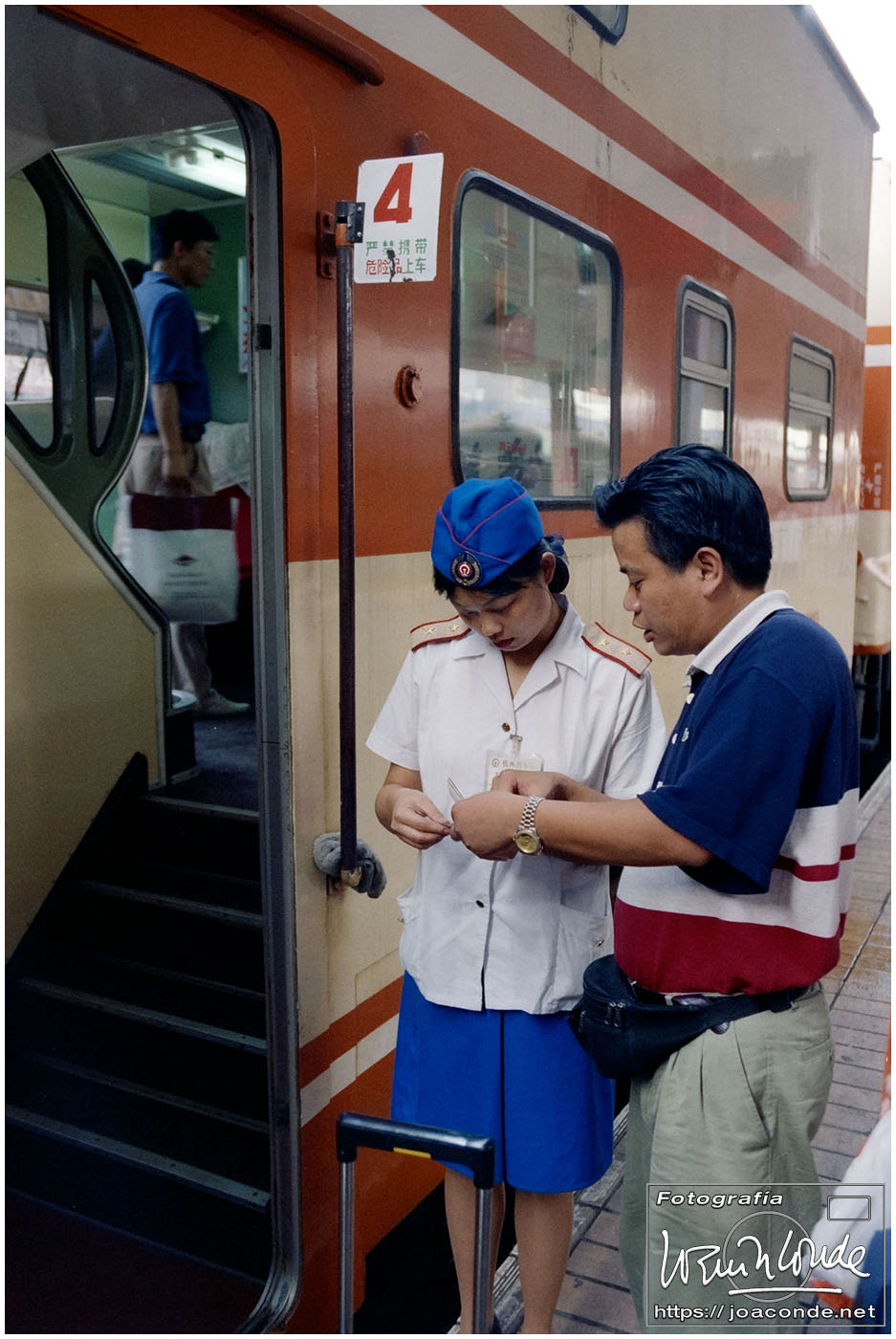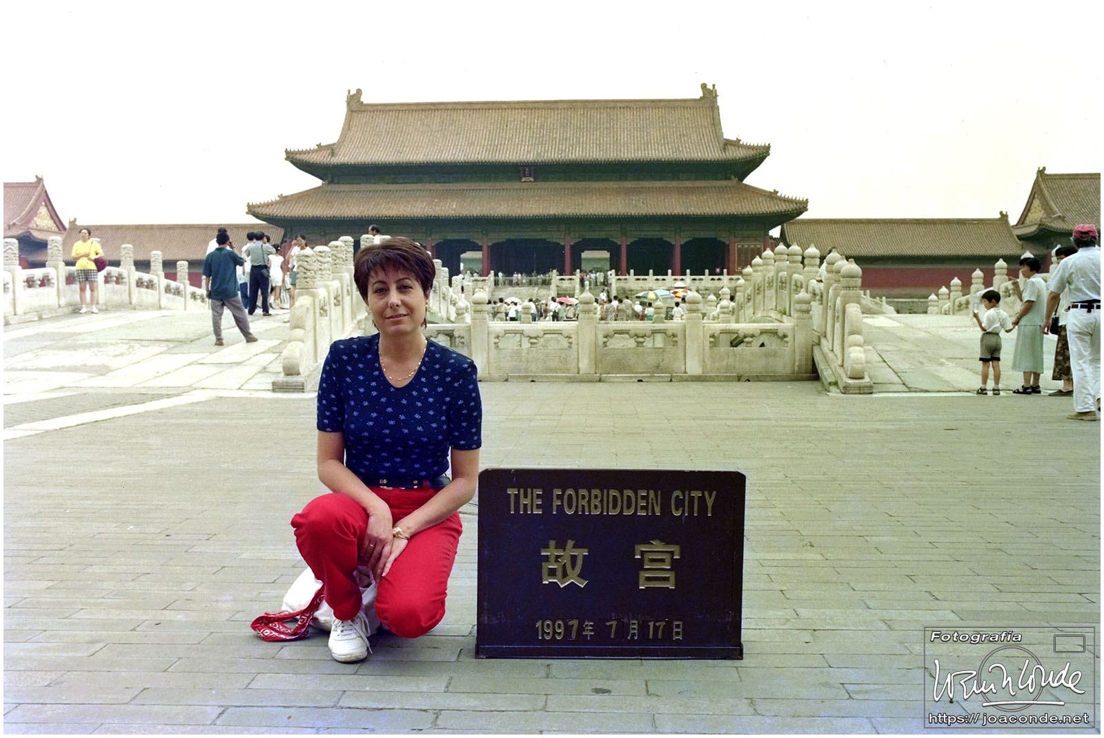 Viajamos a China en julio de 1997. En plena devolución de Hong Kong, se celebraba el Visit China ’97 y fuimos parte de los siete millones de extranjeros que llegamos aquel año. Era la primera vez que viajábamos a Asia y lo hicimos en un grupo organizado. Salimos de Madrid el día 9. El vuelo con China Eastern, que hizo escala en Bruselas, fue interminable; llegamos a Shanghai después de unas veinte horas. Llevábamos un visado colectivo, y en el tránsito por el aeropuerto de Pekín le pedimos a un funcionario que nos estampara algún sello en el pasaporte, para certificar nuestro paso por allí.
