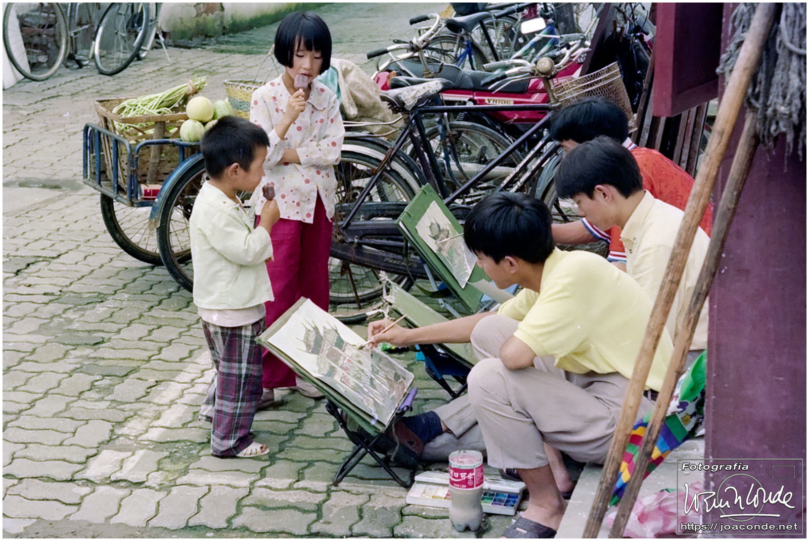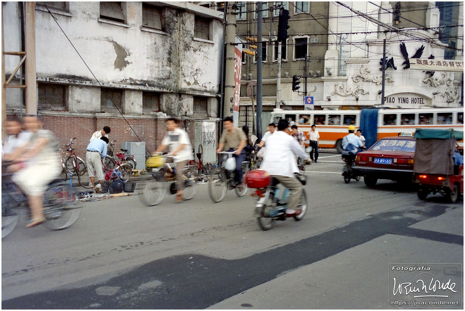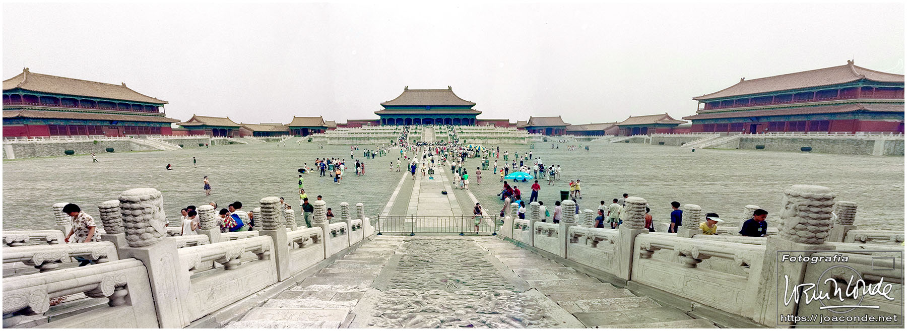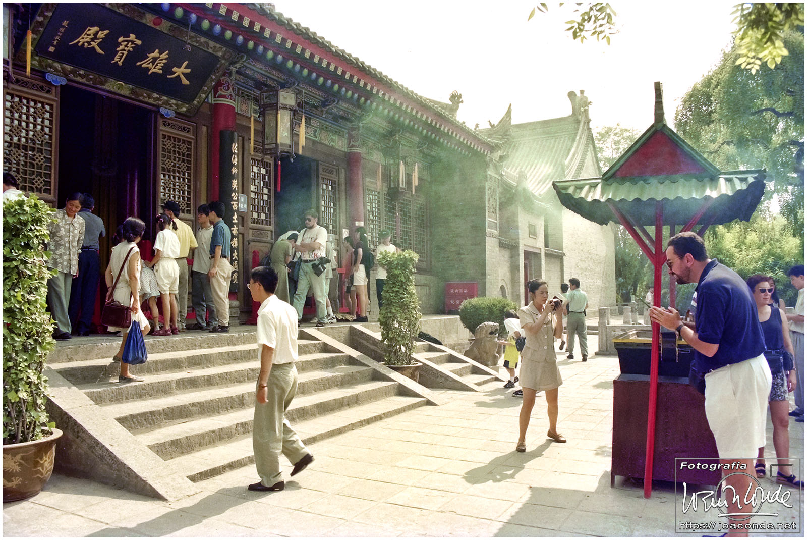 Viajamos a China en julio de 1997. En plena devolución de Hong Kong, se celebraba el Visit China ’97 y fuimos parte de los siete millones de extranjeros que llegamos aquel año. Era la primera vez que viajábamos a Asia y lo hicimos en un grupo organizado. Salimos de Madrid el día 9. El vuelo con China Eastern, que hizo escala en Bruselas, fue interminable; llegamos a Shanghai después de unas veinte horas. Llevábamos un visado colectivo, y en el tránsito por el aeropuerto de Pekín le pedimos a un funcionario que nos estampara algún sello en el pasaporte, para certificar nuestro paso por allí.