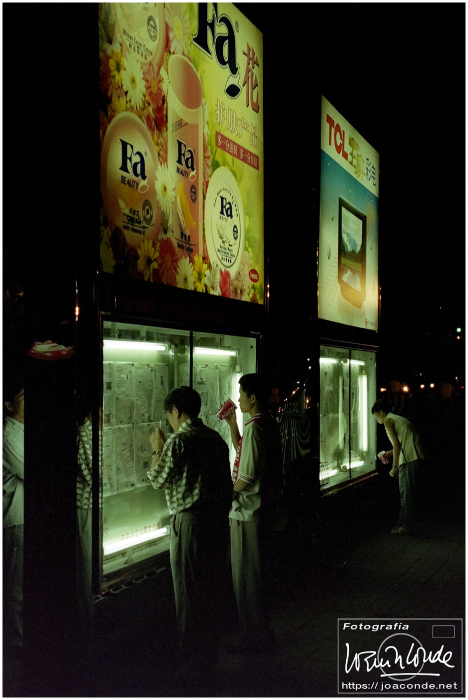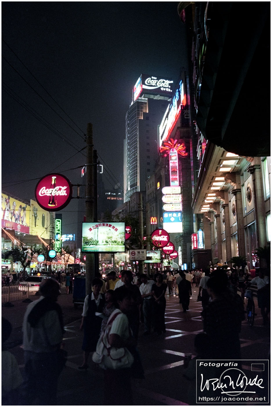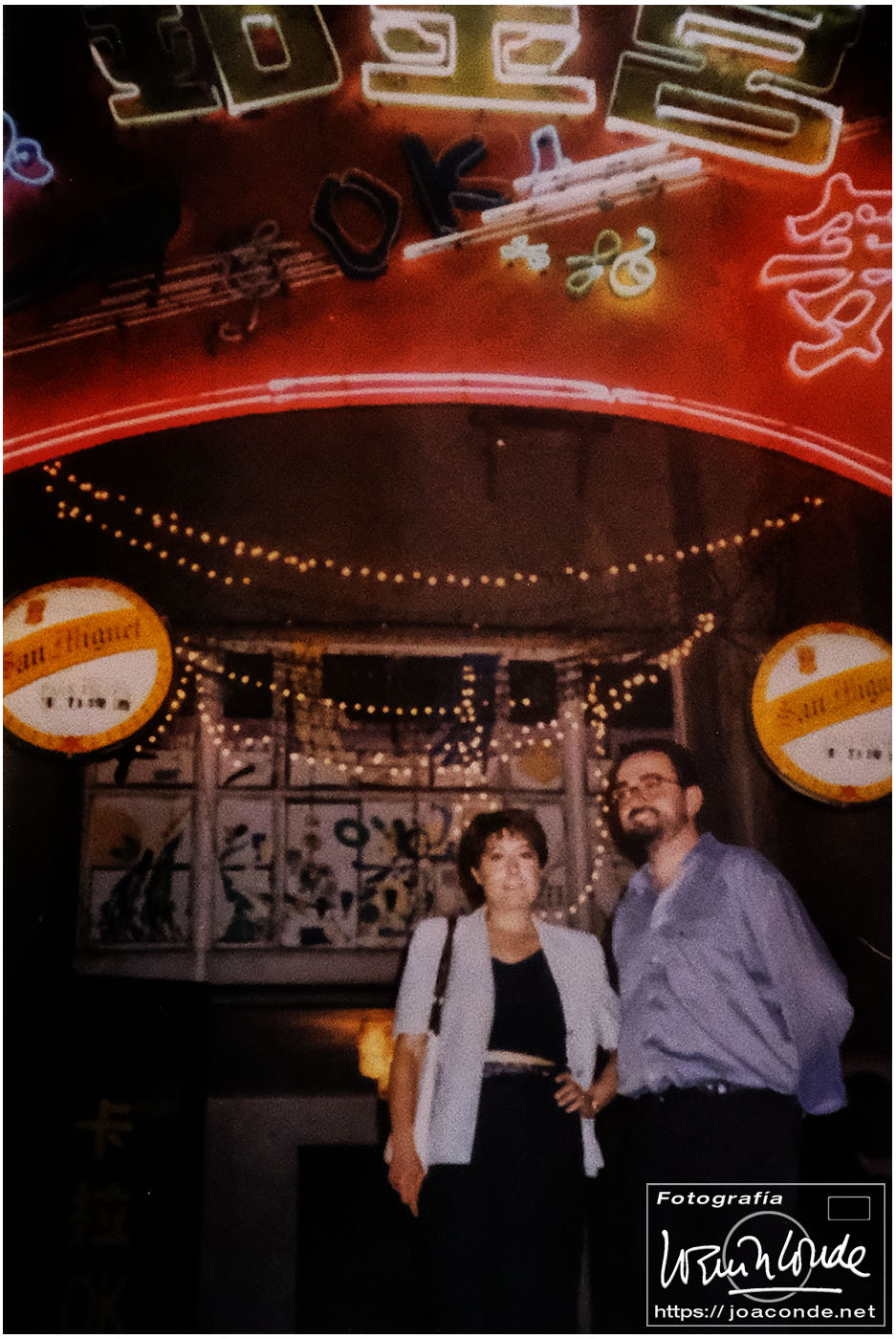 Como terminamos temprano, cogimos un taxi para ir al centro a buscar vida nocturna. En la enorme plaza, abarrotada por la tarde, no había un alma. Nos adentramos en un laberinto de calles —cada vez más estrechas— hasta que un jovencito nos señaló algo que parecía un parvulario y resultó ser… ¡un karaoke! Al fin acabamos en una sórdida discoteca tomando unas «San Miguel» y cantando con un laserdisc una canción de Julio Iglesias. Cuando le explicábamos a varios curiosos nuestro origen, con señas y dibujos, nadie se enteraba de donde venían estos extraterrestres. Por fin, el más espabilado de los chicos se llevó los índices a las sienes y girando la cabeza como un novillo dijo: «¡¡¡Ohhh SIBAAAAANIAAAA!!!»