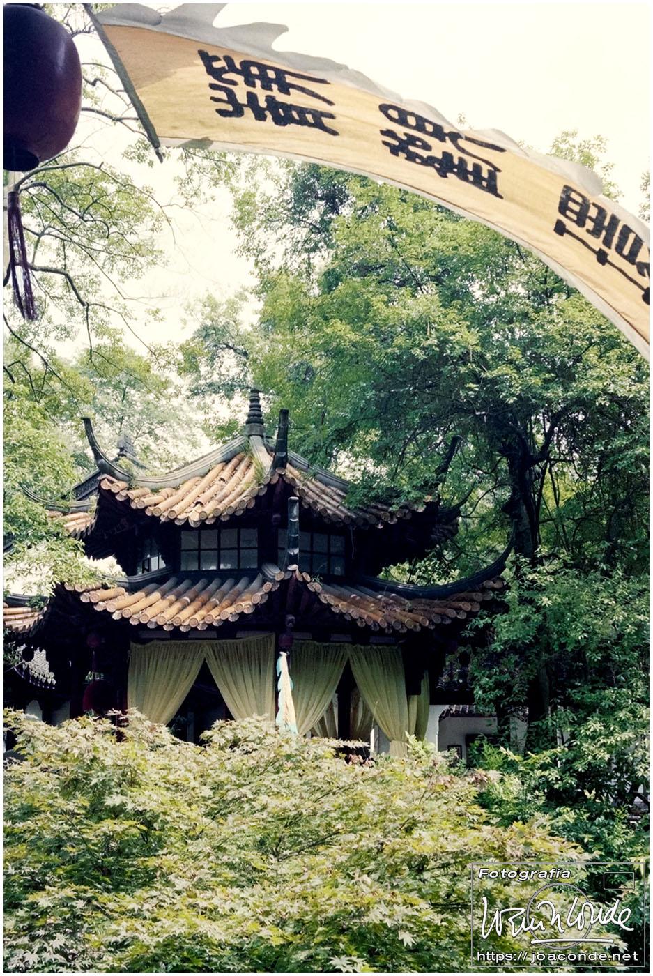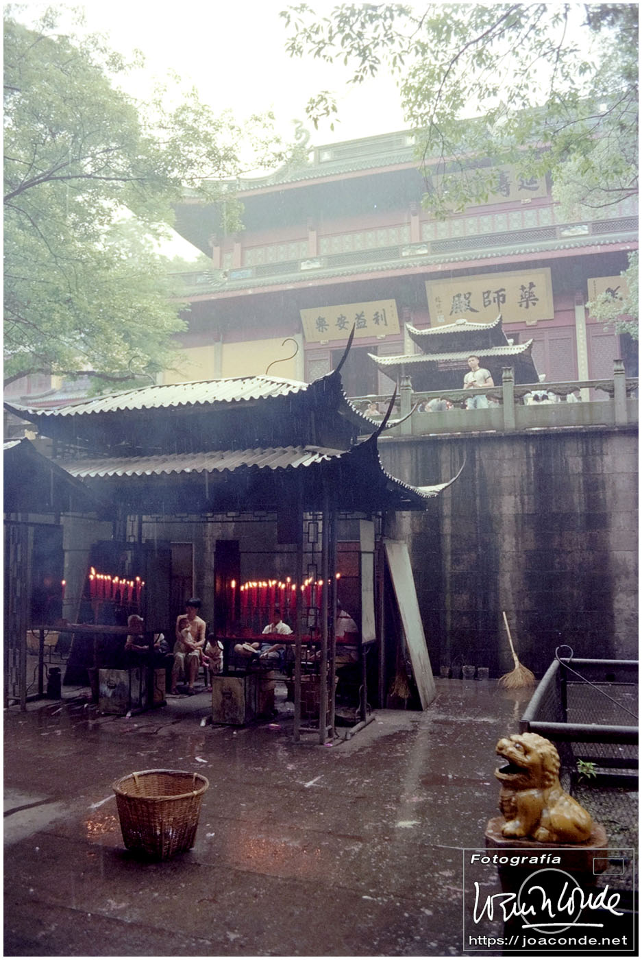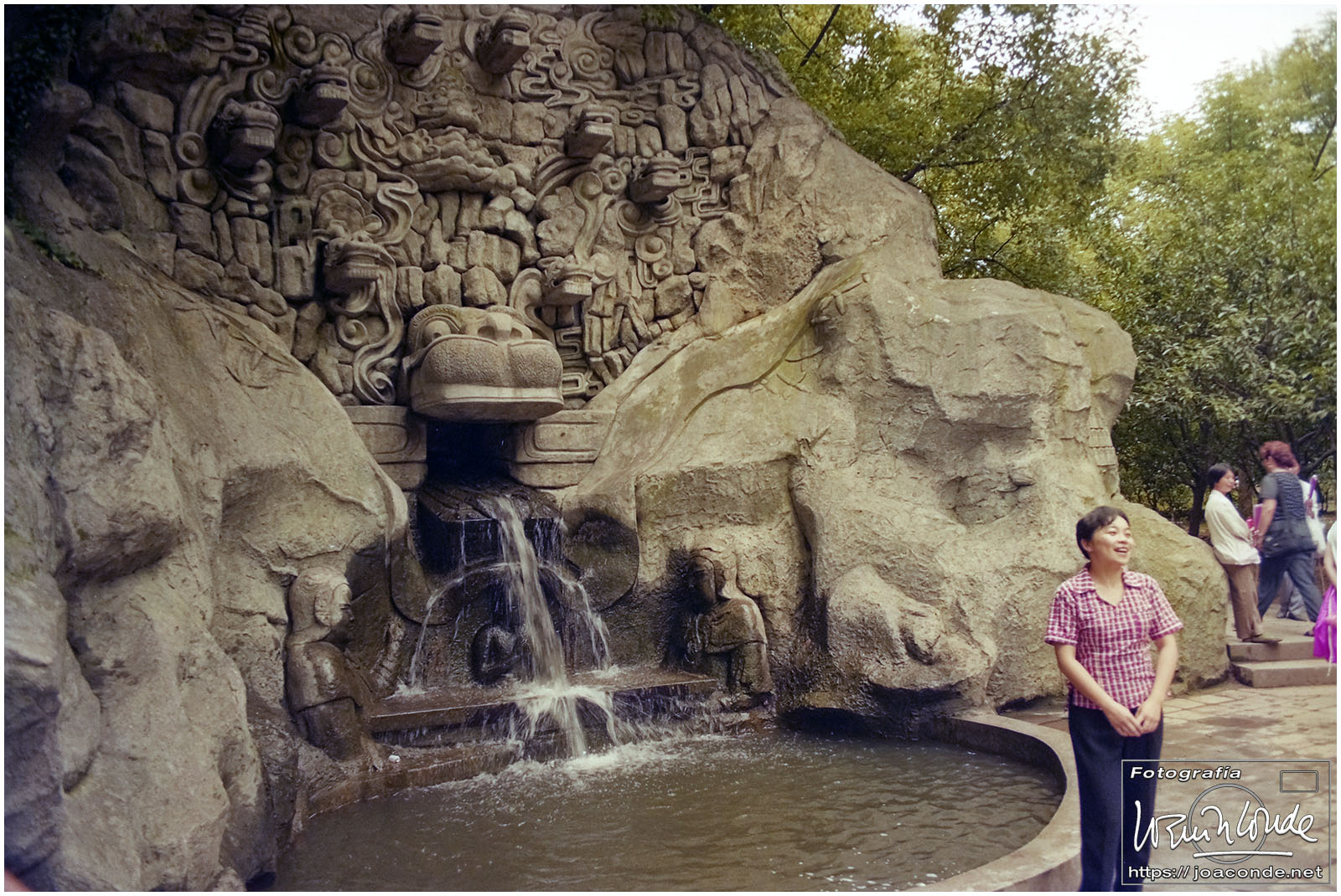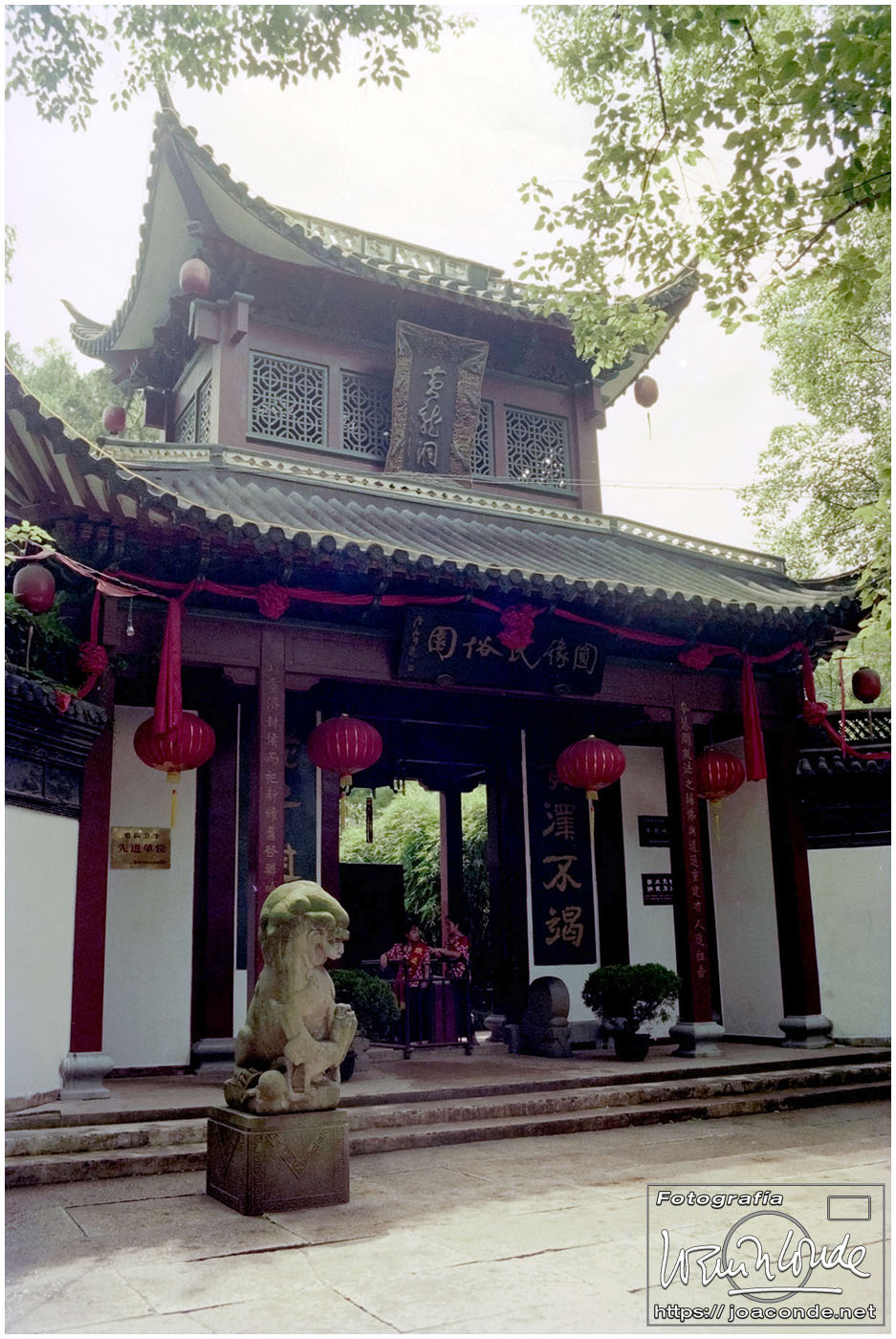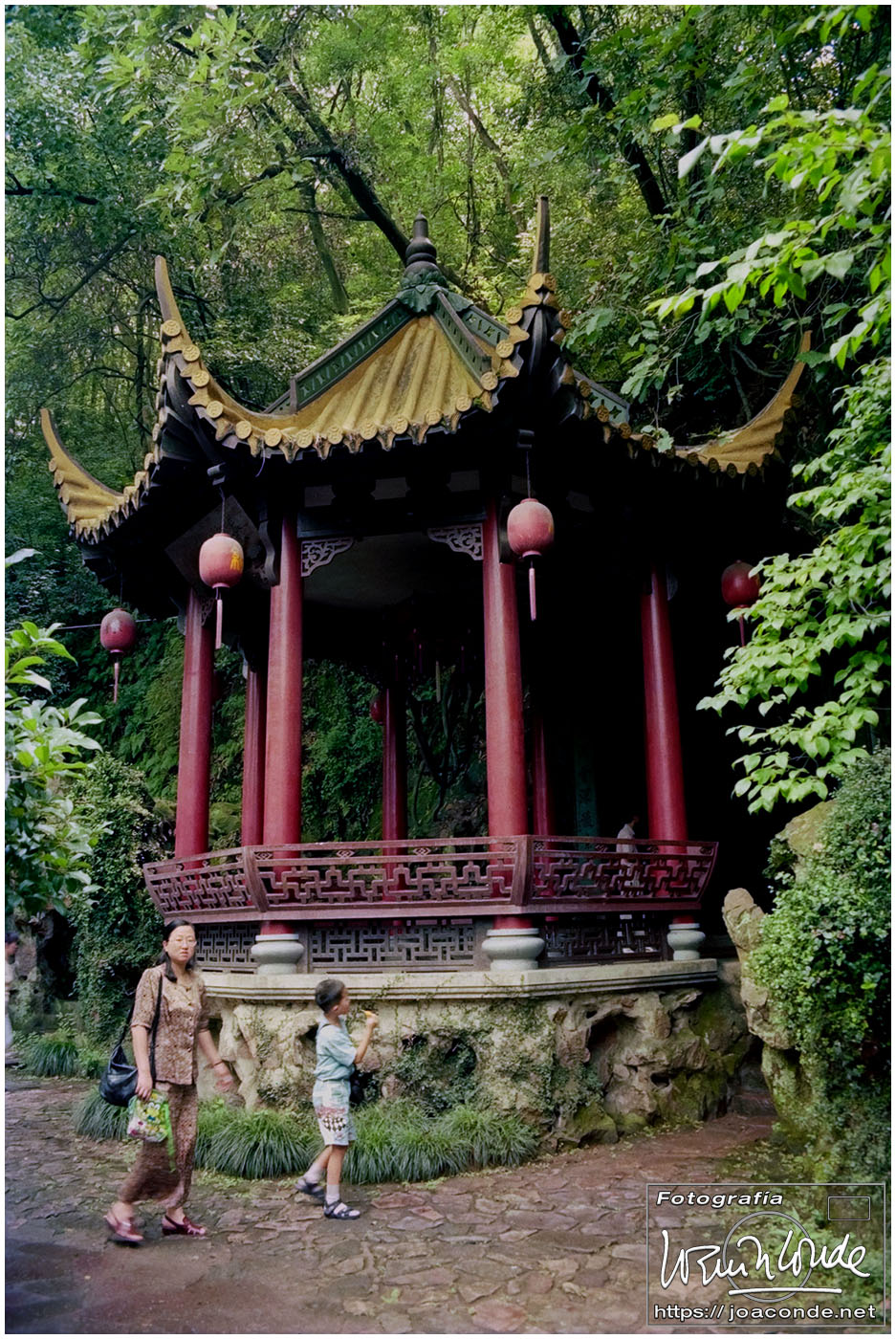 Sin duda, lo mejor de Hangzhou —y del viaje a China— fueron las dos visitas que hicimos aquella mañana. La primera fue un agradable paseo por la Colina Geling, en la que se reunían jubilados para bailar, jugar o pasear a sus pájaros; también había un escenario en el que vimos fragmentos de una ópera china. Llevaba unos rollos de Ilford HP-5, y me despaché bien… La segunda fue el Zoo de Hangzhou, donde me dejaron entrar en la jaula de una panda y retratarme con ella; luego me dijeron que acababa de quedarse sin su pareja y podía haber estado violenta conmigo 😅. A las cuatro de la tarde tomamos un vuelo a Xi-an, nuestra siguiente etapa.