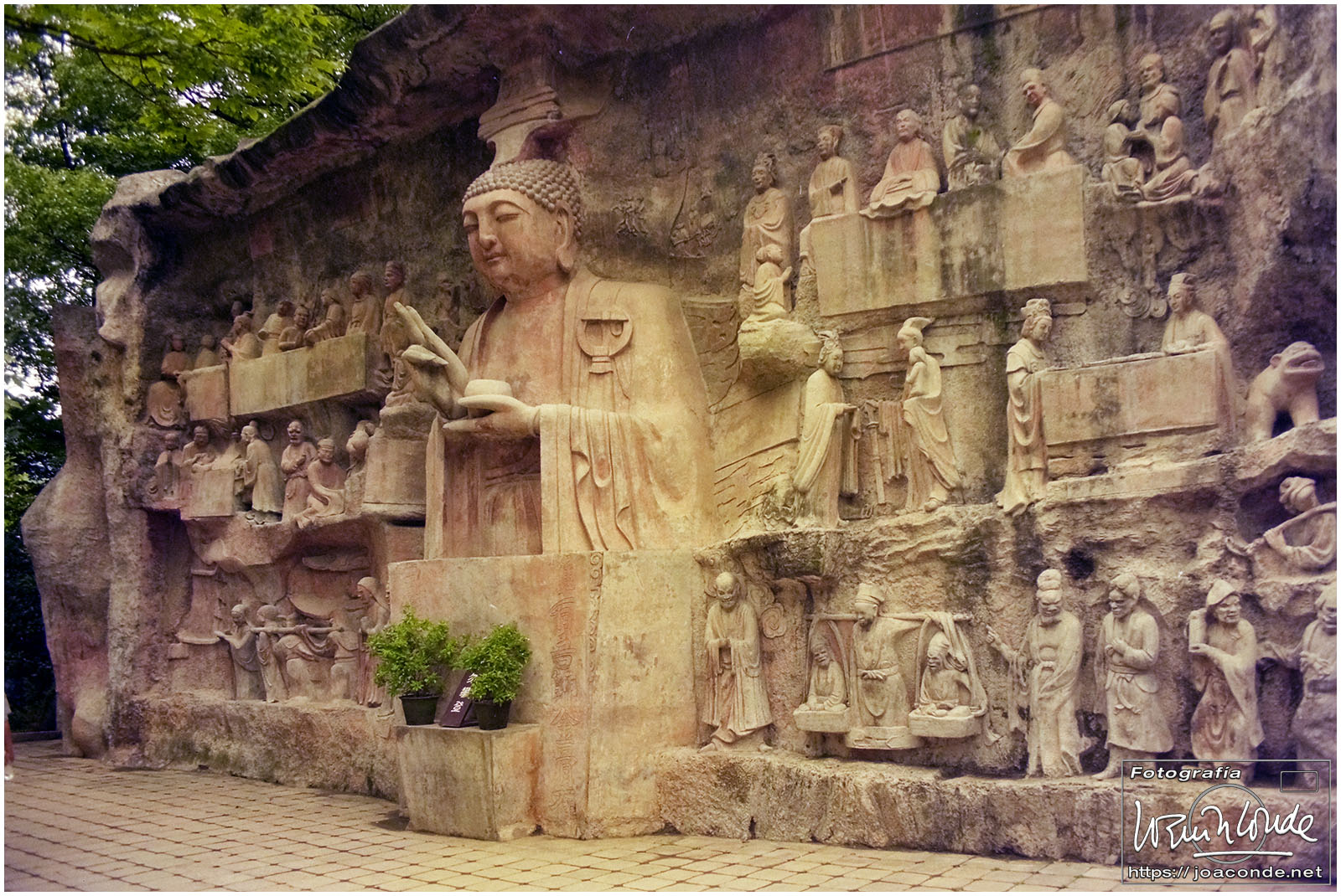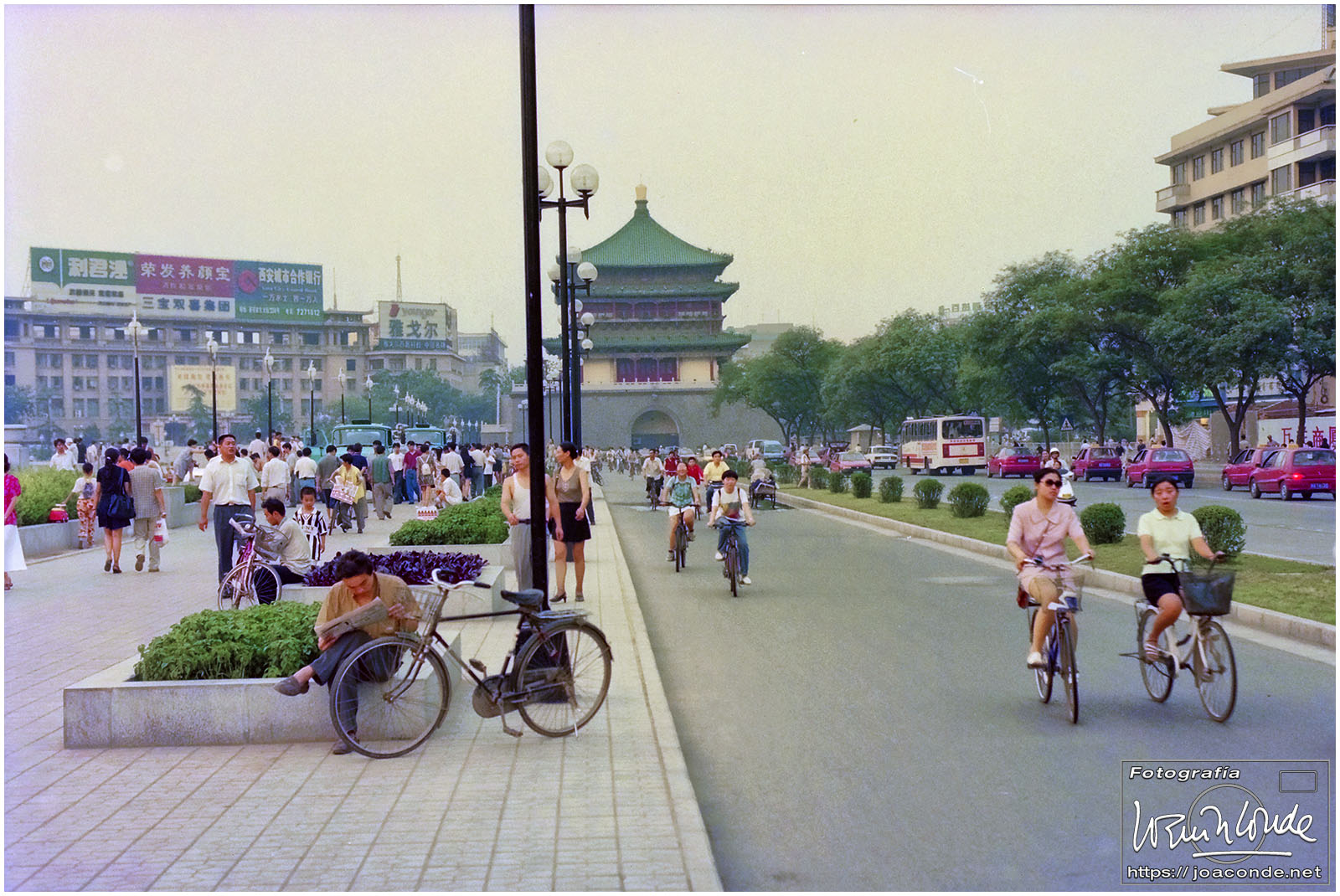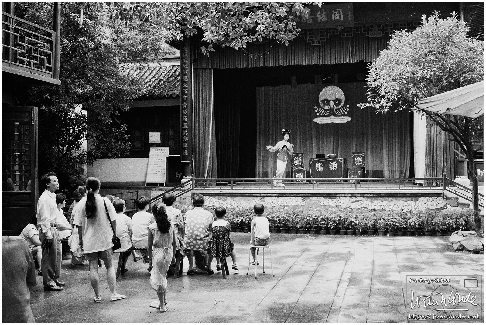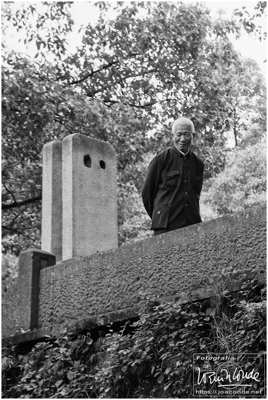Sin duda, lo mejor de Hangzhou —y del viaje a China— fueron las dos visitas que hicimos aquella mañana. La primera fue un agradable paseo por la Colina Geling, en la que se reunían jubilados para bailar, jugar o pasear a sus pájaros; también había un escenario en el que vimos fragmentos de una ópera china. Llevaba unos rollos de Ilford HP-5, y me despaché bien… La segunda fue el Zoo de Hangzhou, donde me dejaron entrar en la jaula de una panda y retratarme con ella; luego me dijeron que acababa de quedarse sin su pareja y podía haber estado violenta conmigo 😅. A las cuatro de la tarde tomamos un vuelo a Xi-an, nuestra siguiente etapa.