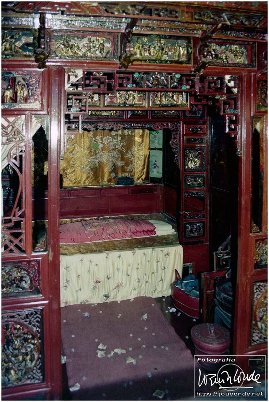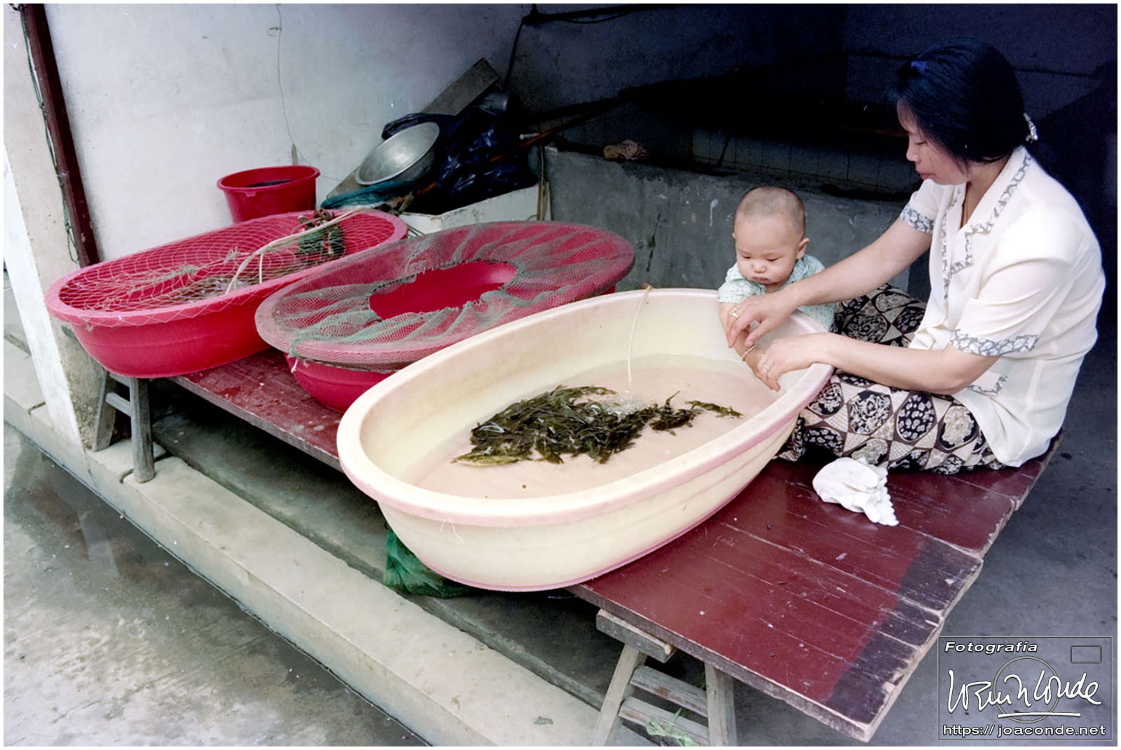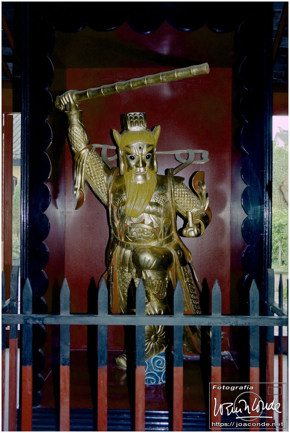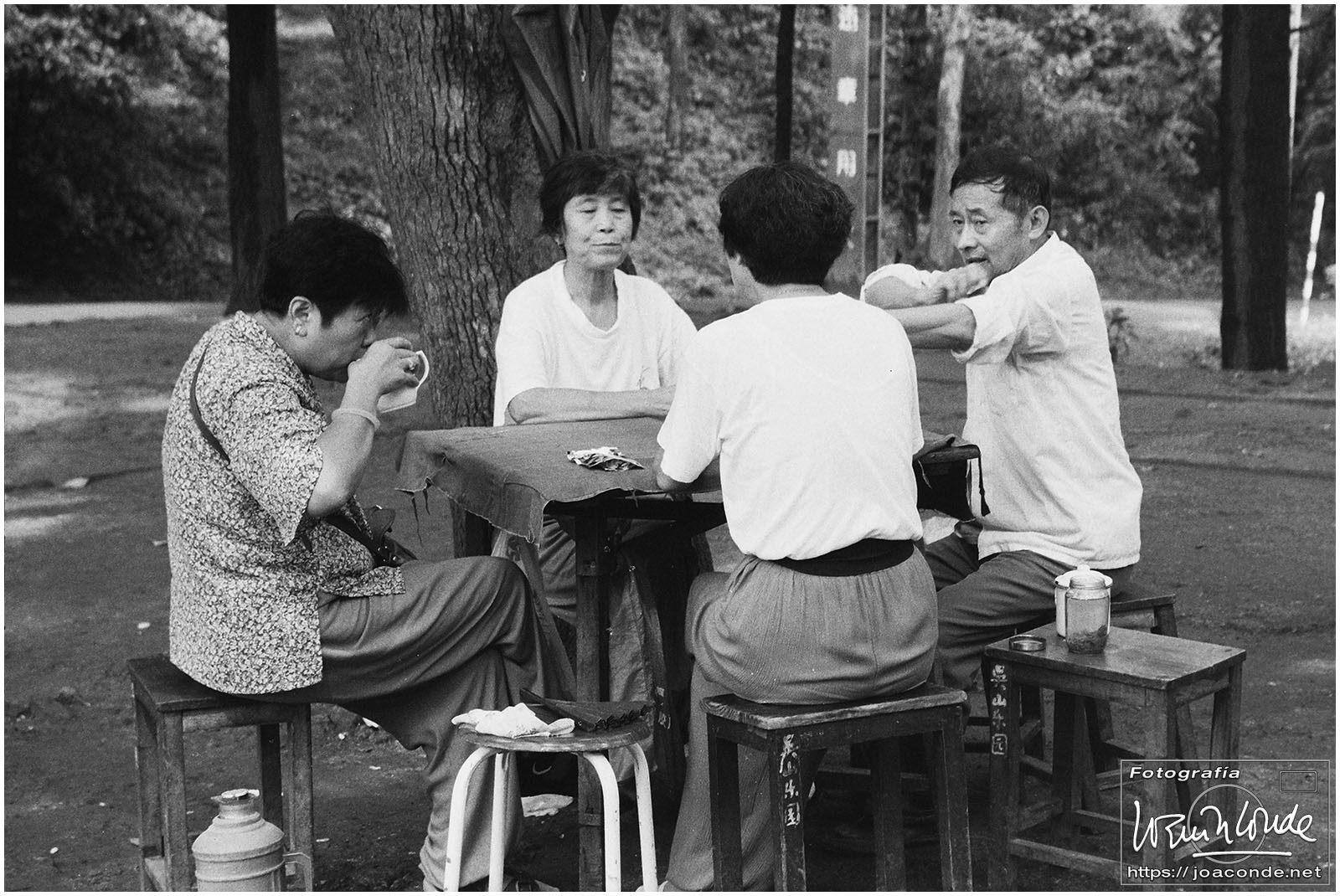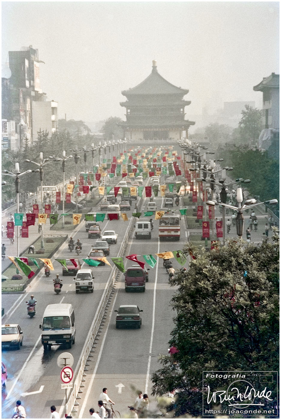 Sin duda, lo mejor de Hangzhou —y del viaje a China— fueron las dos visitas que hicimos aquella mañana. La primera fue un agradable paseo por la Colina Geling, en la que se reunían jubilados para bailar, jugar o pasear a sus pájaros; también había un escenario en el que vimos fragmentos de una ópera china. Llevaba unos rollos de Ilford HP-5, y me despaché bien… La segunda fue el Zoo de Hangzhou, donde me dejaron entrar en la jaula de una panda y retratarme con ella; luego me dijeron que acababa de quedarse sin su pareja y podía haber estado violenta conmigo 😅. A las cuatro de la tarde tomamos un vuelo a Xi-an, nuestra siguiente etapa.