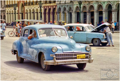 Por la tarde volvíamos al hotel paseando por el Malecón habanero. Una chica caminaba por el pretil en un contraluz perfecto; solo me dio tiempo a hacer una foto. En segundos comenzó el diluvio. Un joven nos rescató en un triciclo y nos llevó hasta cerca del hotel mientras caían chuzos de punta. Antes de llegar escampó y la policía detuvo el carrillo; el muchacho no tenía licencia y le echaron una bronca; nosotros seguimos unos metros caminando hasta el Cohiba.