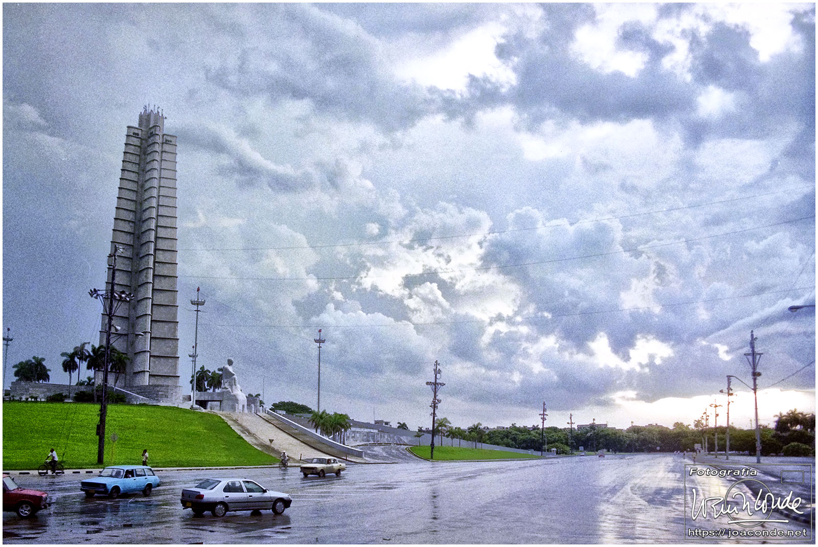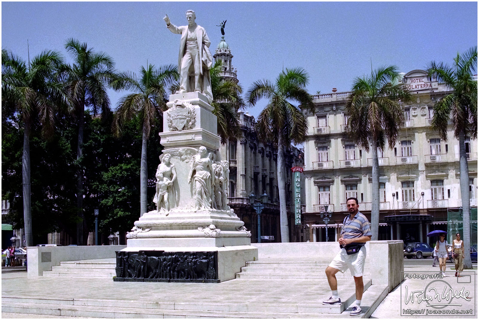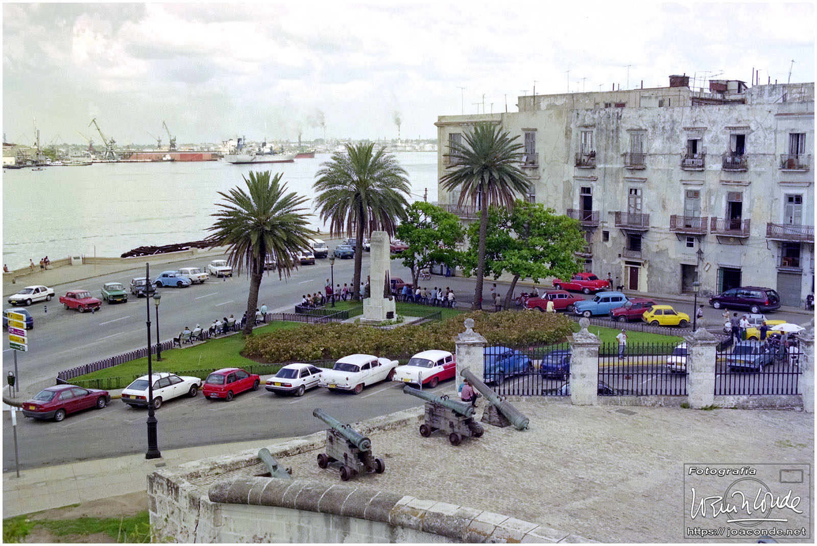 El primer día dimos una vuelta por la Plaza de la Revolución, con la silueta del Che y el monumento a José Martí (el punto más alto de La Habana). Después caminamos hasta Santa Catalina para visitar la factoría artesanal de Ron Legendario; allí con gran parsimonia, media docena de operarias ponían uno a uno los precintos a las botellas. Seguimos la ruta por Centro Habana, el Capitolio, Plaza Vieja, la Catedral… Tomamos un refrescante guarapo de caña, disfrutando del son cubano y luego comimos en un paladar. Por la tarde estuvimos en el Castillo de la Real Fuerza con su «Giraldilla» y regresamos bastante cansados al hotel, antes de que cayera el chaparrón. Había quedado con Amparo, maestra de una escuela con los que mi clase mantenía correspondencia, para entregarle unos paquetes de material escolar; tardó porque la policía no la dejaba acercarse al hotel, creyendo que era una jinetera.