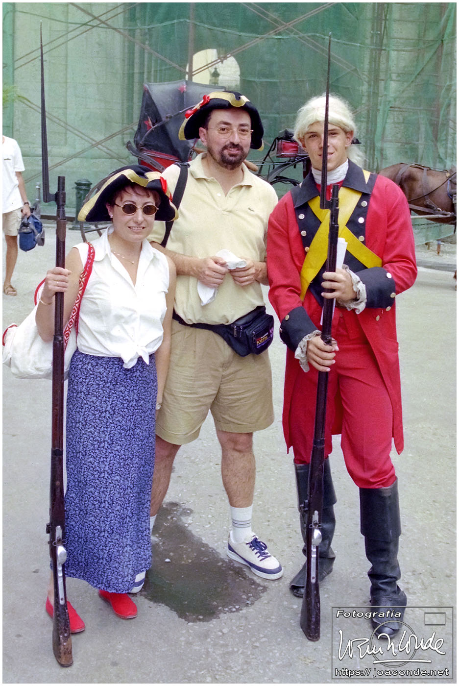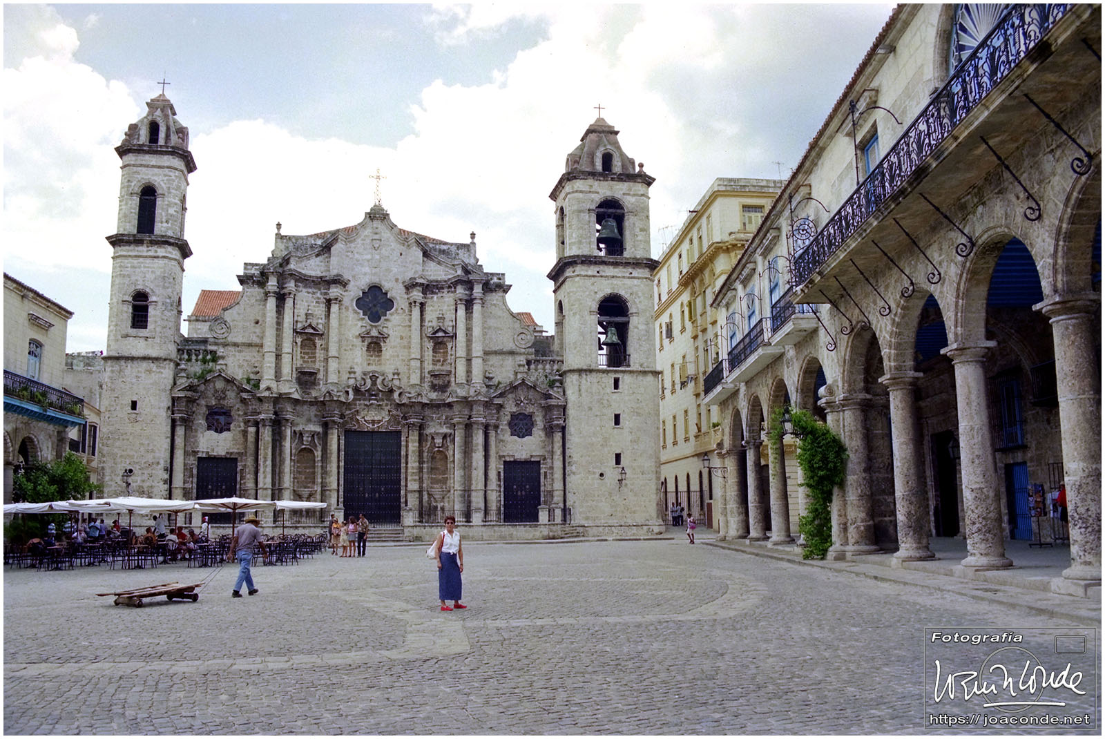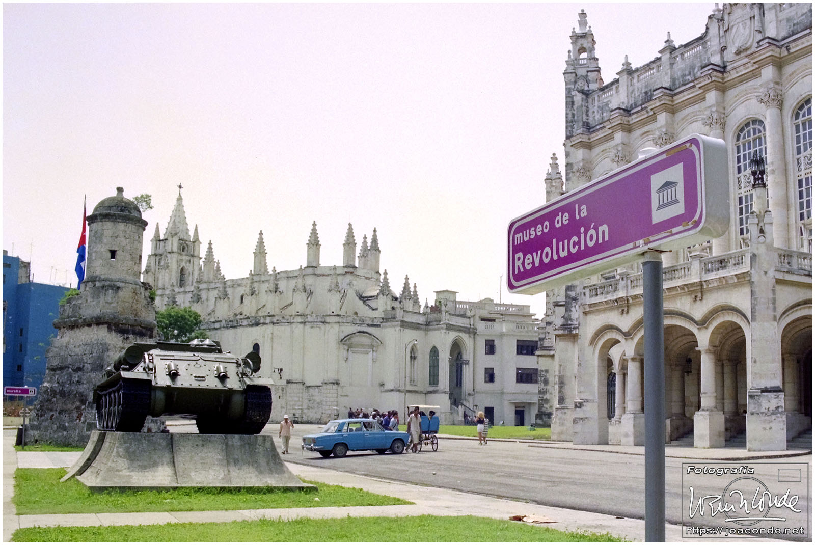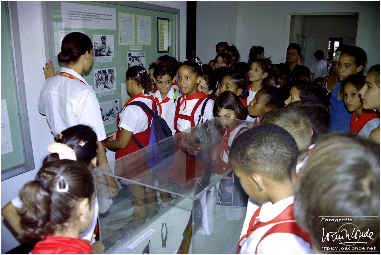 El primer día dimos una vuelta por la Plaza de la Revolución, con la silueta del Che y el monumento a José Martí (el punto más alto de La Habana). Después caminamos hasta Santa Catalina para visitar la factoría artesanal de Ron Legendario; allí con gran parsimonia, media docena de operarias ponían uno a uno los precintos a las botellas. Seguimos la ruta por Centro Habana, el Capitolio, Plaza Vieja, la Catedral… Tomamos un refrescante guarapo de caña, disfrutando del son cubano y luego comimos en un paladar. Por la tarde estuvimos en el Castillo de la Real Fuerza con su «Giraldilla» y regresamos bastante cansados al hotel, antes de que cayera el chaparrón. Había quedado con Amparo, maestra de una escuela con los que mi clase mantenía correspondencia, para entregarle unos paquetes de material escolar; tardó porque la policía no la dejaba acercarse al hotel, creyendo que era una jinetera.