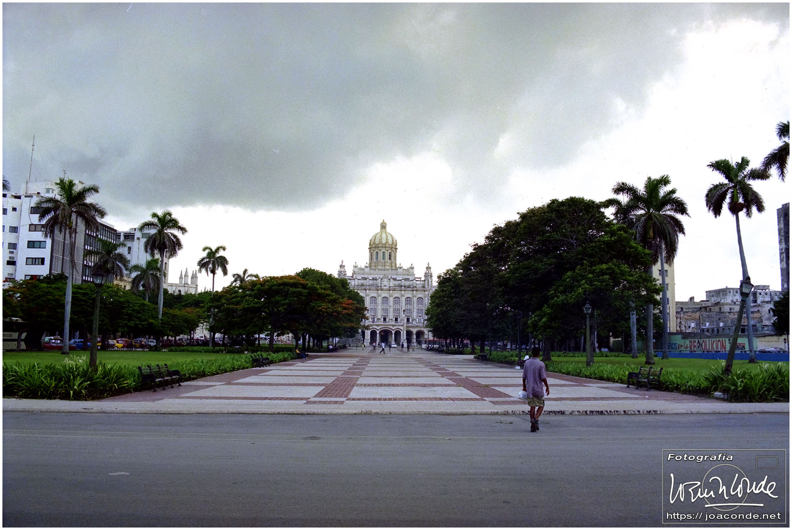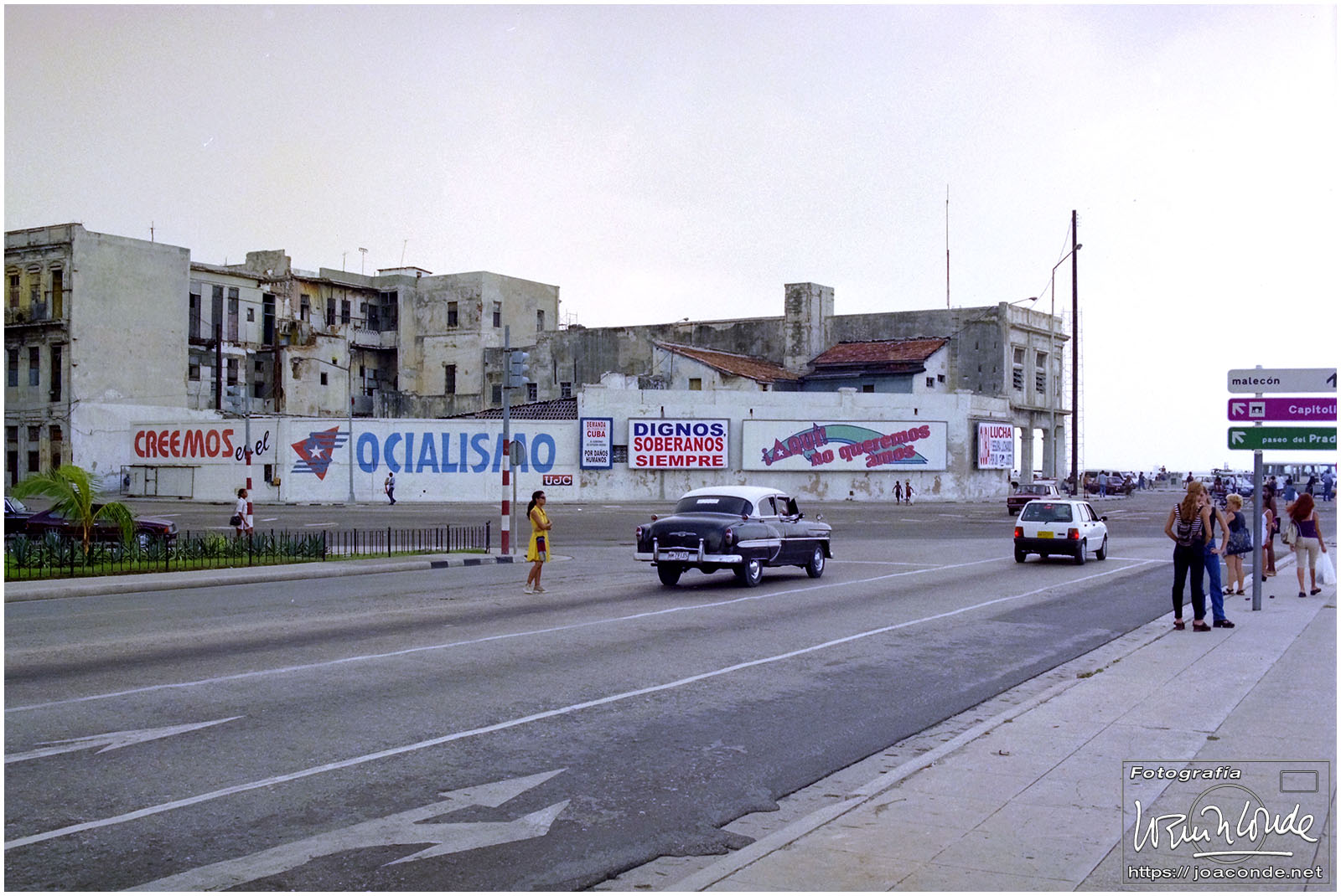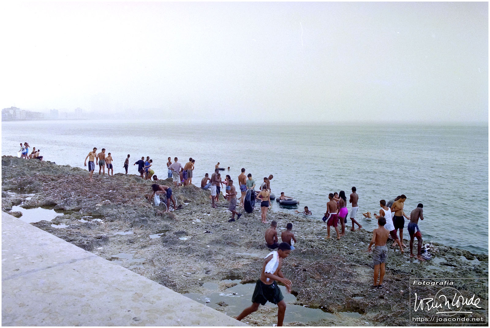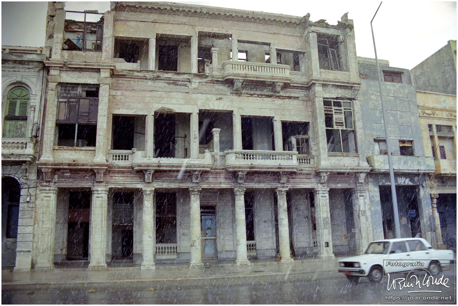Por la tarde volvíamos al hotel paseando por el Malecón habanero. Una chica caminaba por el pretil en un contraluz perfecto; solo me dio tiempo a hacer una foto. En segundos comenzó el diluvio. Un joven nos rescató en un triciclo y nos llevó hasta cerca del hotel mientras caían chuzos de punta. Antes de llegar escampó y la policía detuvo el carrillo; el muchacho no tenía licencia y le echaron una bronca; nosotros seguimos unos metros caminando hasta el Cohiba.