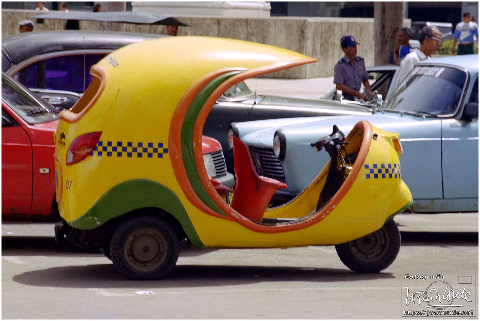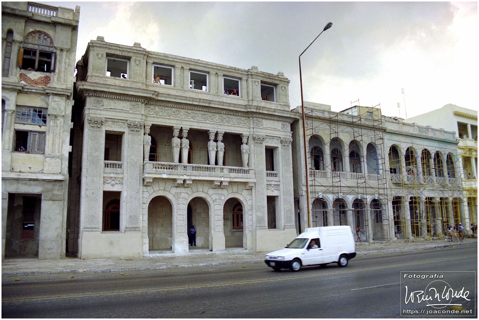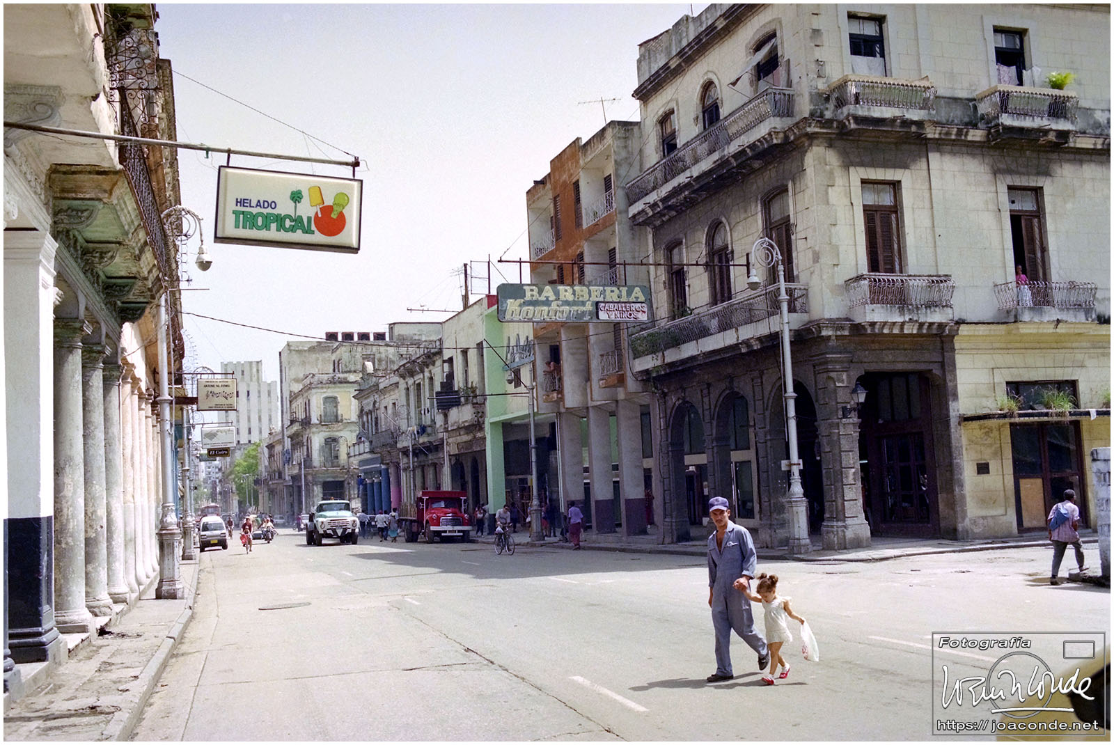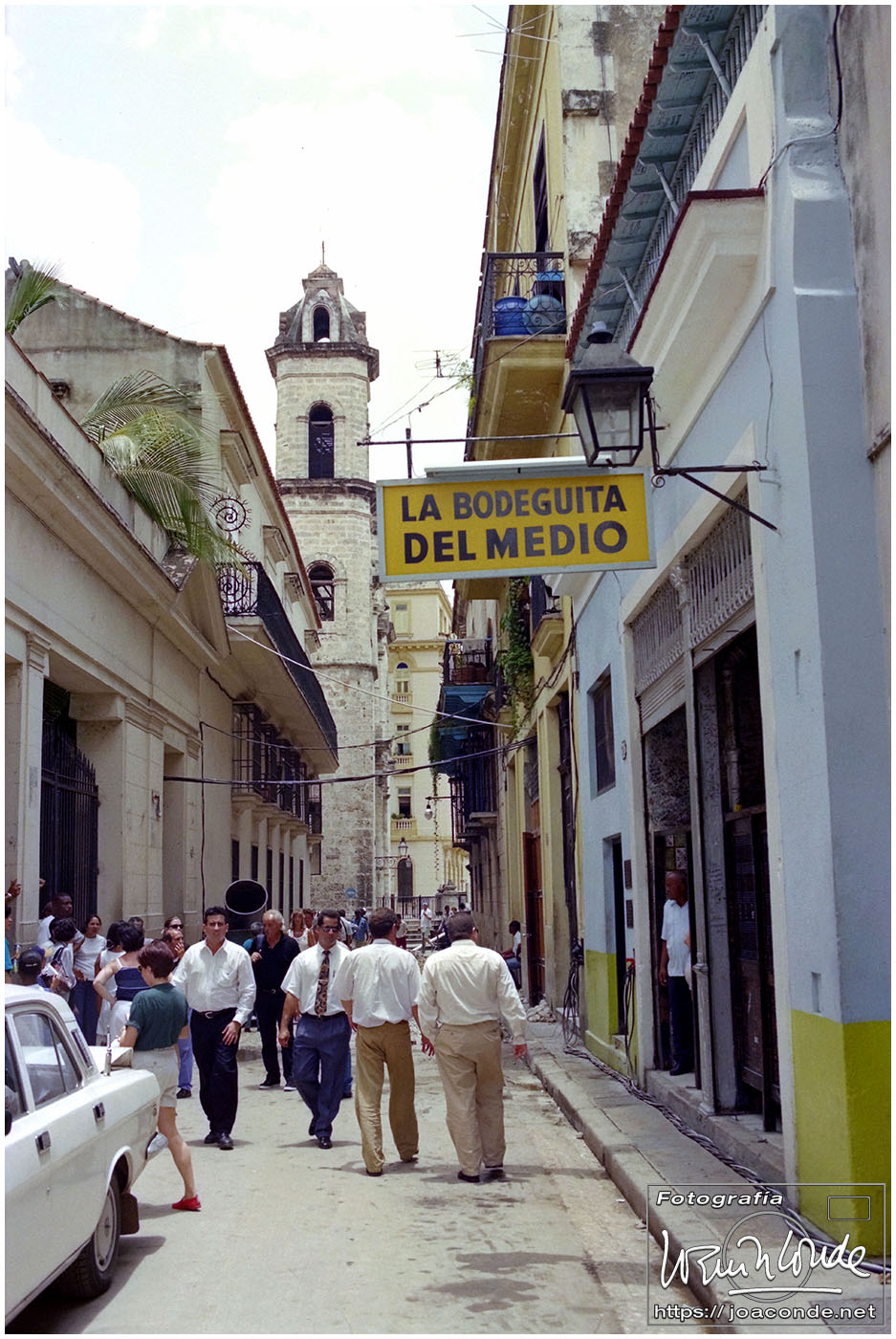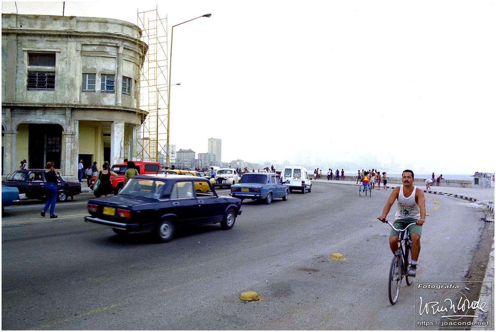 Por la tarde volvíamos al hotel paseando por el Malecón habanero. Una chica caminaba por el pretil en un contraluz perfecto; solo me dio tiempo a hacer una foto. En segundos comenzó el diluvio. Un joven nos rescató en un triciclo y nos llevó hasta cerca del hotel mientras caían chuzos de punta. Antes de llegar escampó y la policía detuvo el carrillo; el muchacho no tenía licencia y le echaron una bronca; nosotros seguimos unos metros caminando hasta el Cohiba.