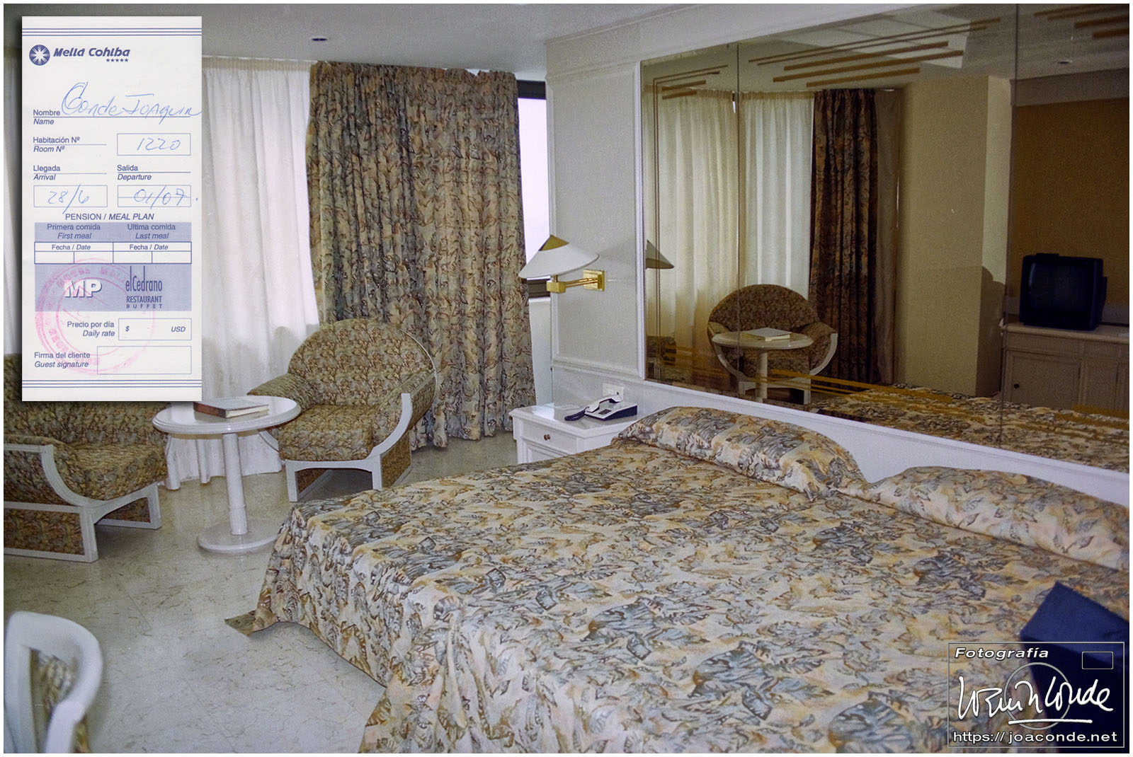 Del 28 de junio al 6 de julio de 1999 estuvimos en Cuba. De aquel viaje me quedaron recuerdos agridulces —mucho de lo que vimos no me gustó nada— incluso algunos detalles me partieron el alma 😢. Volamos con Air Europa y al llegar llovía —todas las tardes llovía un poco en el trópico— y nos trasladamos al Meliá Cohiba, una mole entre Vedado y Miramar.