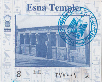 Continuamos navegando hacia Luxor, solo seis pasajeros: dos señoras catalanas, el guía y su mujer (que estaban de luna de miel), Pilar y yo. Desembarcamos para visitar el Templo de Esna, dedicado al dios Jnum. Solo quedaba en pie la sala hipóstila, con columnas de trece metros. Después, atravesamos el mercado y volvimos al barco. Solo estábamos a una exclusa de Luxor, donde llegaríamos de madrugada.