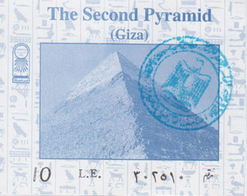 Compré la entrada para la Pirámide de Jafra (Kefrén) pero solo pude bajar unos metros por la diminuta rampa. En la rampa hacía un calor sofocante y tenía que ir sentado, arrastrándome y tirando del bolso… así que desistí. Hicimos fotos en la Gran Esfinge y nos refrescamos en una galería, donde compramos un papiro. Después volvimos al hotel, desde donde se seguían contemplando las moles de piedra. A la caída de la tarde dimos un agradable paseo por los alrededores.