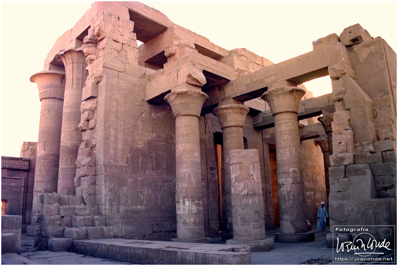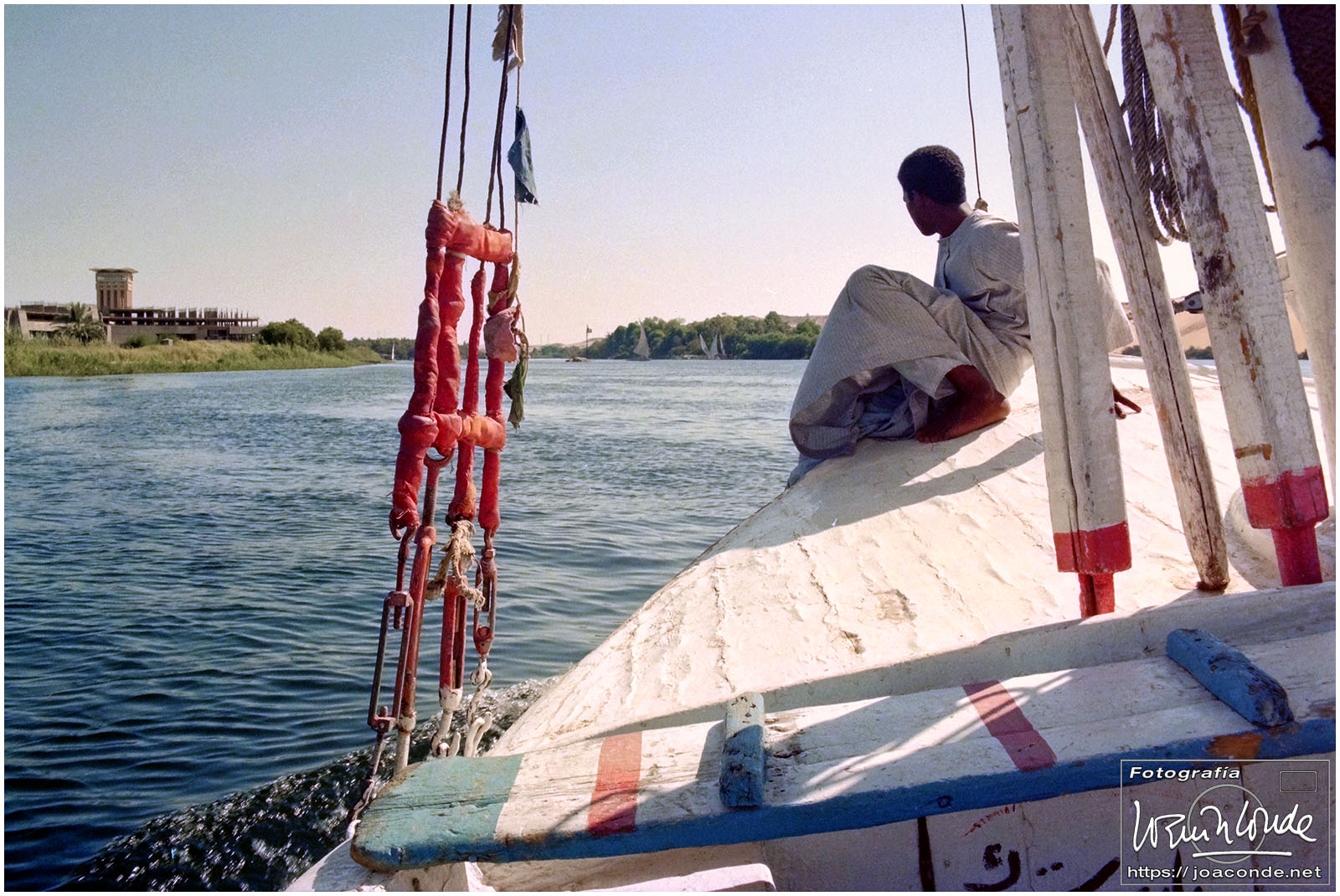 Por la tarde visitamos otro templo muy peculiar, Kom-Ombo, dedicado simétricamente a dos dioses: Sobek (el cocodrilo) y Horus el viejo. Cada vez que regresábamos al barco nos esperaba la tripulación con toallas húmedas y zumos. Proseguimos la navegación; la vida a bordo era muy tranquila.