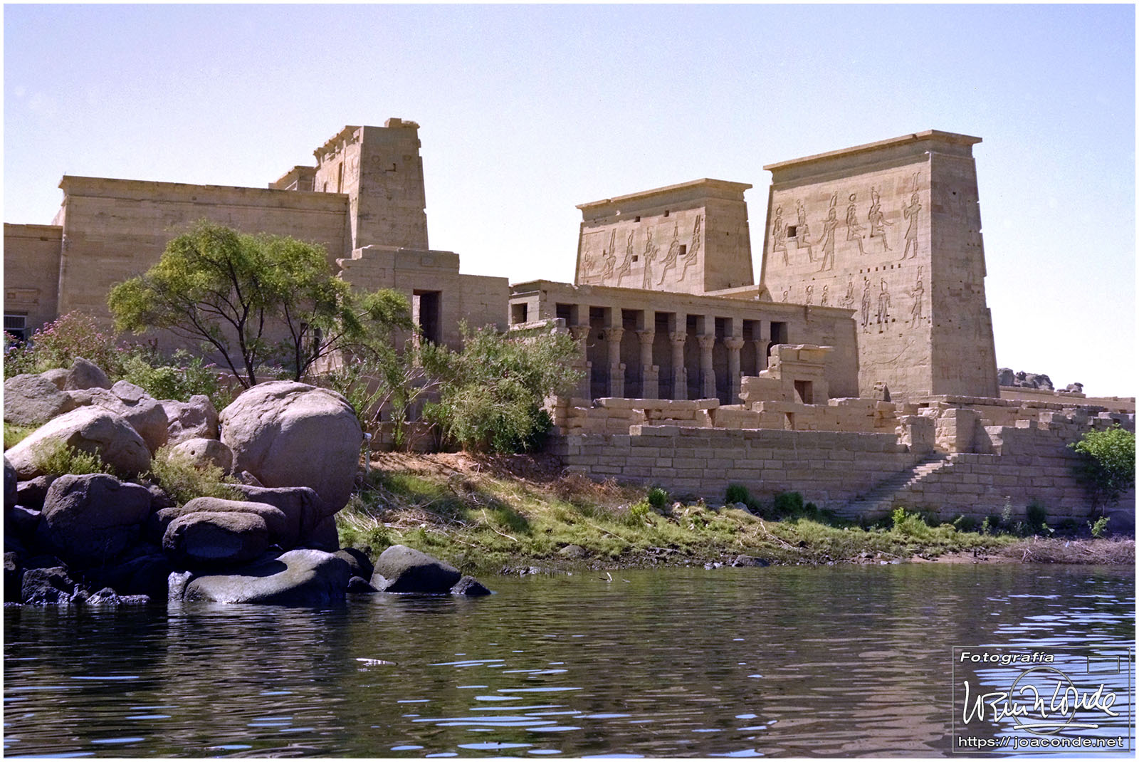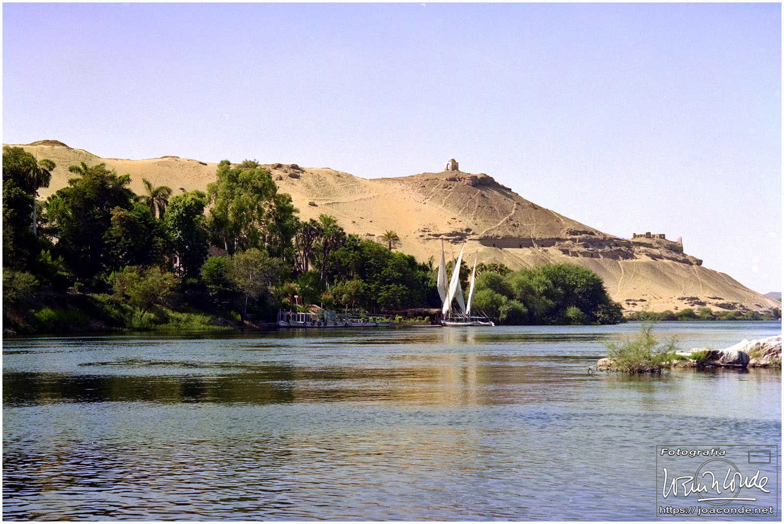 Llegamos temprano a la Presa de Asuán, una megaconstrucción que solo se percibía por los militares que la vigilaban y la enorme cantidad de agua que embalsaba (el Lago Nasser). Su construcción fue la causa de que hubiera que trasladar muchos templos para que no quedasen sumergidos. Subimos en una barca para acercarnos al Templo de Filé, uno de los reubicados, Patrimonio de la Humanidad. Por la tarde dimos unas vueltas por el Nilo en una faluca, visitando un poblado nubio. Y por la noche fuimos a Asuán en una calesa para tomar unos refrescos.