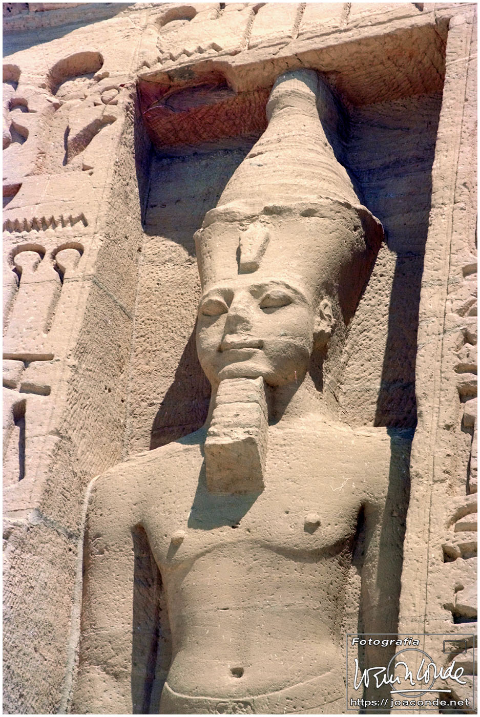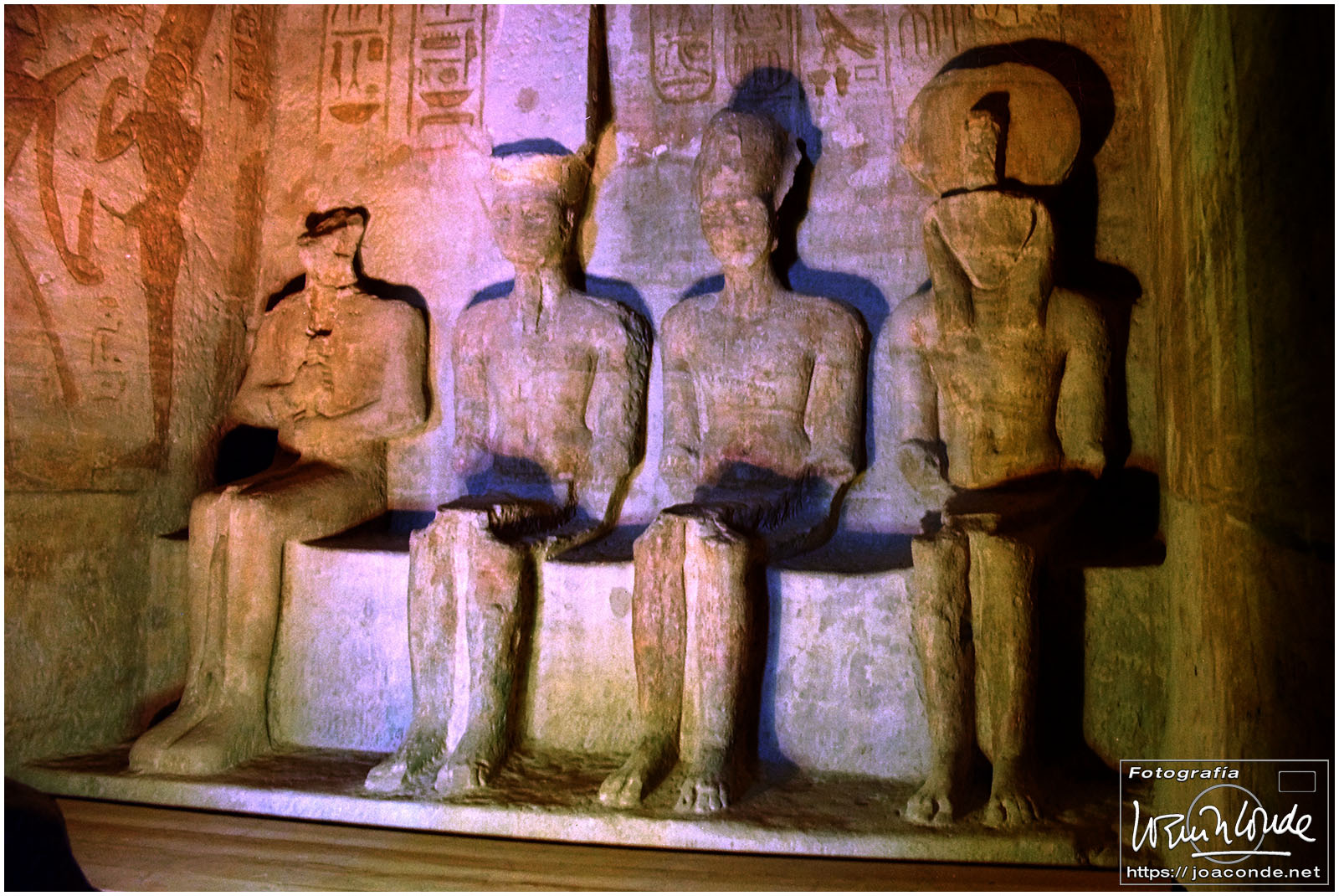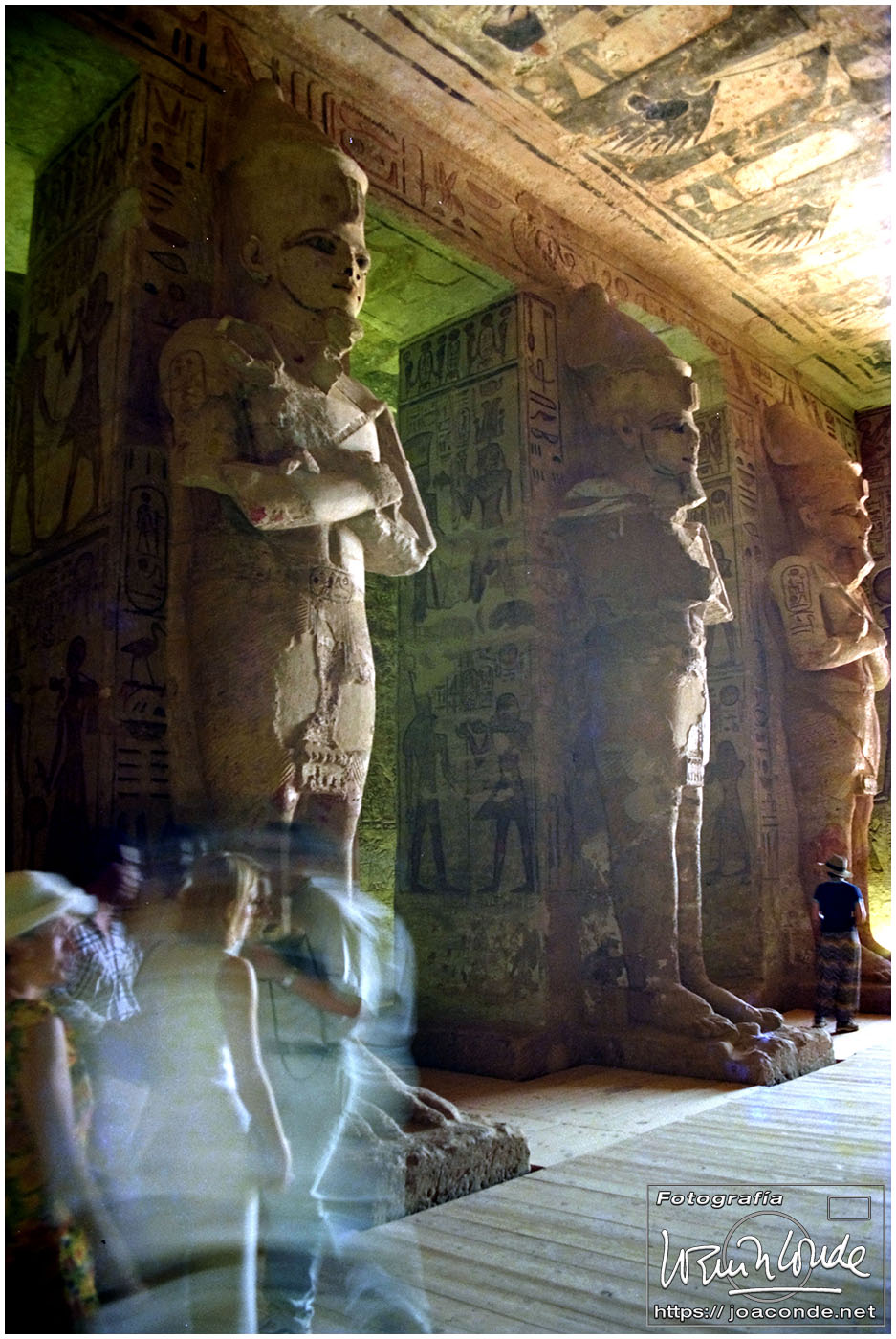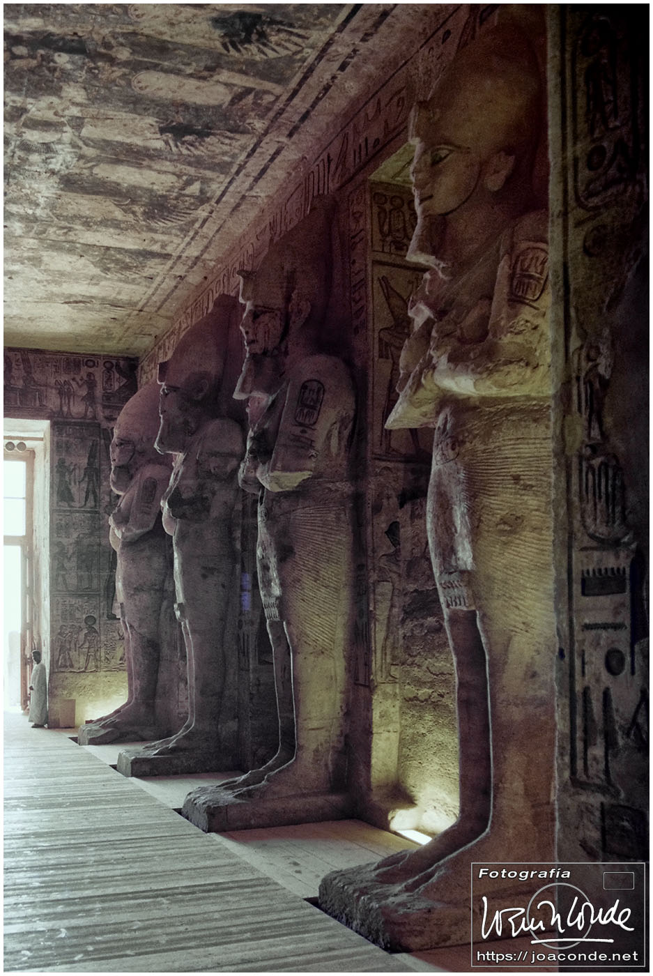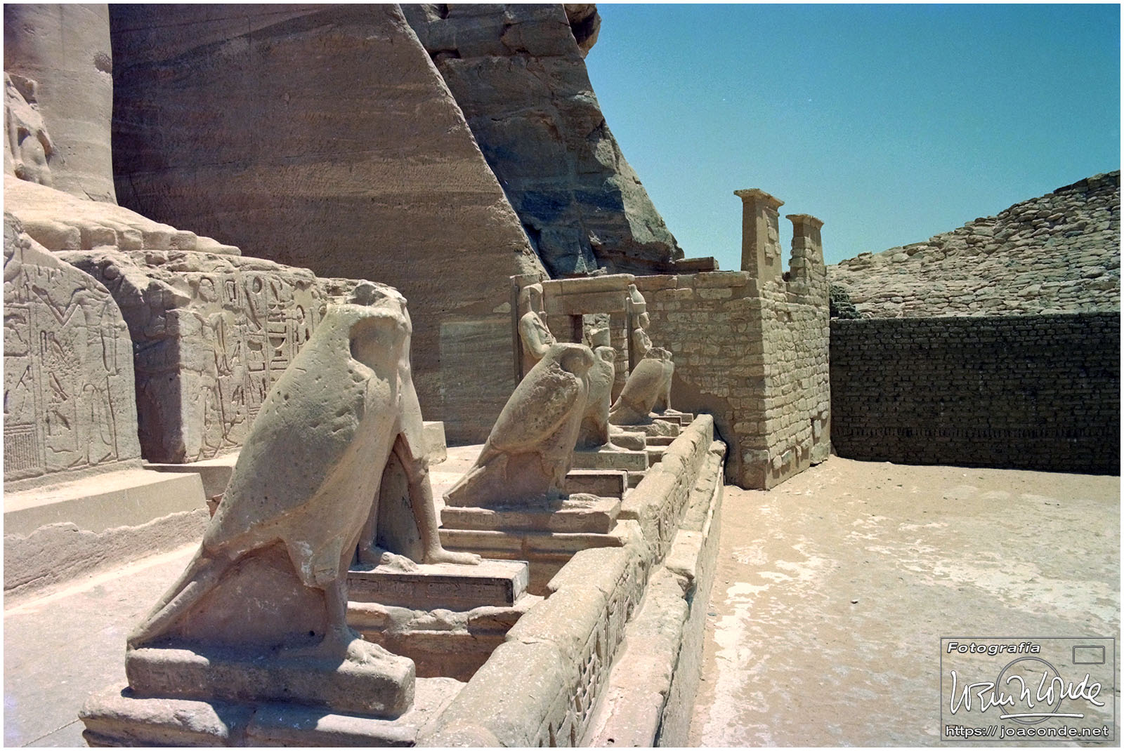 El sábado nos desplazamos a Abú Simbel. Podíamos haber ido por el desierto en unas cuatro horas, pero fuimos volando, en 30 minutos. Y valió la pena aprovechar el tiempo, no solo por la grandeza del templo-hipogeo sino por la enorme obra de ingeniería —cuya trastienda vimos al final de la visita— que supuso su traslado a un nivel más alto. Me encantó e hice todas las fotos que pude.
