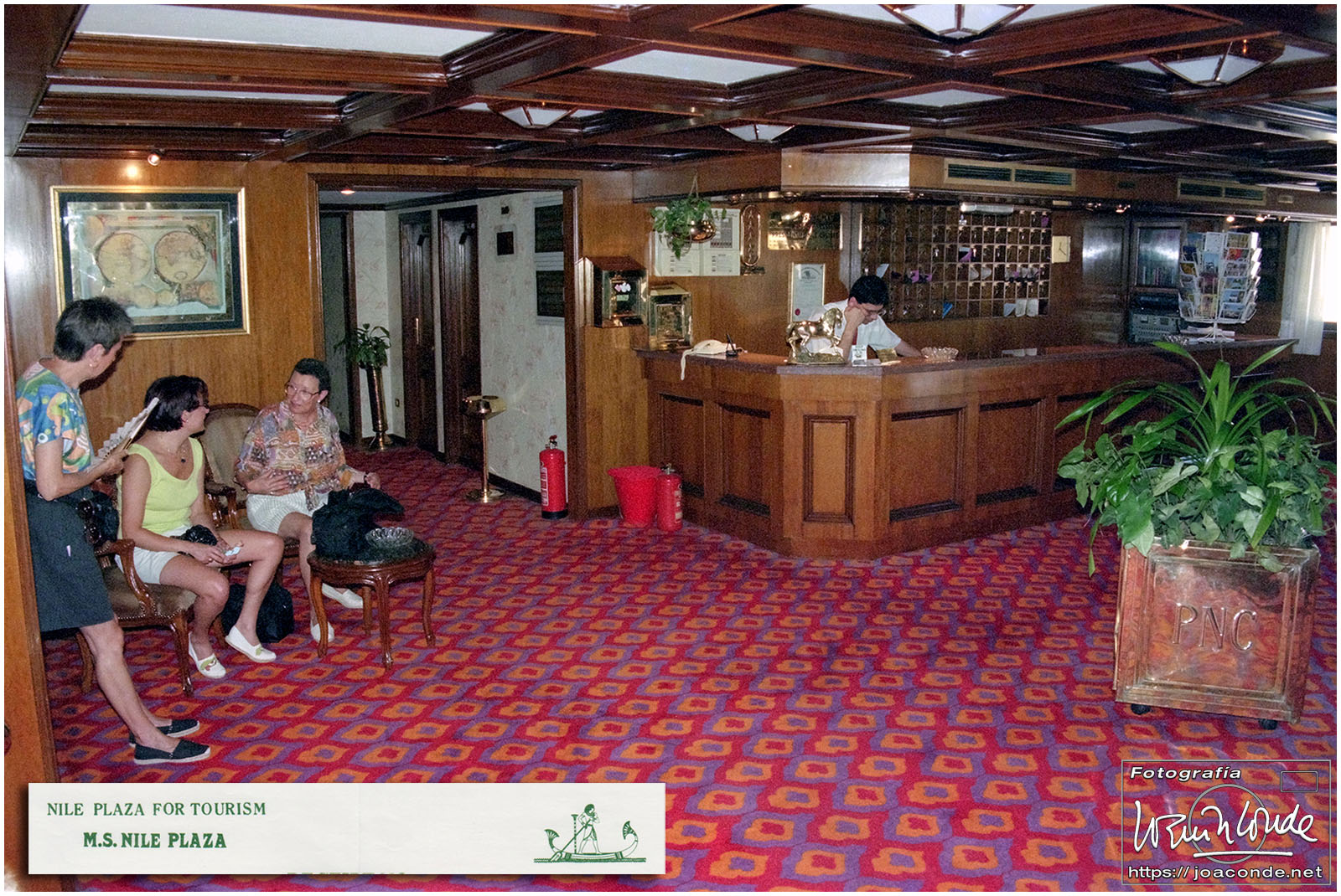 Volamos el día 14 con Egyptair a El Cairo, donde hicimos noche; el 15 hicimos otro vuelo a Luxor y entonces embarcamos en el Nile Plaza, un crucero pequeño y muy confortable. El resto del día fue de navegación en el que pasamos varias exclusas. Estas motonaves eran ideales para visitar la sucesión de templos situados a orillas del Nilo.