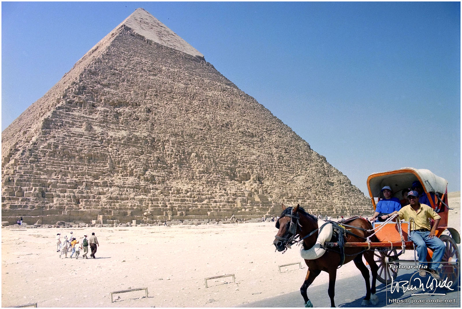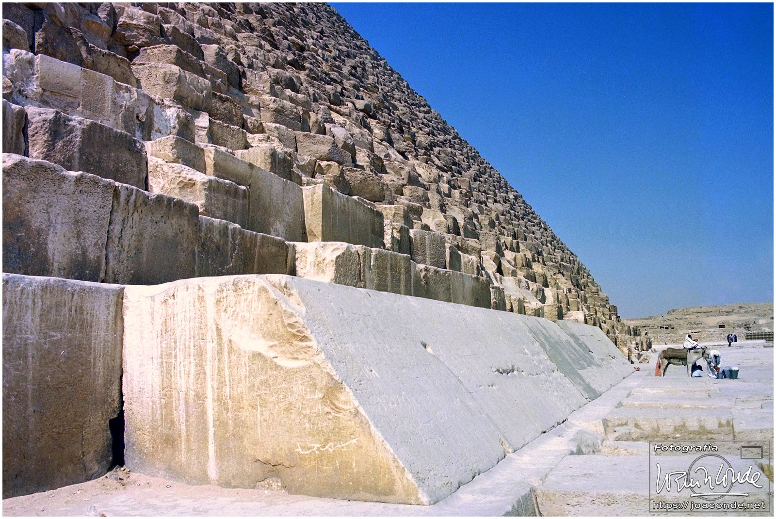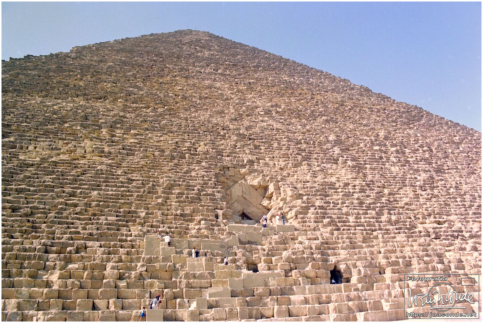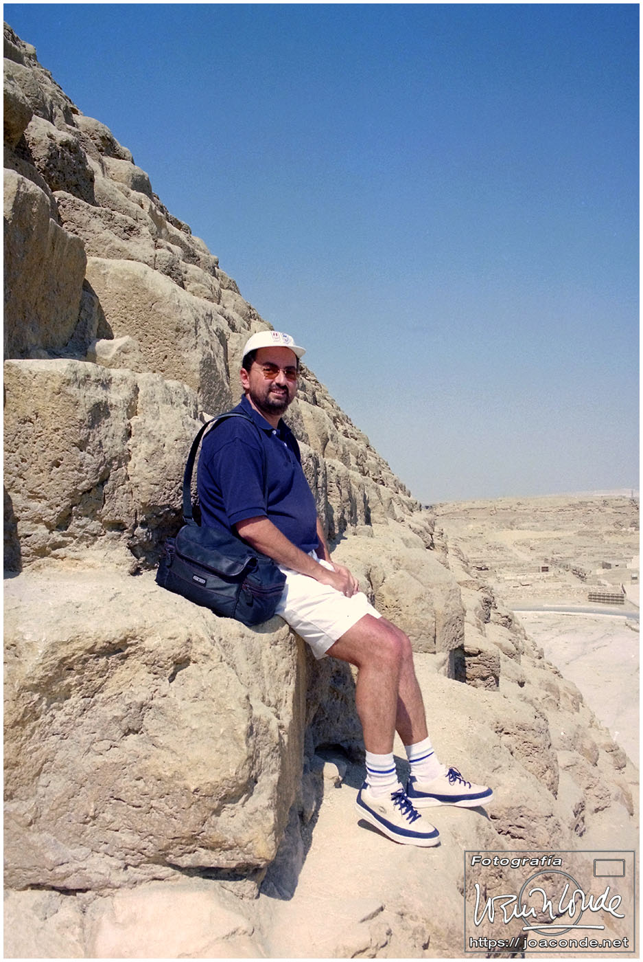 Llegamos muy temprano al yacimiento arqueológico de Guiza. Primero nos dirigimos a la Pirámide de Jufu (Keops) que de siempre me atrajo y por fin podía visitar. Está prohibido escalarla, lo que era muy peligroso, pero sí se podían trepar las primeras hiladas de piedras.