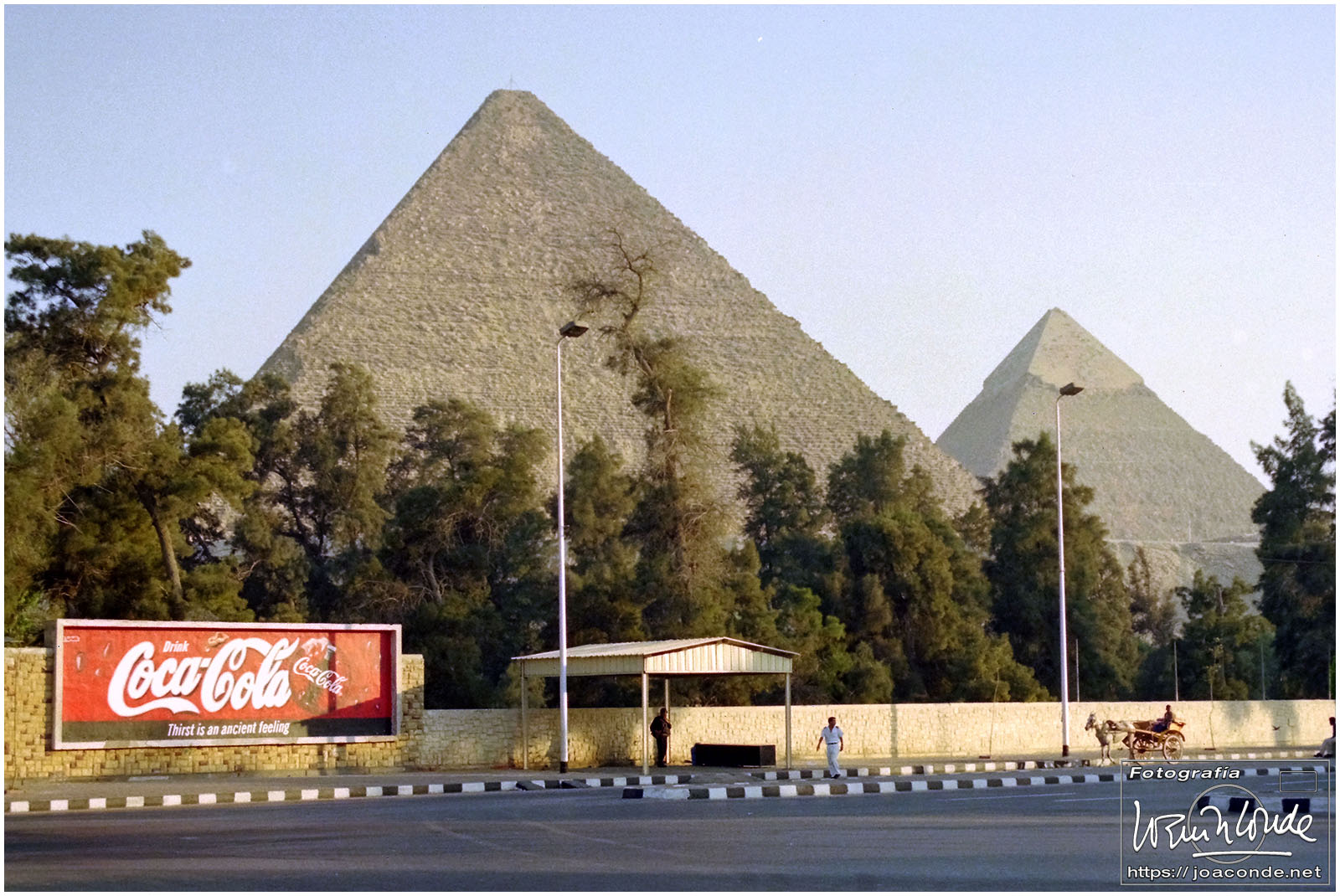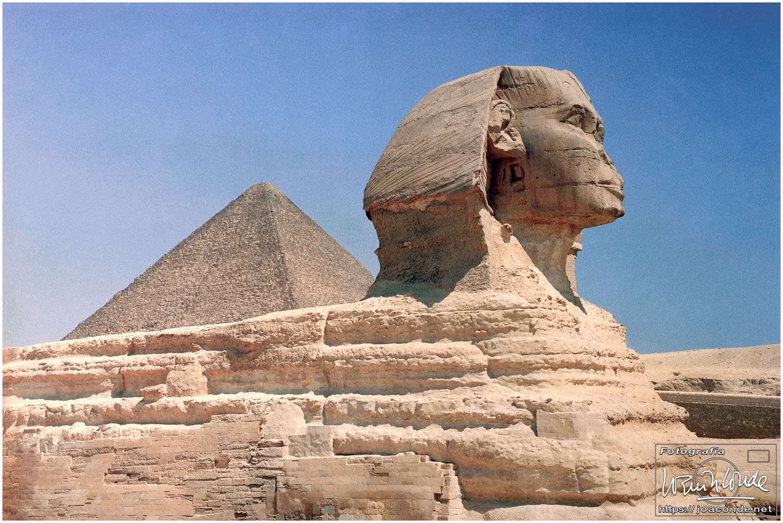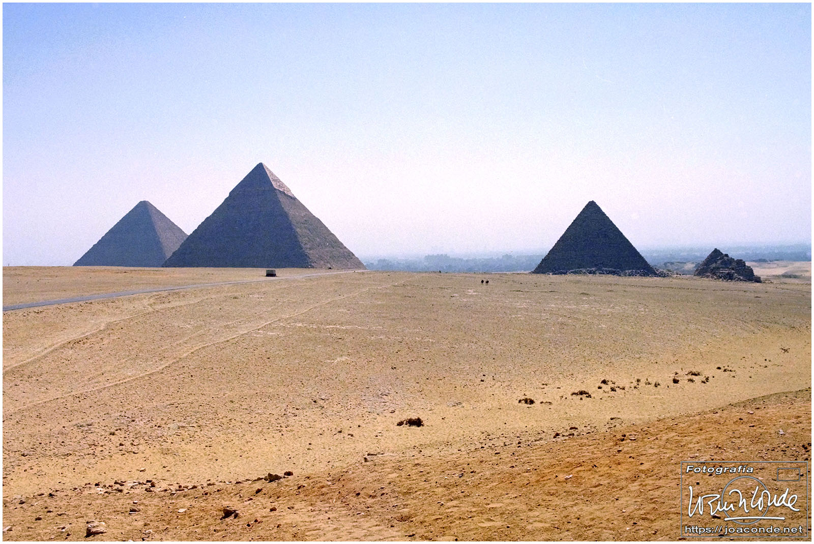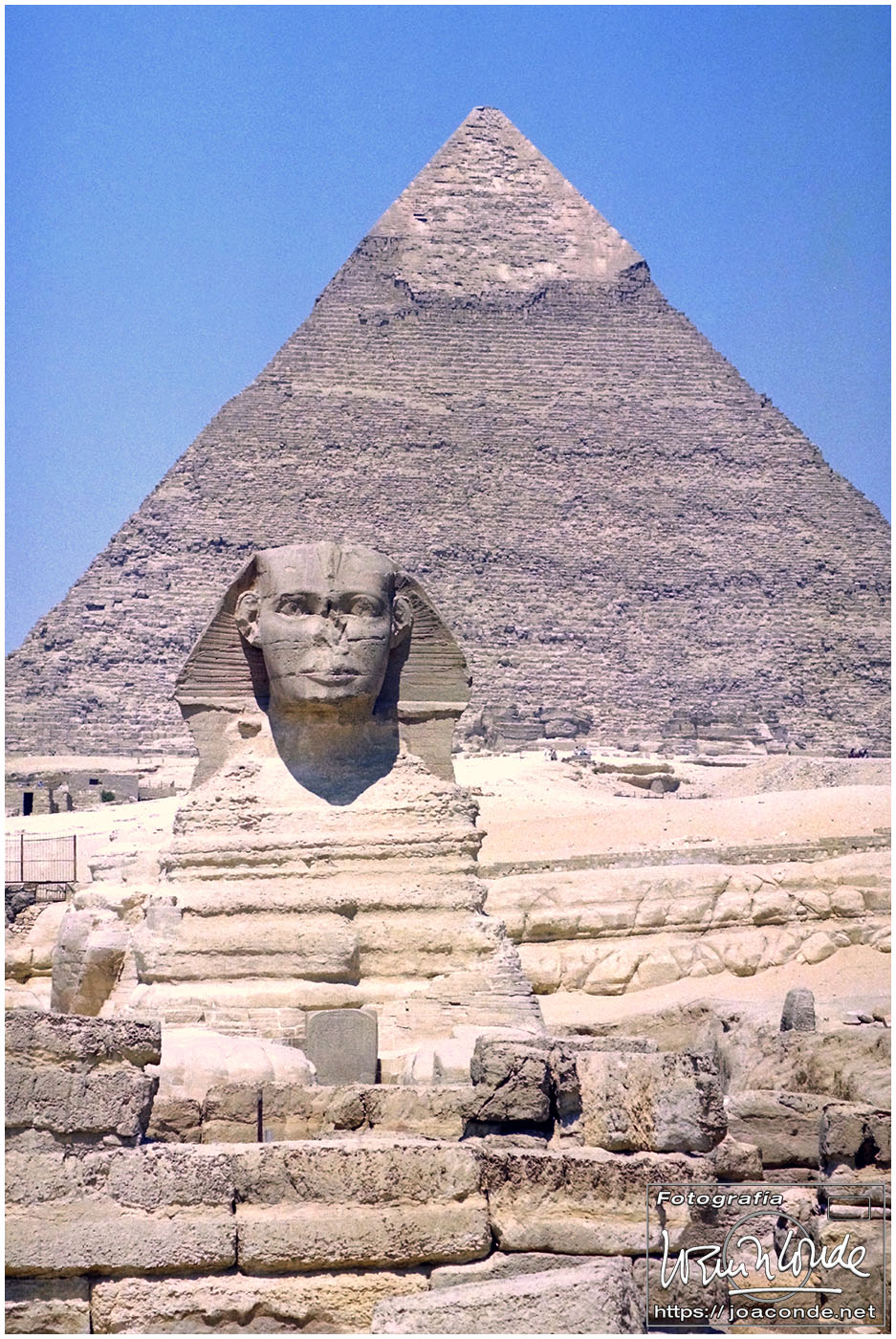 Compré la entrada para la Pirámide de Jafra (Kefrén) pero solo pude bajar unos metros por la diminuta rampa. En la rampa hacía un calor sofocante y tenía que ir sentado, arrastrándome y tirando del bolso… así que desistí. Hicimos fotos en la Gran Esfinge y nos refrescamos en una galería, donde compramos un papiro. Después volvimos al hotel, desde donde se seguían contemplando las moles de piedra. A la caída de la tarde dimos un agradable paseo por los alrededores.