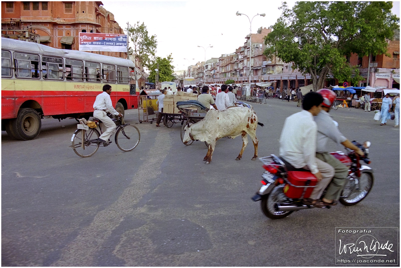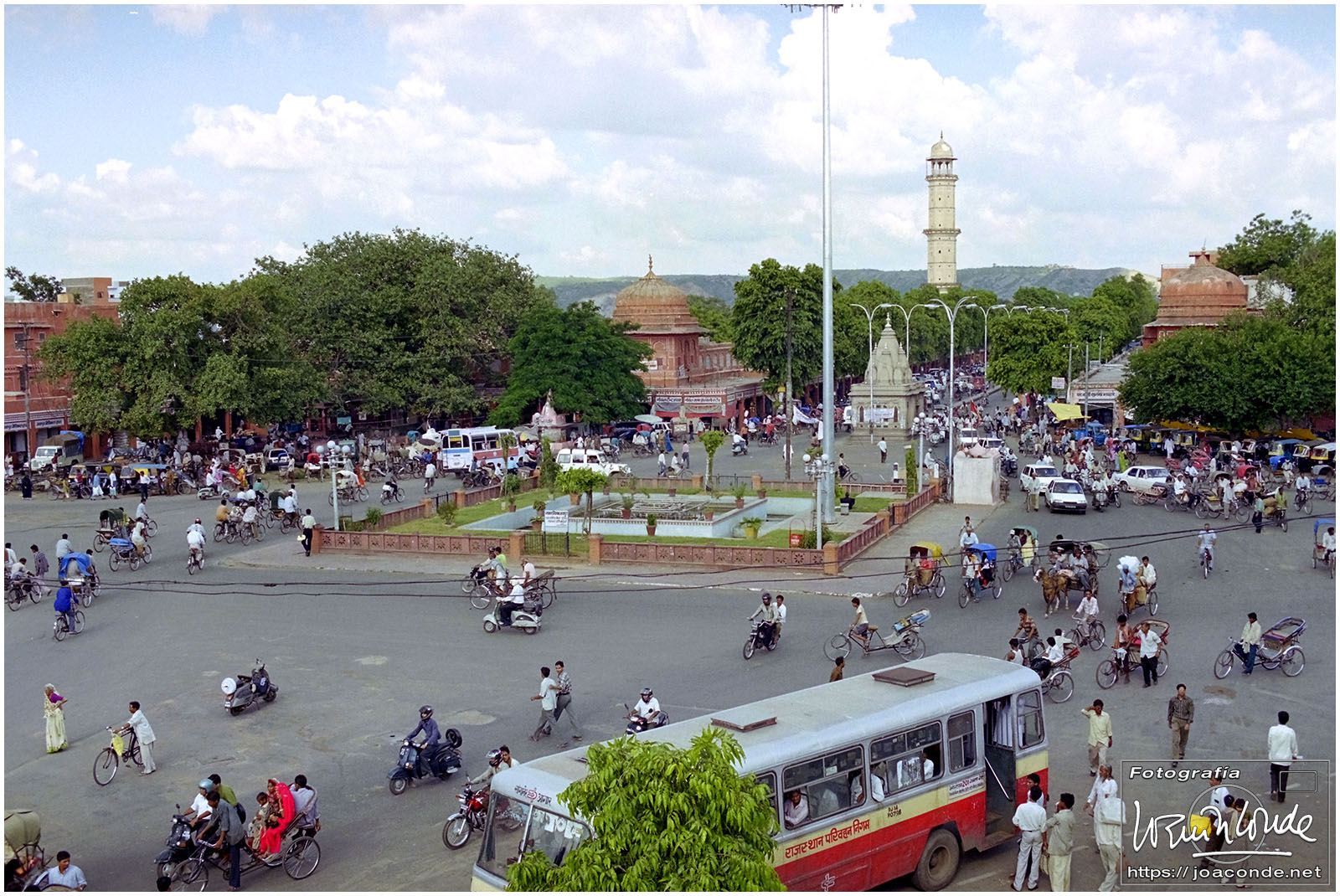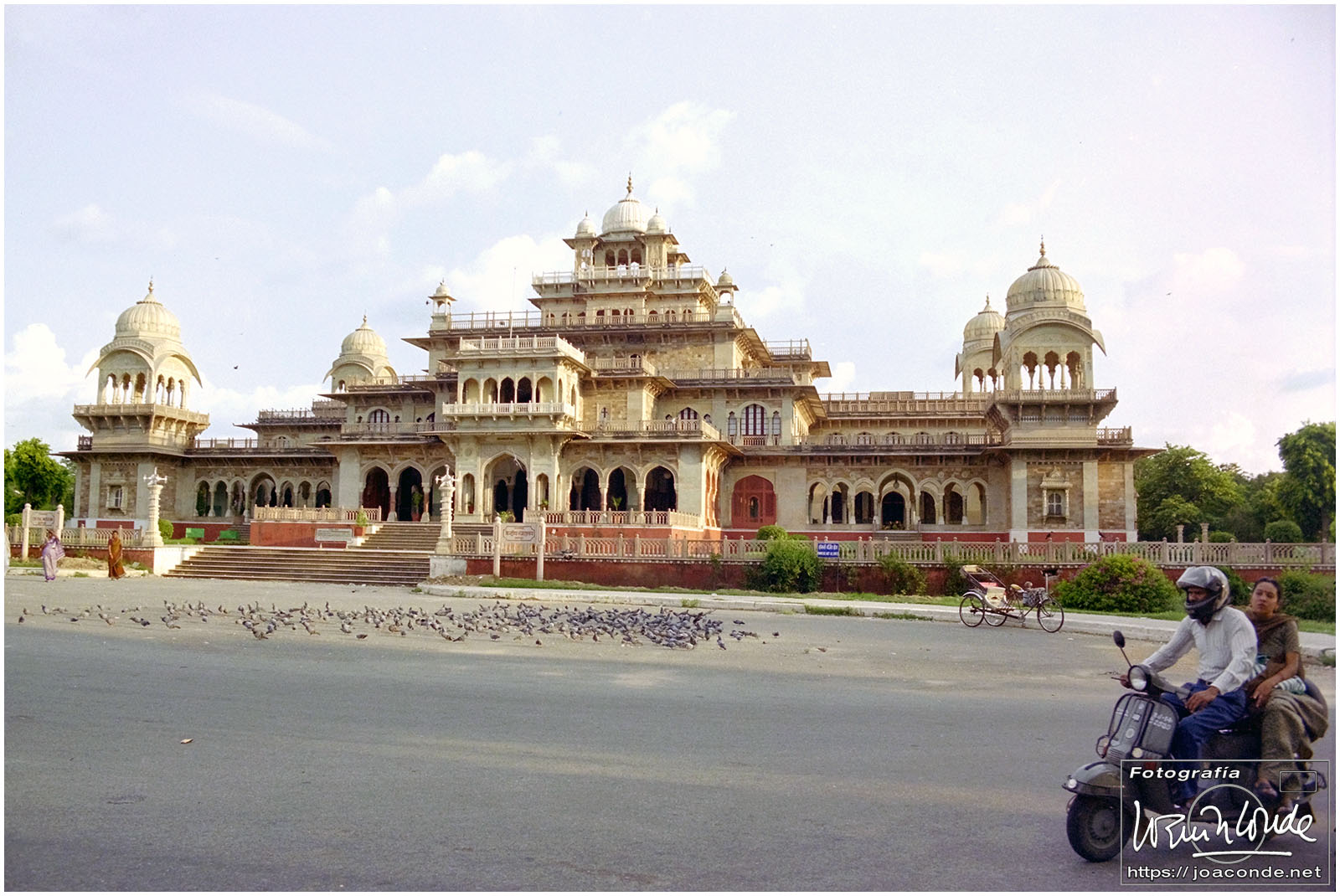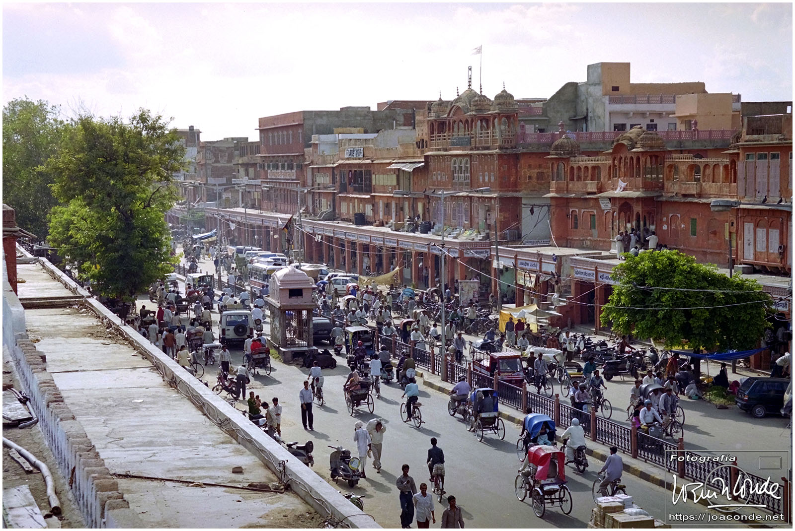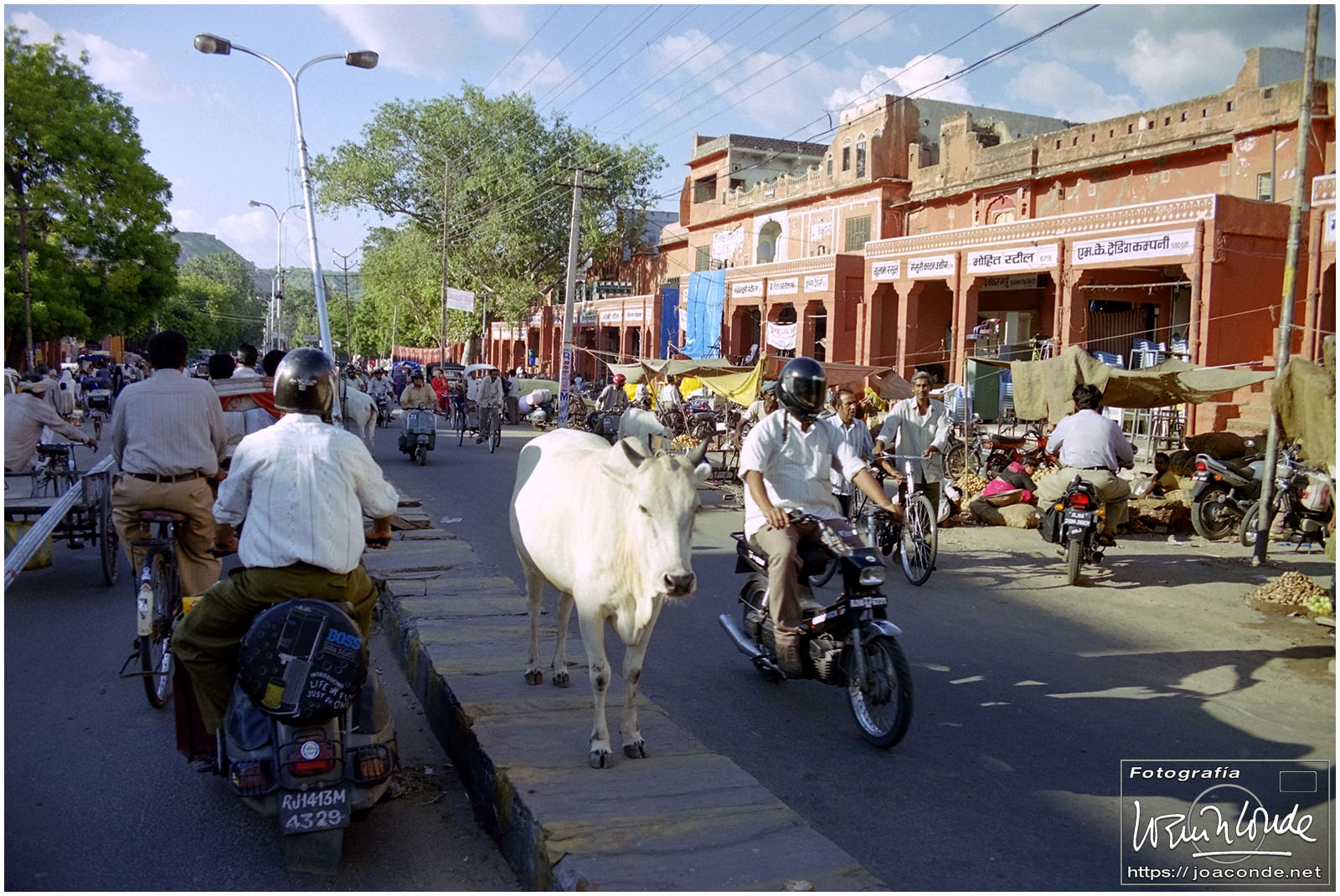 Por la mañana salimos por carretera hacia Jaipur; en la ruta, pedimos a Shiva que nos acompañara y cuidara durante el viaje ?, nos iba a hacer falta. Después de unos 300 km llegamos a Jaipur, la ciudad rosa, Patrimonio de la Humanidad. Entramos por sus puertas y caminamos al centro. Entonces tomamos unos rickshaws y empezó la aventura. Muchas calles estaban en obras, y todas, abarrotadas. Vacas «sagradas» por todas partes; y para colmo, conduciendo por la izquierda. Para reponernos del susto fuimos a dar un paseo al Birla Mandir, un hermoso templo hindú costeado por una familia adinerada. Después, de camino al Hotel Trident, pasamos delante del Museo del Rajastán; iba a ser imposible verlo todo en unas horas.